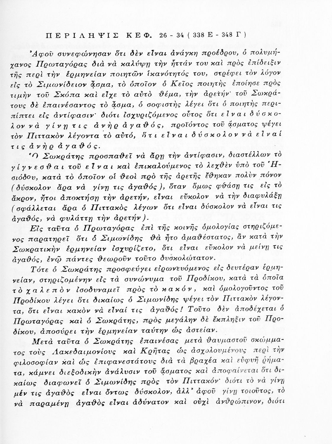 Σχολικό εγχειρίδιο Αρχαίων Ελληνικών για την ΣΤ΄ Γυμνασίου. Πρόκειται για βιβλίο με το πρωτότυπο κείμενο του Πλάτωνα. Υπάρχουν ερμηνευτικά σχόλια και εισαγωγή στη καθαρεύουσα. Το βιβλίο έχει εισαγωγές και ερμηνευτικά σχόλια.