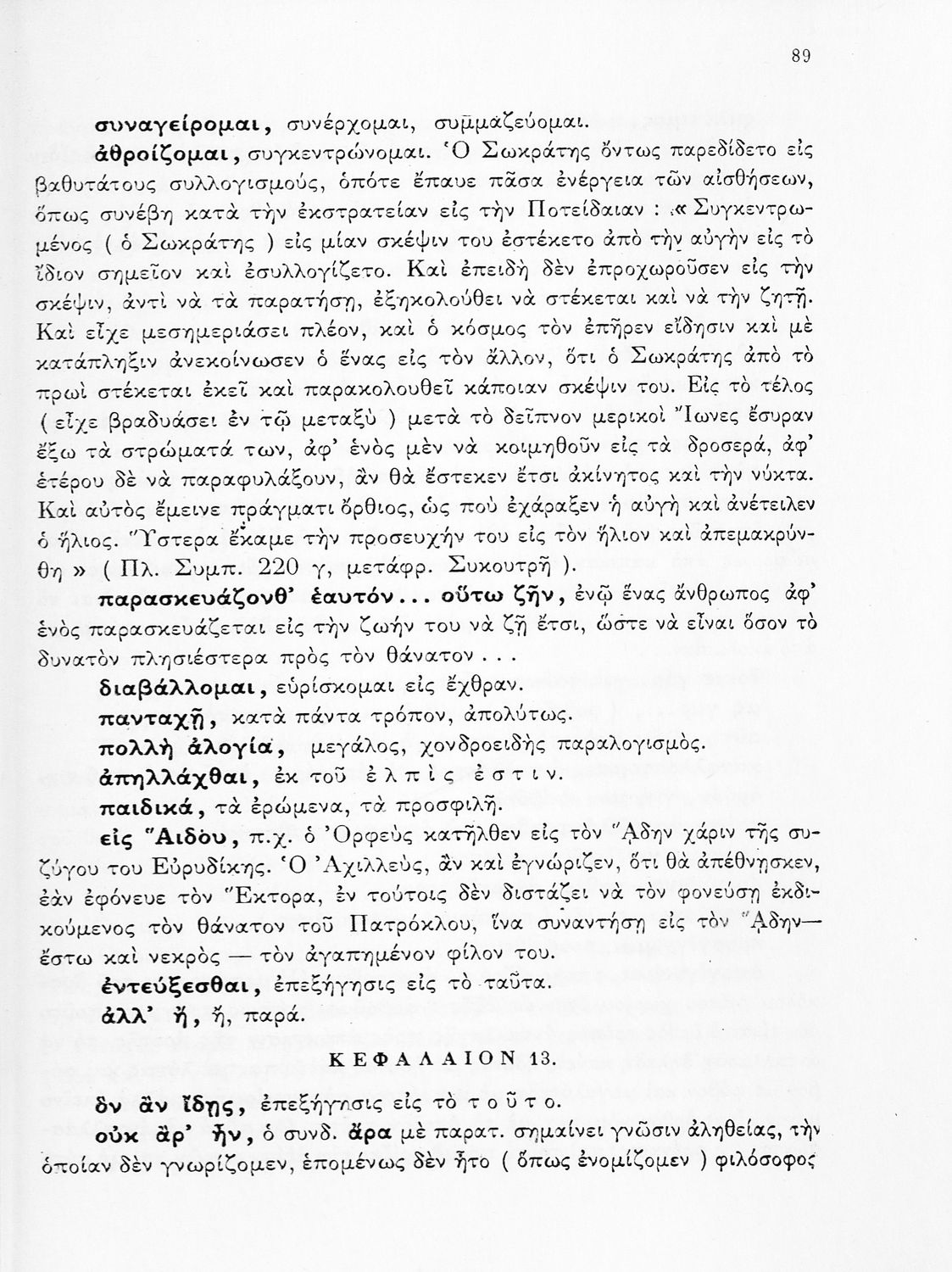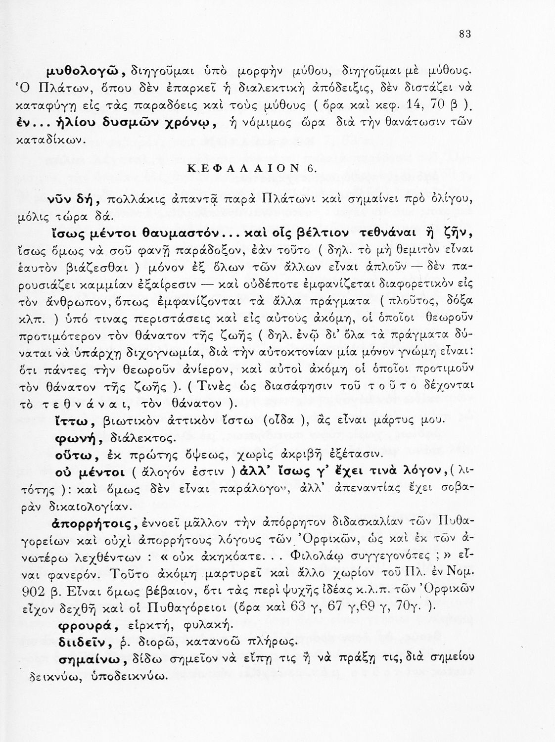 Σχολικό εγχειρίδιο Αρχαίων Ελληνικών για την ΣΤ΄ Γυμνασίου. Πρόκειται για βιβλίο με το πρωτότυπο κείμενο του Πλάτωνα. Υπάρχουν ερμηνευτικά σχόλια και εισαγωγή στη καθαρεύουσα. Το βιβλίο έχει εισαγωγές και ερμηνευτικά σχόλια.