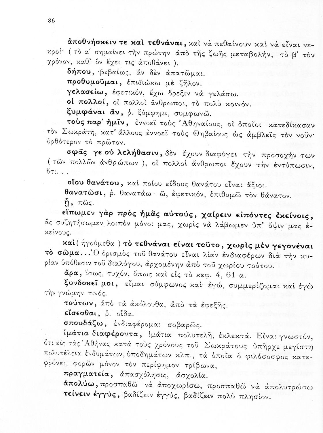 Σχολικό εγχειρίδιο Αρχαίων Ελληνικών Γυμνασίου που περιλαμβάνει αποσπάσματα από τους διαλόγους του Πλάτωνα, ερμηνευτικά και πραγματολογικά σχόλια και λεξιλογικές παρατηρήσεις.