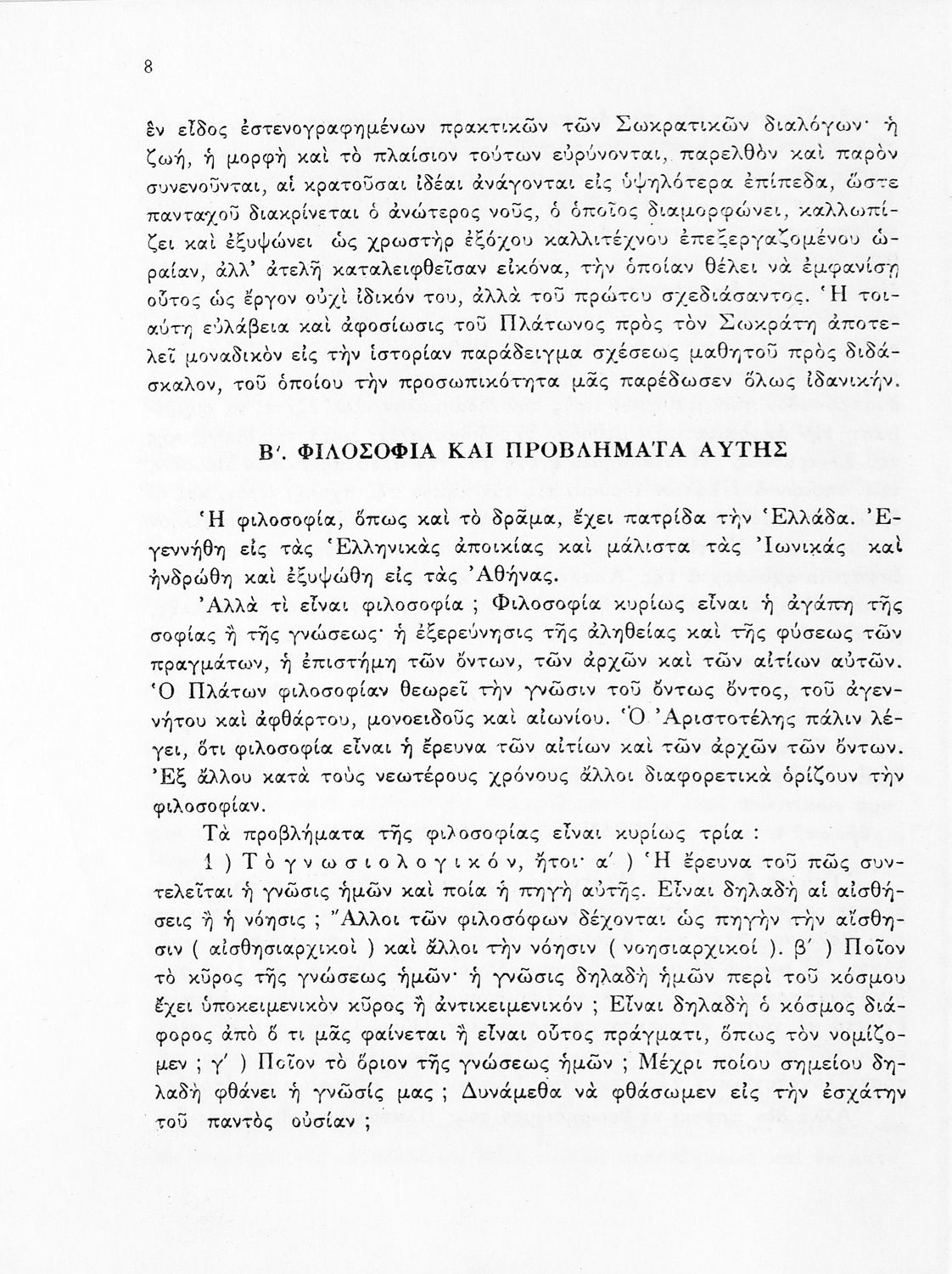 Σχολικό εγχειρίδιο για τις Τάξεις του Γυμνασίου για το μάθημα των Αρχαίων Ελληνικών. Περιλαμβάνει αποσπάσματα του αρχαίου κειμένου από τους διαλόγους του Πλάτωνα. Περιέχει μετάφραση ερμηνευτικά, πραγματολογικά