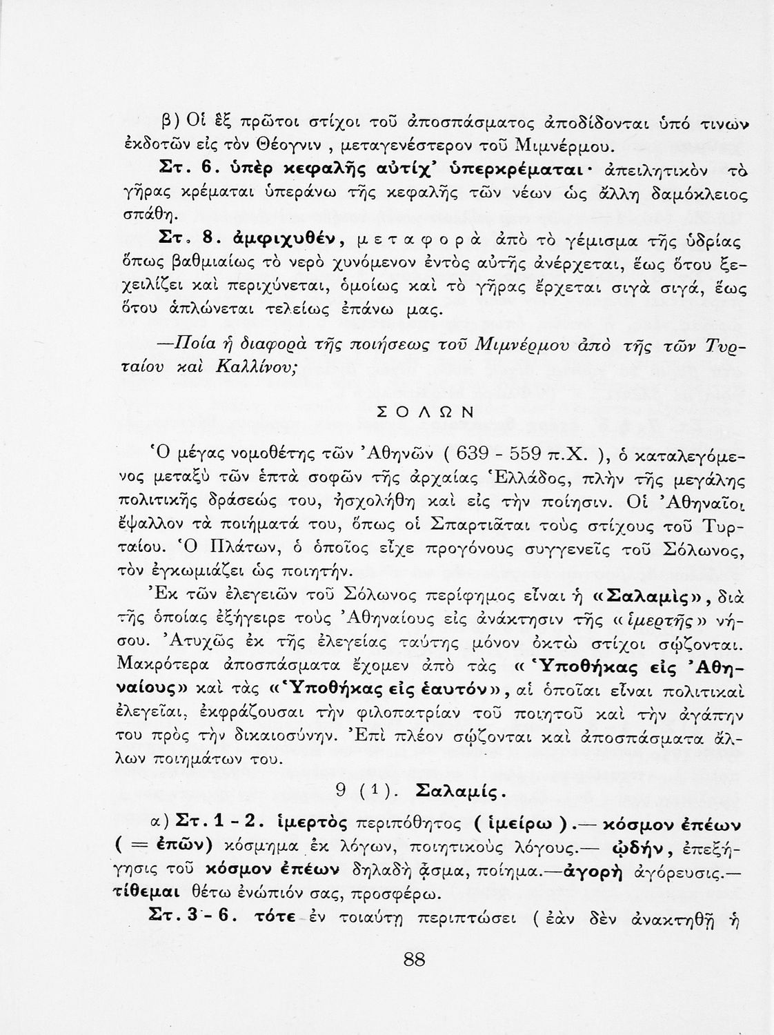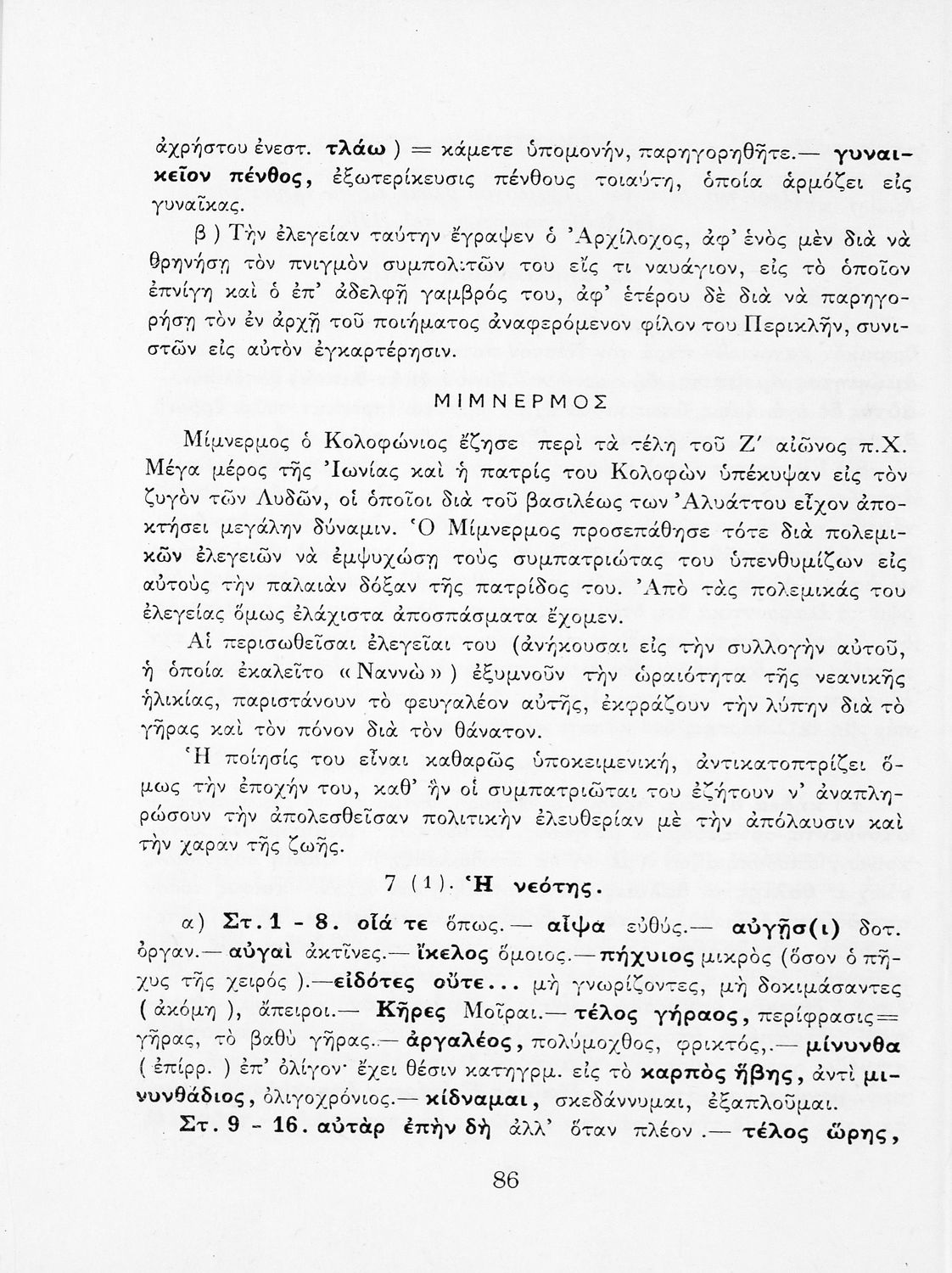 Σχολικό εγχειρίδιο Αρχαίων Ελληνικών που περιέχει αποσπάσματα αρχαίων Ελλήνων λυρικών, εισαγωγή και ερμηνευτικά σχόλια. Κοσμείται από μικρά διακοσμητικά σχέδια.