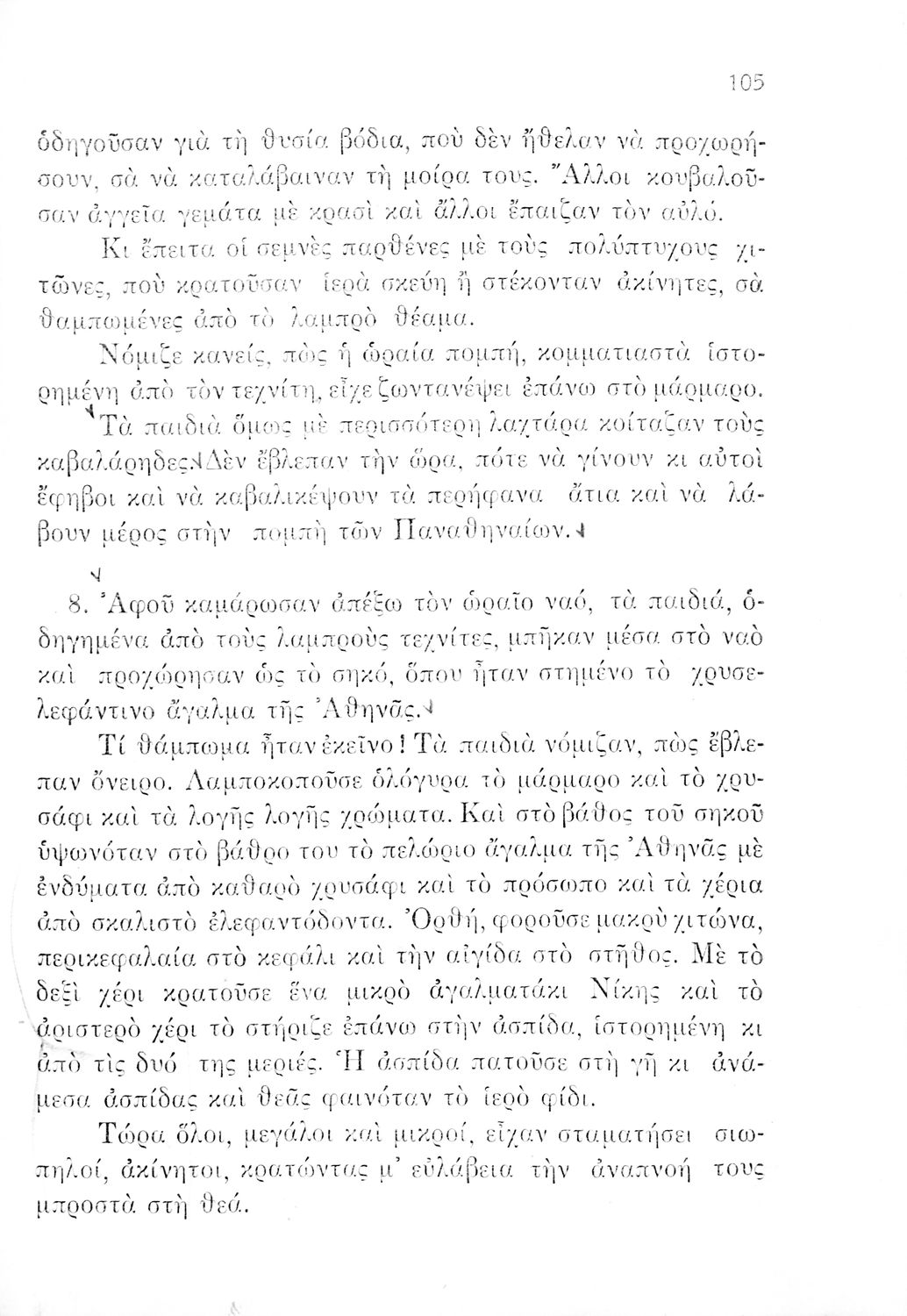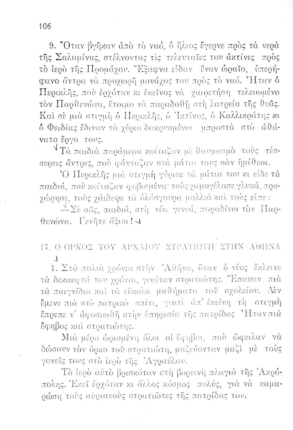 Αναγνωστικό Δ΄ Δημοτικού που περιέχει πεζά και ποιήματα εμπνευσμένα από την ελληνική ιστορία και μυθολογία, την κοινωνική ζωή και την ελληνική φύση.