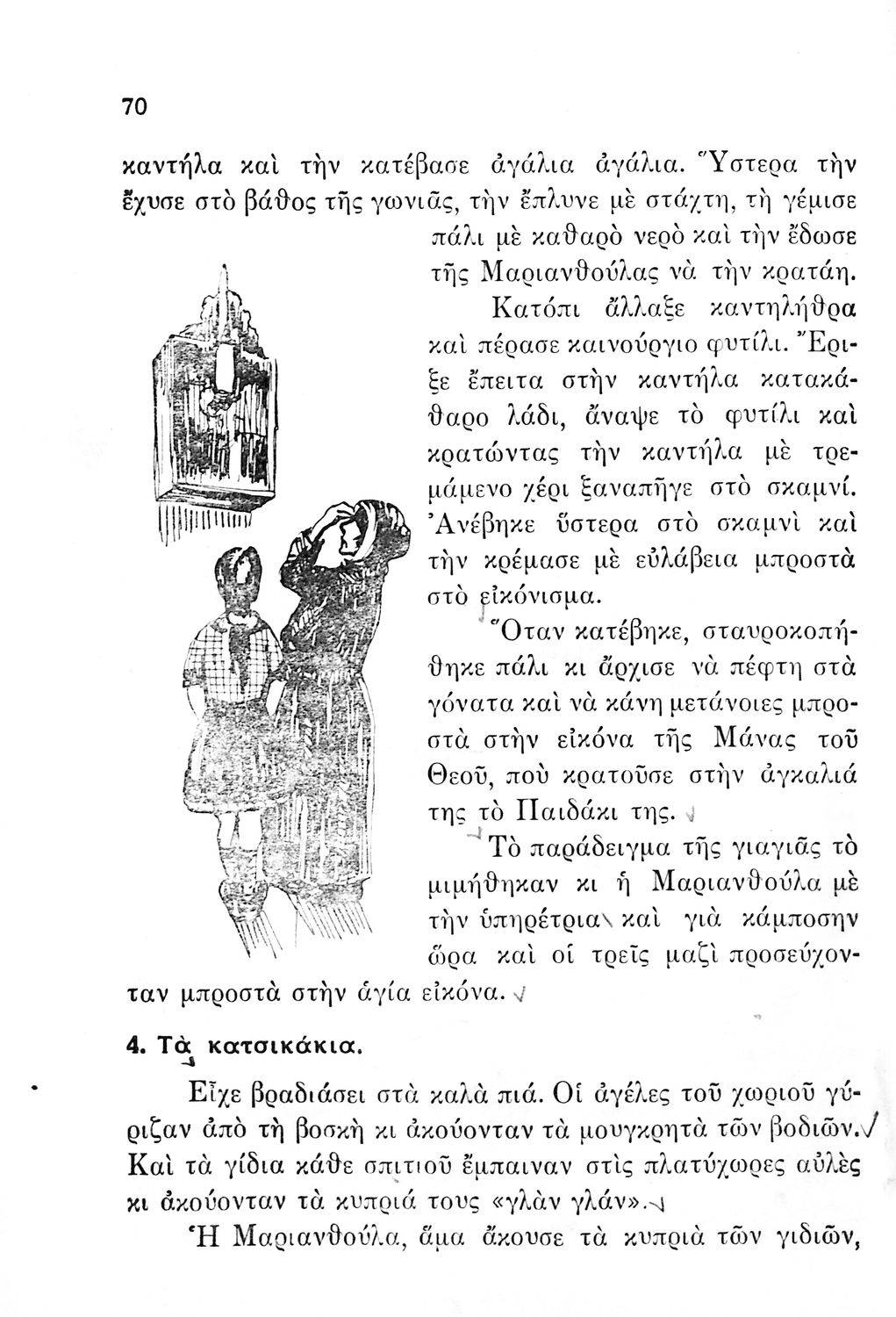Αναγνωστικό Δ΄ Δημοτικού που περιέχει πεζά και ποιήματα με περιεχόμενο διδακτικό και ηθικοπλαστικό εμπνευσμένα από την ελληνική ιστορία και μυθολογία, και την αγροτική και κοινωνική ζωή.