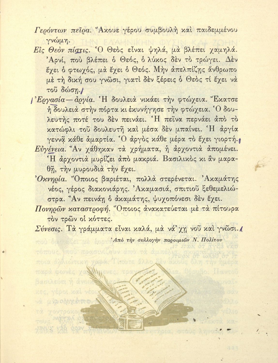 Αναγνωστικό της ΣΤ΄ Δημοτικού που κυκλοφόρησε σε 7.000 αντίτυπα 25 ημέρες πριν την 4η Αυγούστου 1936, οπότε κατά την επόμενη σχολική χρονιά διδάχτηκε ελάχιστα και η έκδοσή του με αυτή την μορφή σταμάτησε.