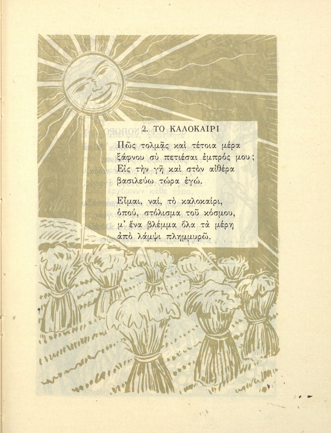 Αναγνωστικό Β' Δημοτικού που είναι χωρισμένο σύμφωνα με τις εποχές του χρόνου και περιλαμβάνει κείμενα ηθοποιητικού περιεχομένου εμπνευσμένα από τη θρησκευτική, εθνική, κοινωνική και οικογενειακή ζωή. Φέρει το