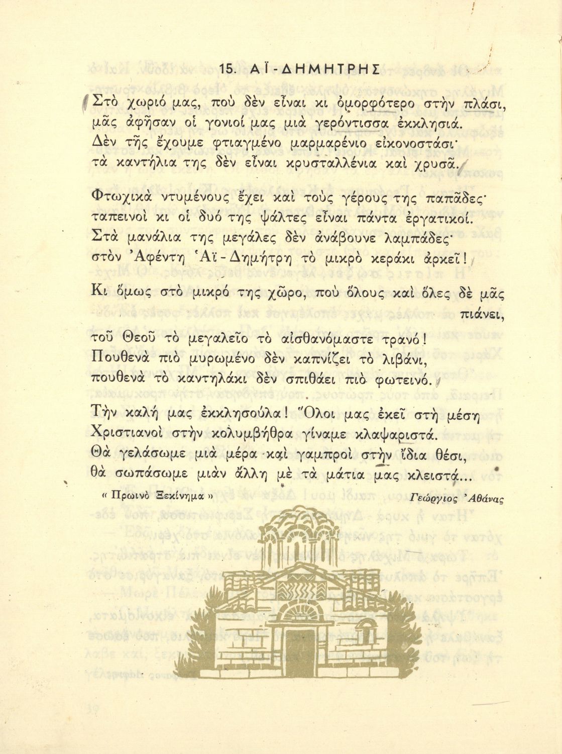 Αναγνωστικό ΣΤ΄ Δημοτικού που αντλεί τα θέματά του από τη θρησκευτική, εθνική, οικογενειακή, κοινωνική και επαγγελματική ζωή και την σύγχρονη ελληνική ιστορία.