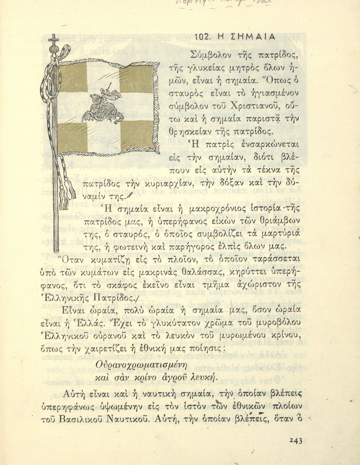 Αναγνωστικό ΣΤ΄ Δημοτικού που αντλεί τα θέματά του από τη θρησκευτική, εθνική, οικογενειακή, κοινωνική και επαγγελματική ζωή και την σύγχρονη ελληνική ιστορία.