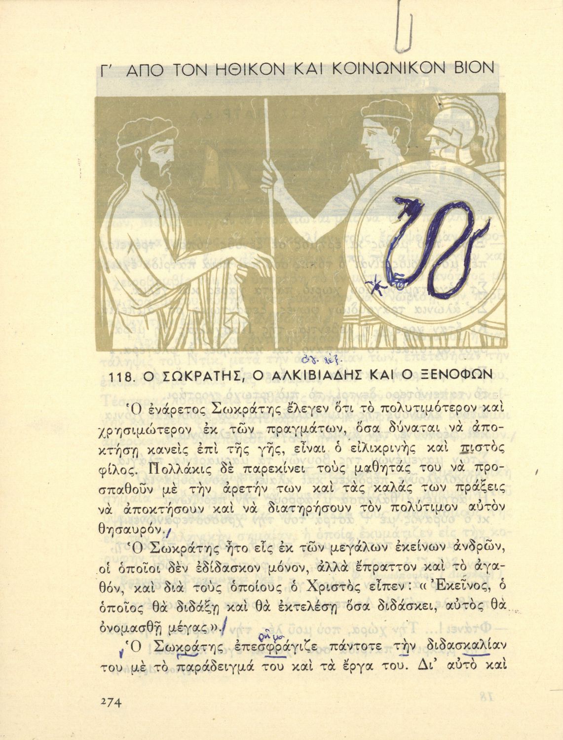 Αναγνωστικό ΣΤ΄ Δημοτικού που αντλεί τα θέματά του από τη θρησκευτική, εθνική, οικογενειακή, κοινωνική και επαγγελματική ζωή και την σύγχρονη ελληνική ιστορία. Φέρει το σύμβολο της δικτατορίας.