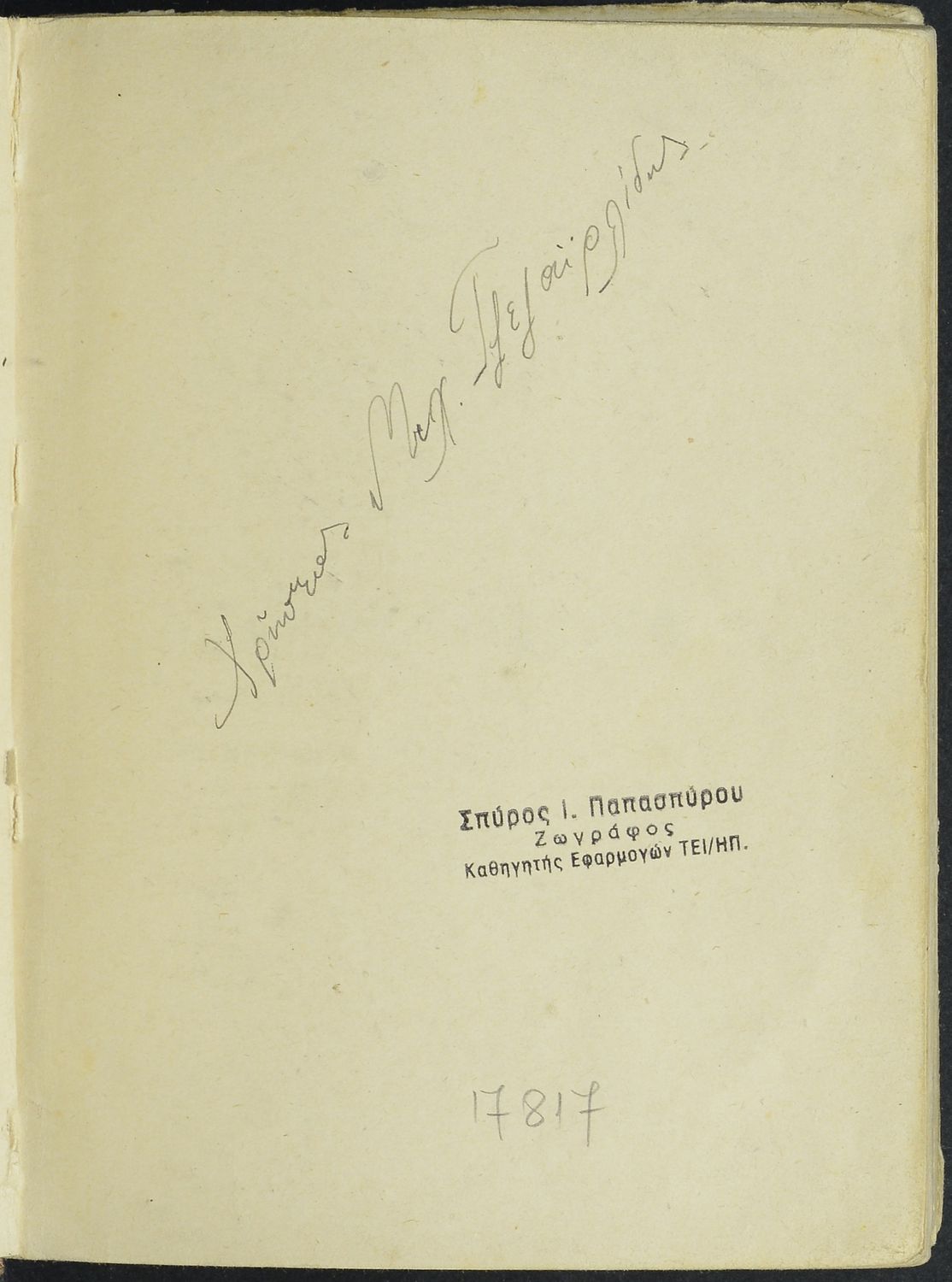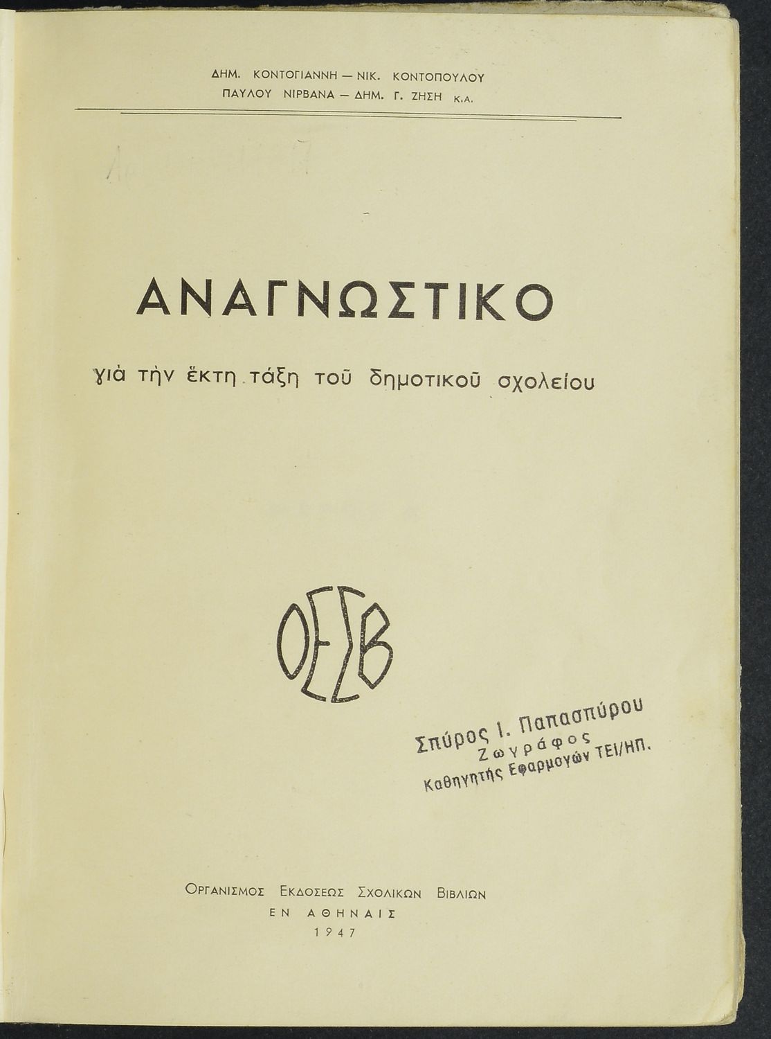 Εκδότης: Οργανισμός Εκδόσεως Σχολικών Βιβλίων Έτος έκδοσης: 1947 Τόπος έκδοσης: Αθήνα |