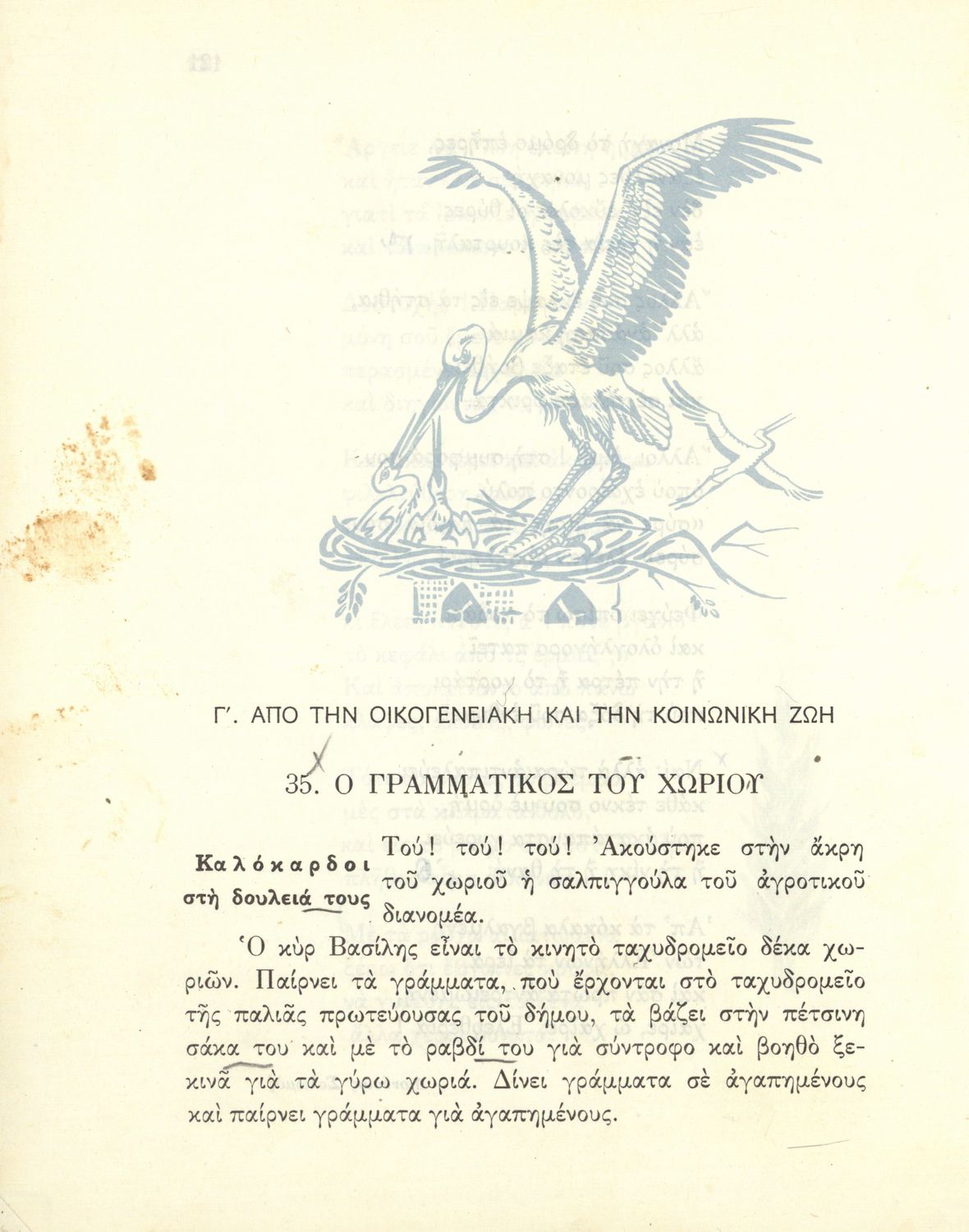 Αναγνωστικό της ΣΤ΄ Δημοτικού που κυκλοφόρησε σε 7.000 αντίτυπα 25 ημέρες πριν την 4η Αυγούστου 1936, οπότε κατά την επόμενη σχολική χρονιά διδάχτηκε ελάχιστα και η έκδοσή του με αυτή την μορφή σταμάτησε.