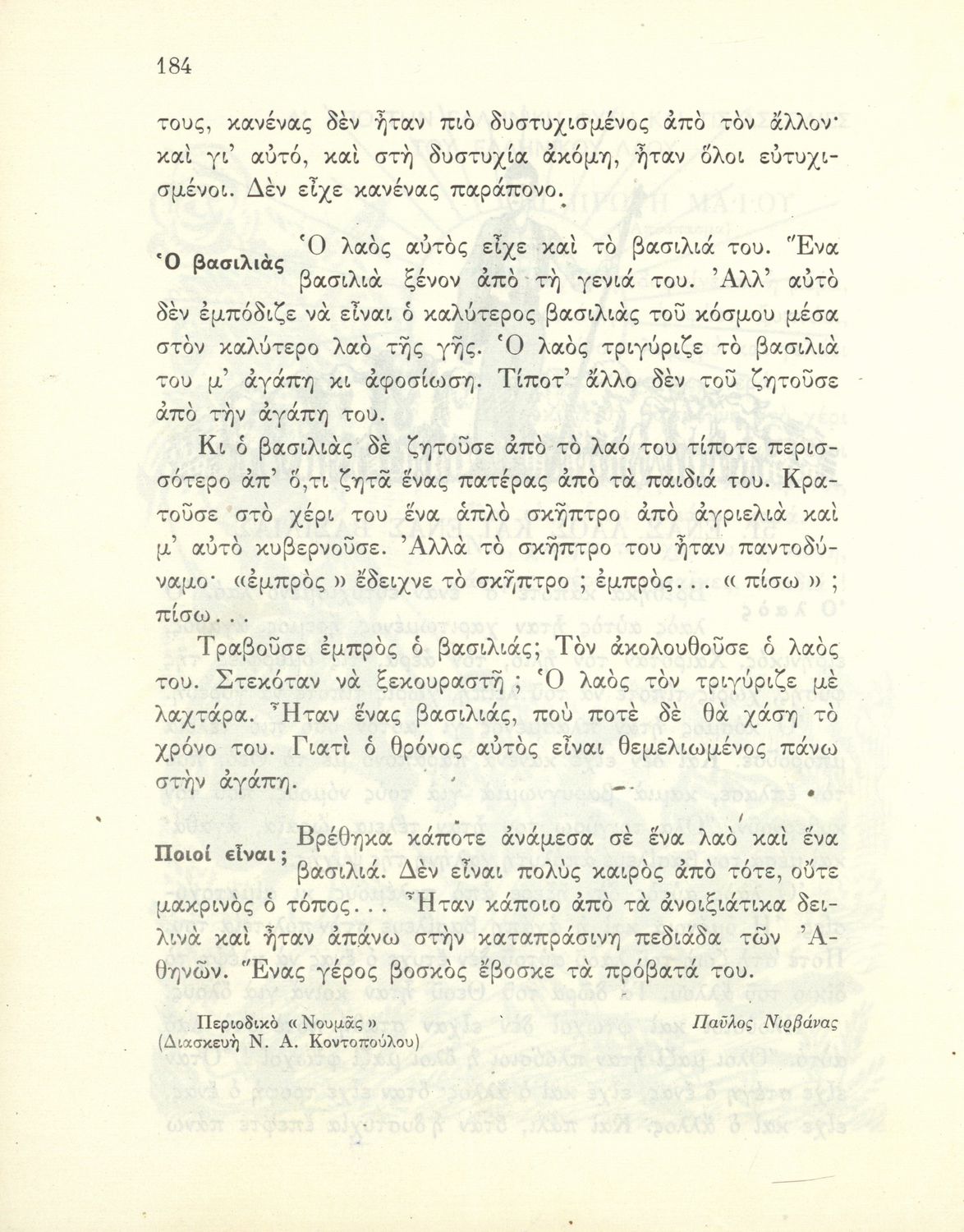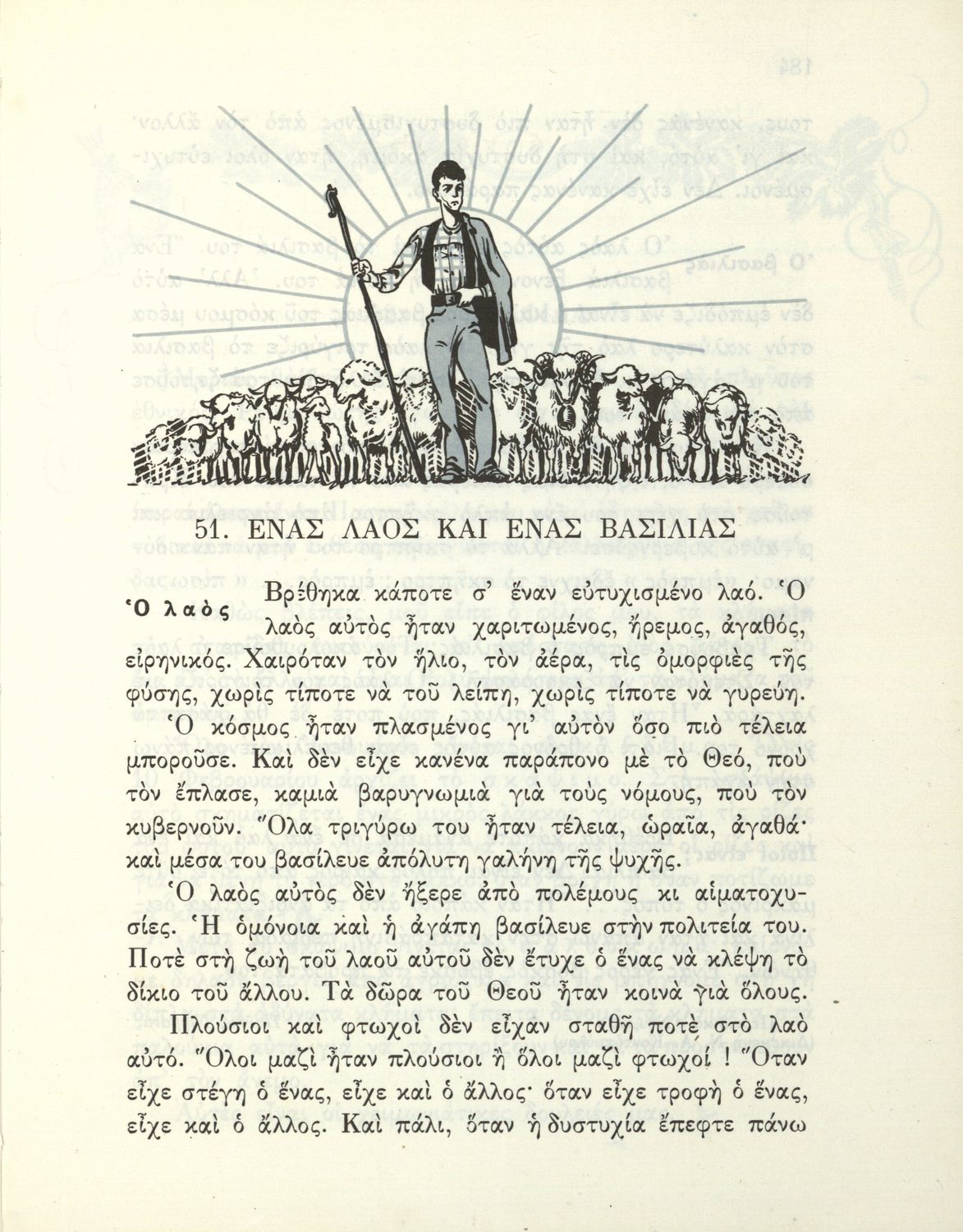 Αναγνωστικό της ΣΤ΄ Δημοτικού που κυκλοφόρησε σε 7.000 αντίτυπα 25 ημέρες πριν την 4η Αυγούστου 1936, οπότε κατά την επόμενη σχολική χρονιά διδάχτηκε ελάχιστα και η έκδοσή του με αυτή την μορφή σταμάτησε.