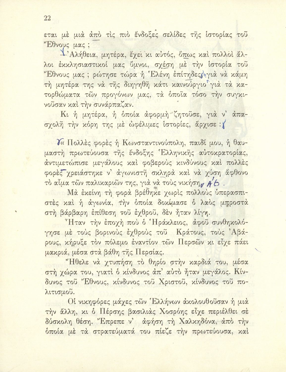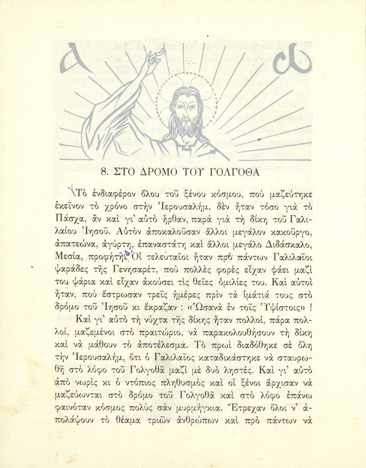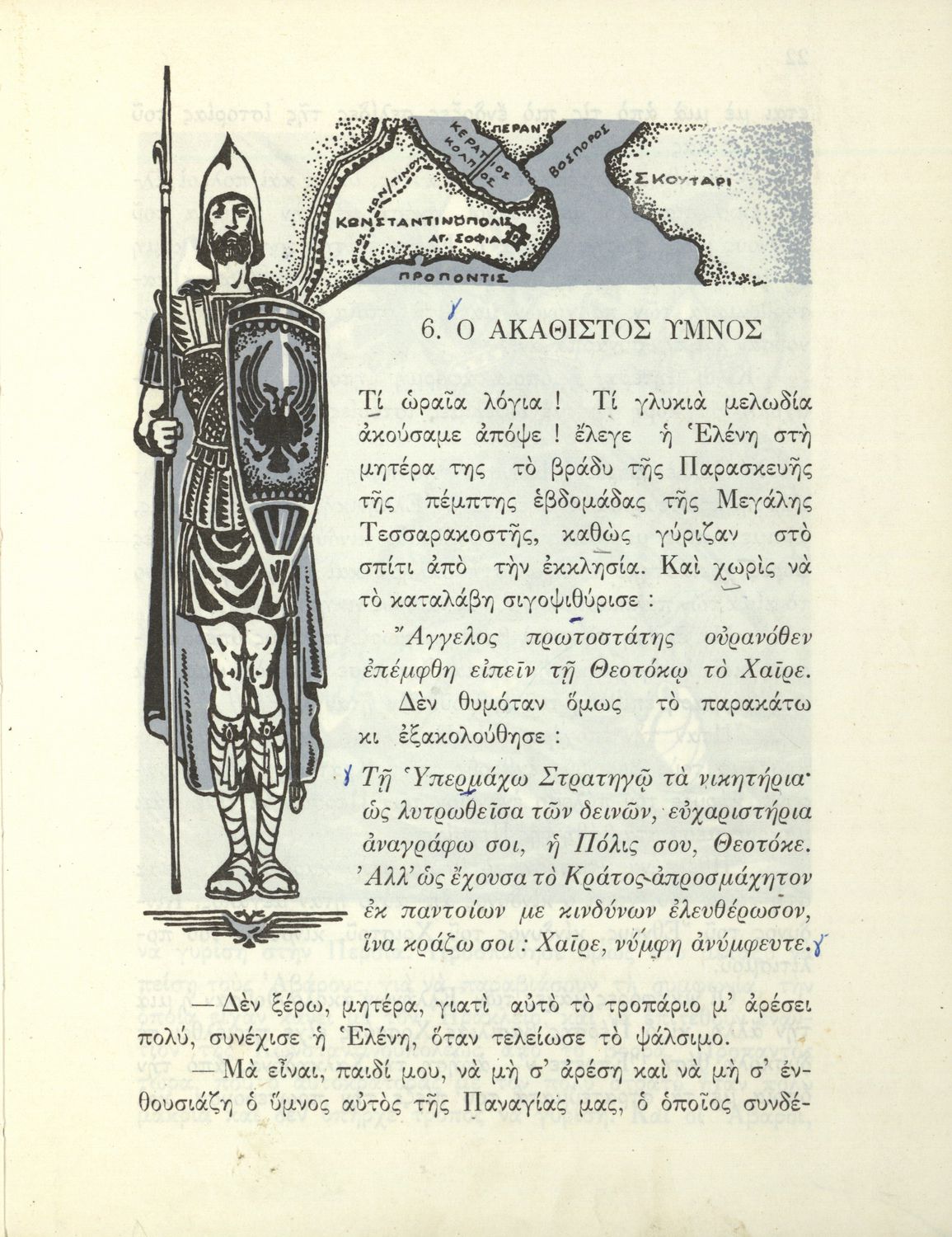 Αναγνωστικό Ε΄ Δημοτικού που περιέχει κείμενα εμπνευσμένα από την εθνική, κοινωνική και οικογενειακή ζωή και την ελληνική φύση, μυθολογία και ιστορία.