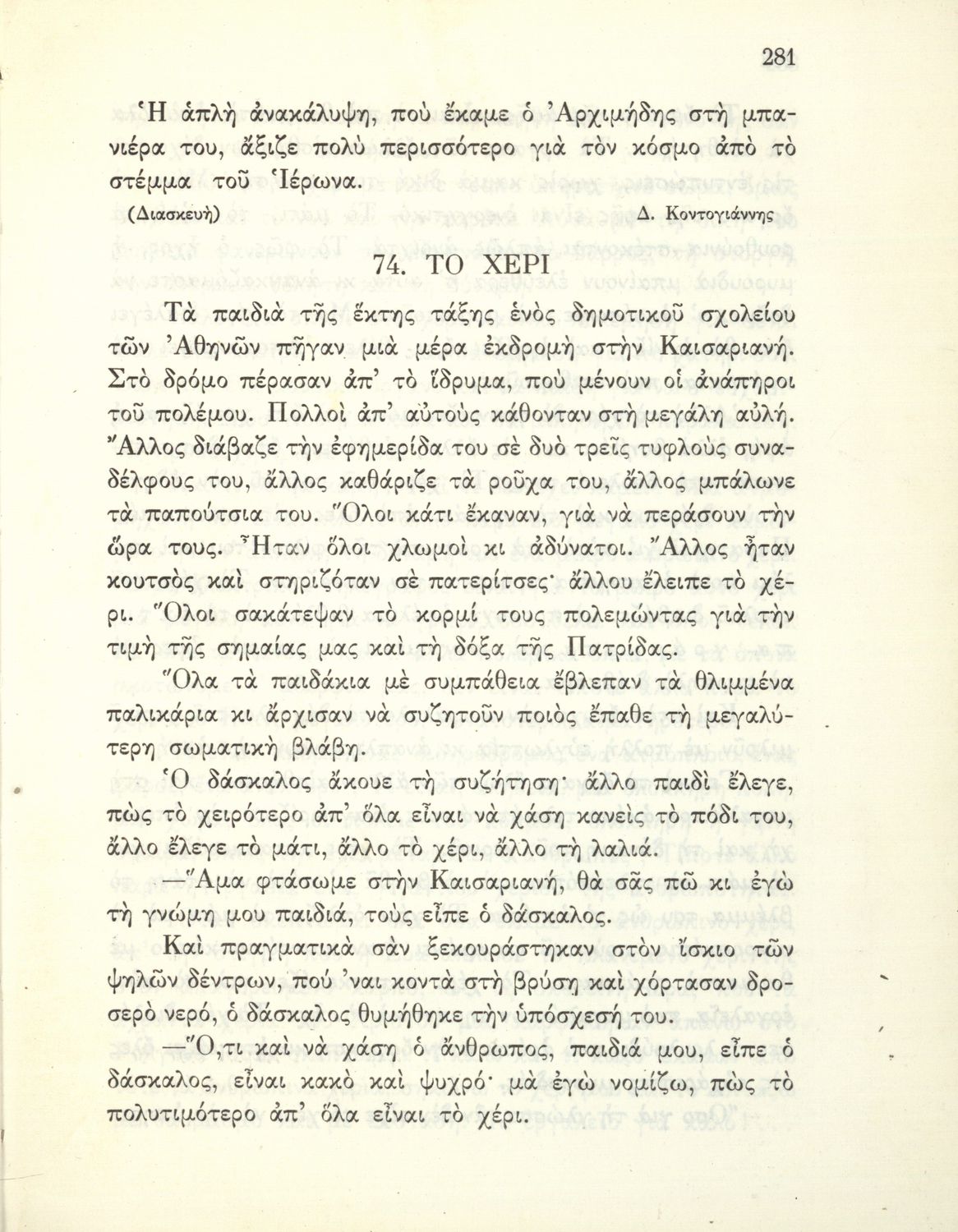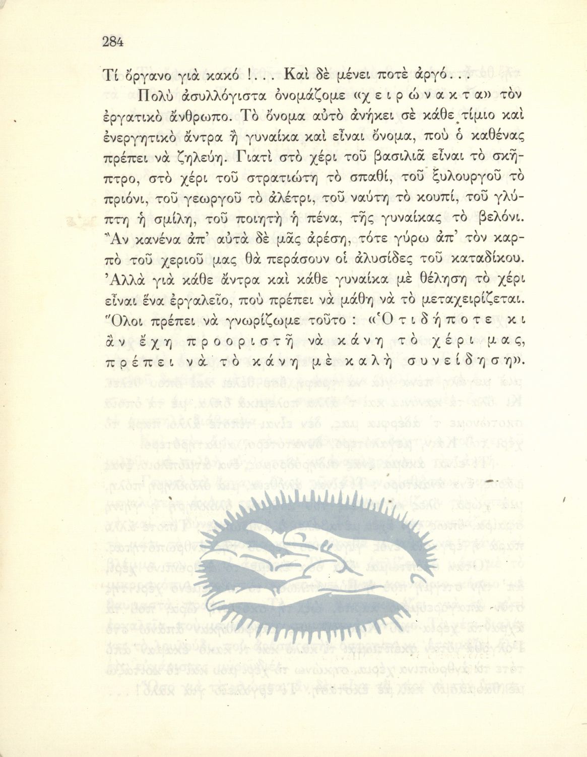Αναγνωστικό της ΣΤ΄ Δημοτικού που κυκλοφόρησε σε 7.000 αντίτυπα 25 ημέρες πριν την 4η Αυγούστου 1936, οπότε κατά την επόμενη σχολική χρονιά διδάχτηκε ελάχιστα και η έκδοσή του με αυτή την μορφή σταμάτησε.