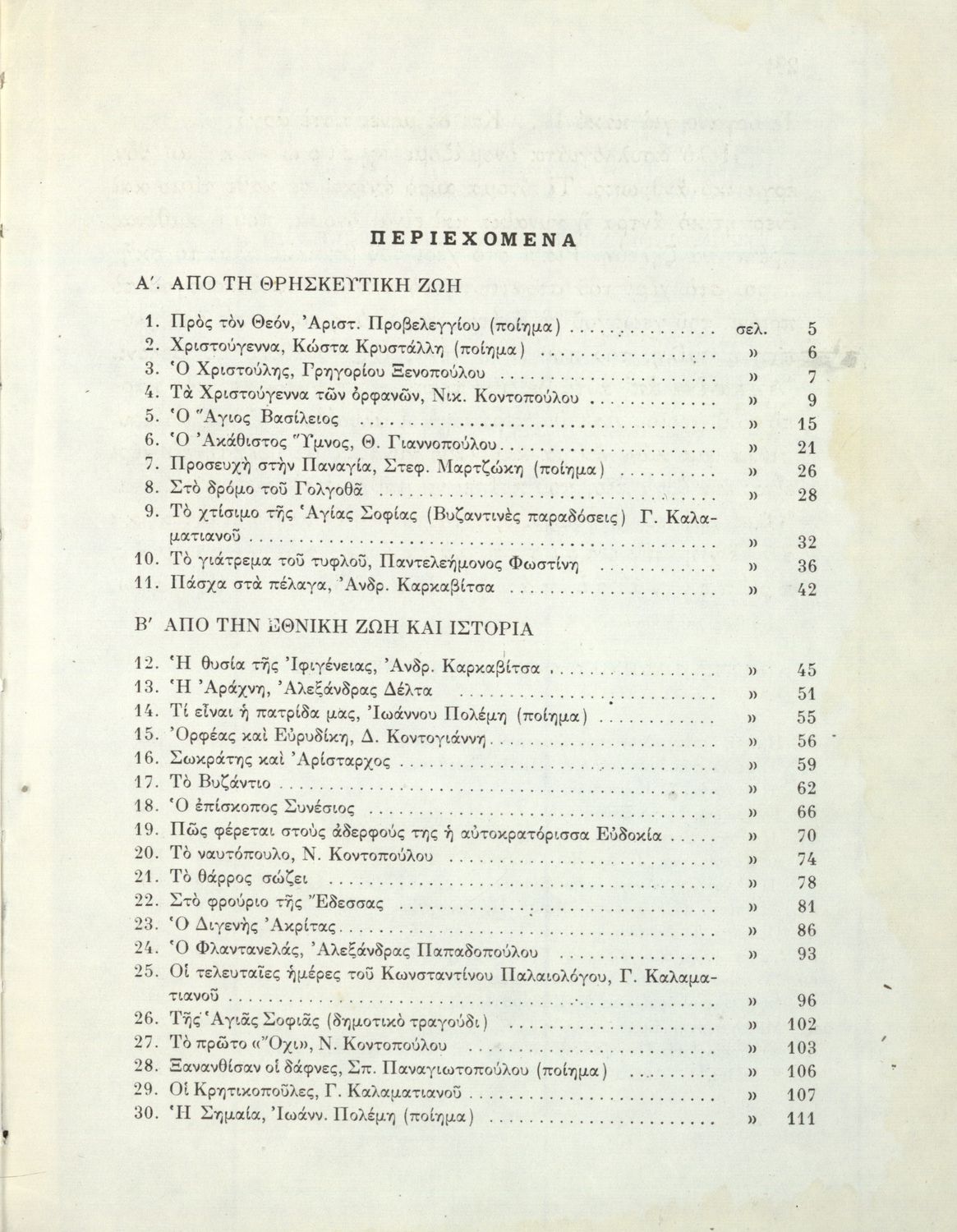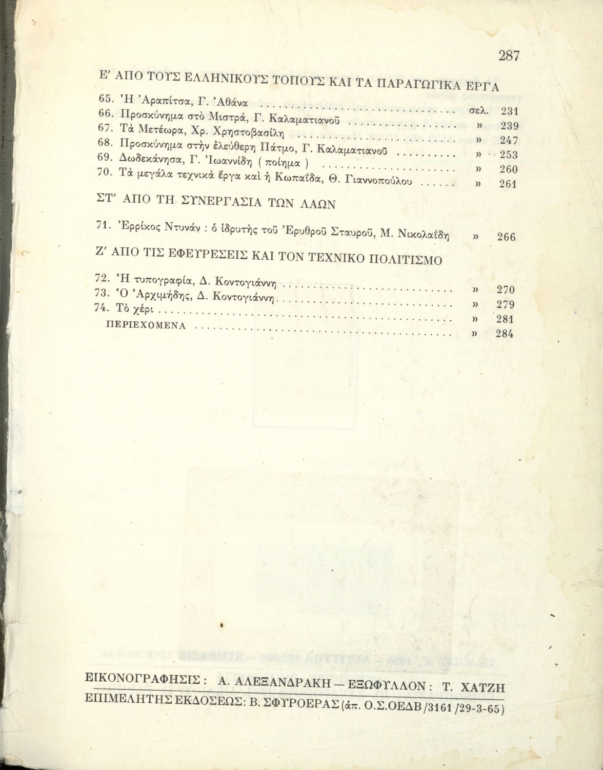 Αναγνωστικό Ε΄ Δημοτικού που περιέχει πεζά και ποιήματα εμπνευσμένα από τη θρησκευτική, εθνική, κοινωνική ζωή καθώς και από τις ασχολίες των Ελλήνων, την αρχαία και σύγχρονη ελληνική ιστορία και τον πολιτισμό.