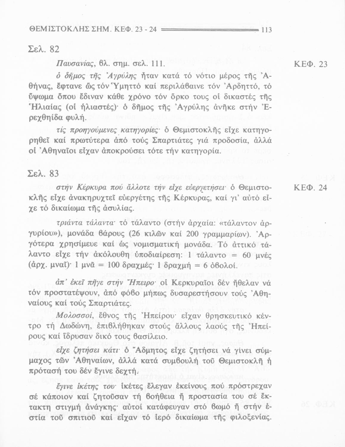 Σχολικό εγχειρίδιο Αρχαίων Ελληνικών Β΄ Γυμνασίου που περιέχει μετάφραση του έργο του Πλούταρχου Θεμιστοκλής και Περικλής, εισαγωγή και ερμηνευτικά σχόλια.