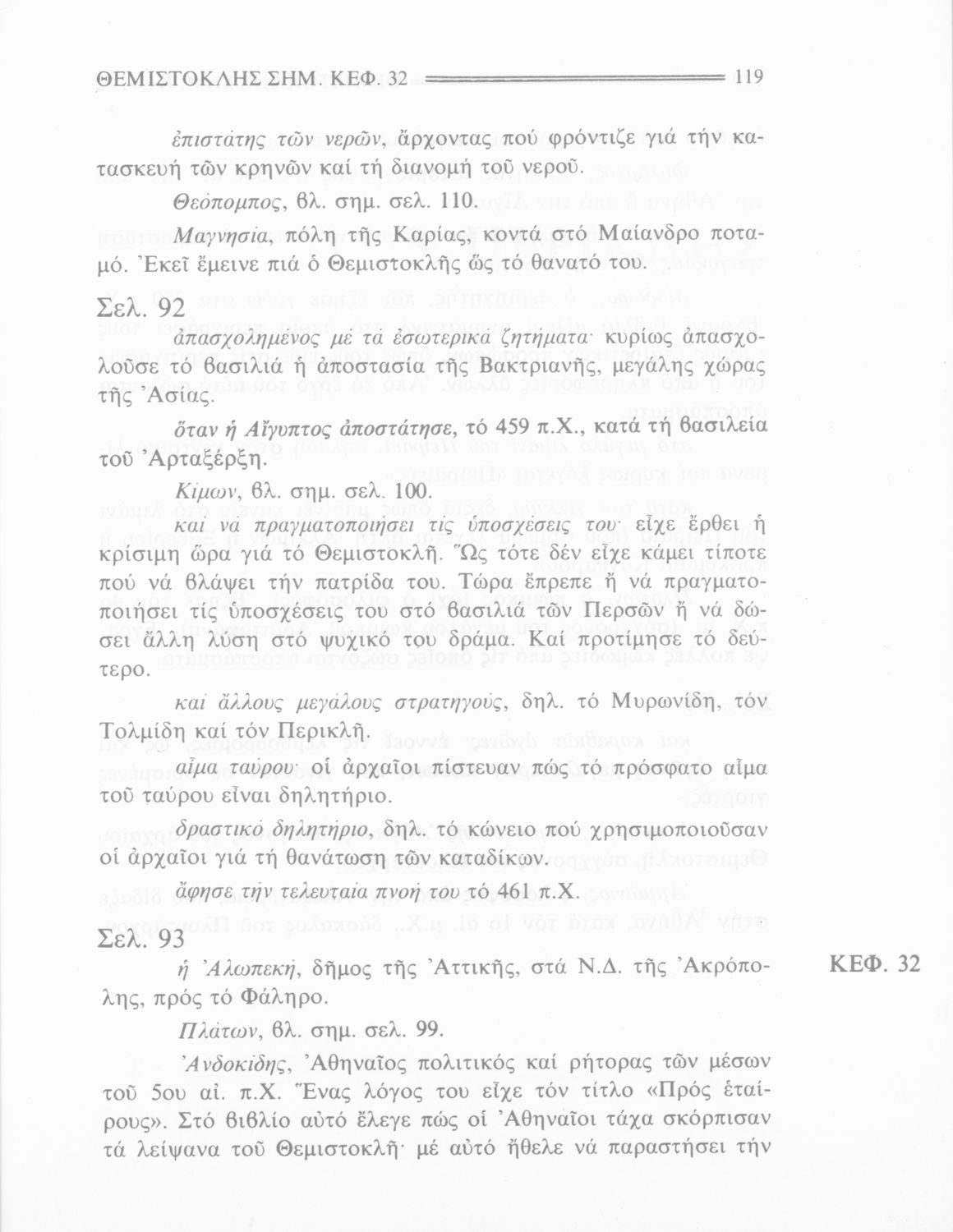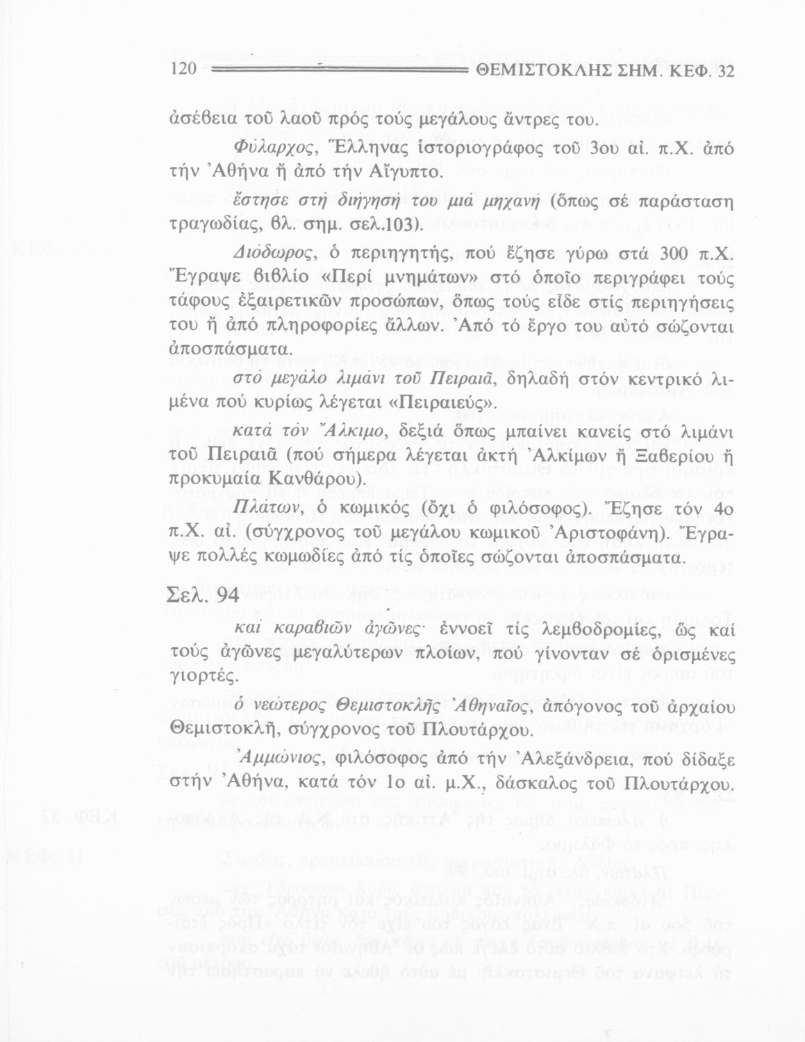 Βαθμίδα εκπαίδευσης: Δευτεροβάθμια Τάξη: Β' Γυμνασίου Μάθημα: Αρχαία Ελληνικά Γλώσσα: Δημοτική Παρουσίαση περιεχομένου: Σχολικό εγχειρίδιο Αρχαίων Ελληνικών. Αρχικά ένα εισαγωγικό σημείωμα αναφέρεται στη ζωή και το έργο του Πλουτάρχου. Ακολουθούν από το έργο του "Παράλληλοι Βίοι", σε μετάφραση, οι βιογραφίες του Σόλωνα, του Θεμιστοκλή και του Περικλή. Η κάθε βιογραφία συνοδεύεται από σημειώσεις και διανθίζεται με σχέδια, χάρτες και εικόνες. |