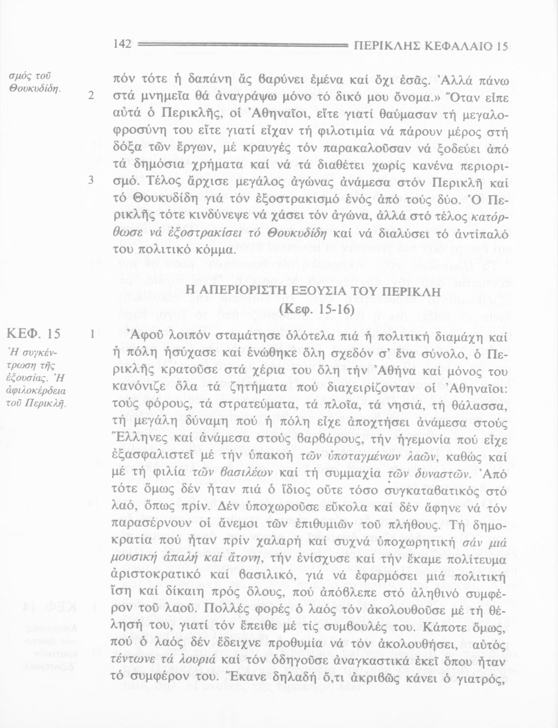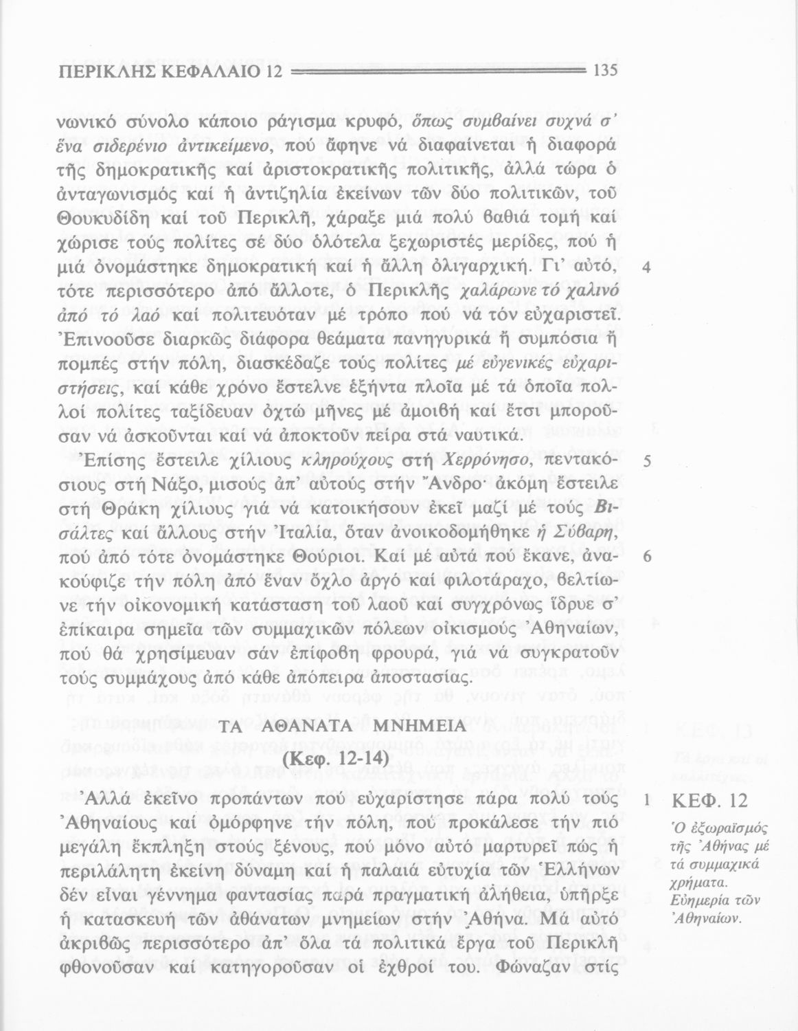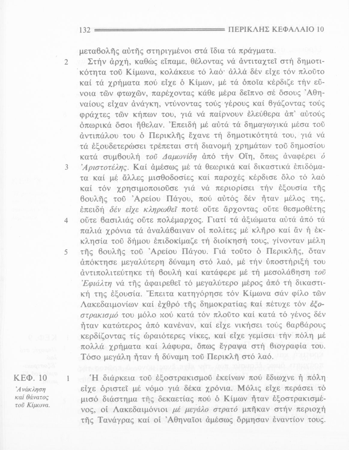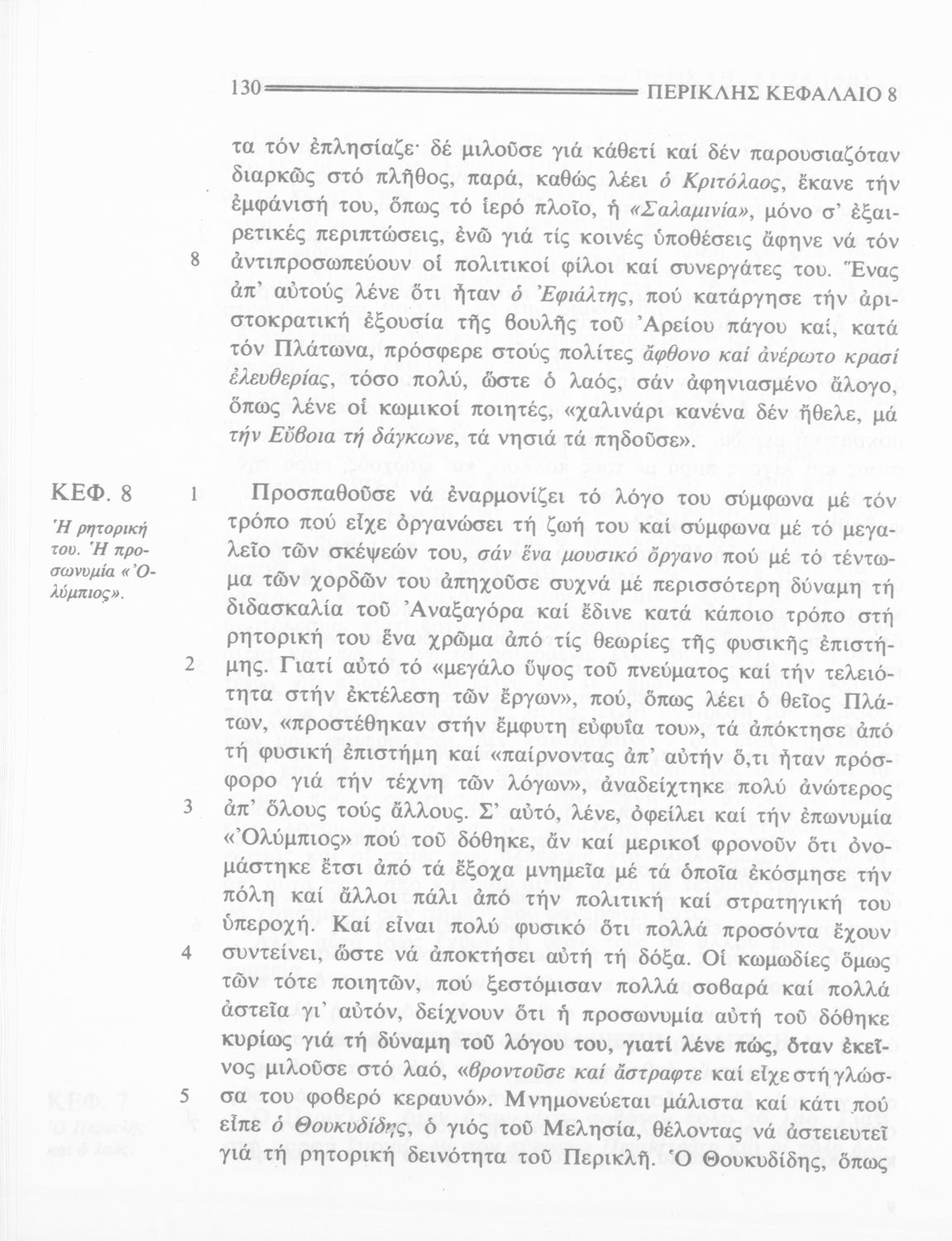Σχολικό εγχειρίδιο Αρχαίων Ελληνικών. Αρχικά ένα εισαγωγικό σημείωμα αναφέρεται στη ζωή και το έργο του Πλουτάρχου. Ακολουθούν από το έργο του "Παράλληλοι Βίοι", σε μετάφραση, οι βιογραφίες του Σόλωνα, του Θεμιστοκλή και του Περικλή. Η κάθε βιογραφία συνοδεύεται από σημειώσεις και διανθίζεται με σχέδια, χάρτες και εικόνες.