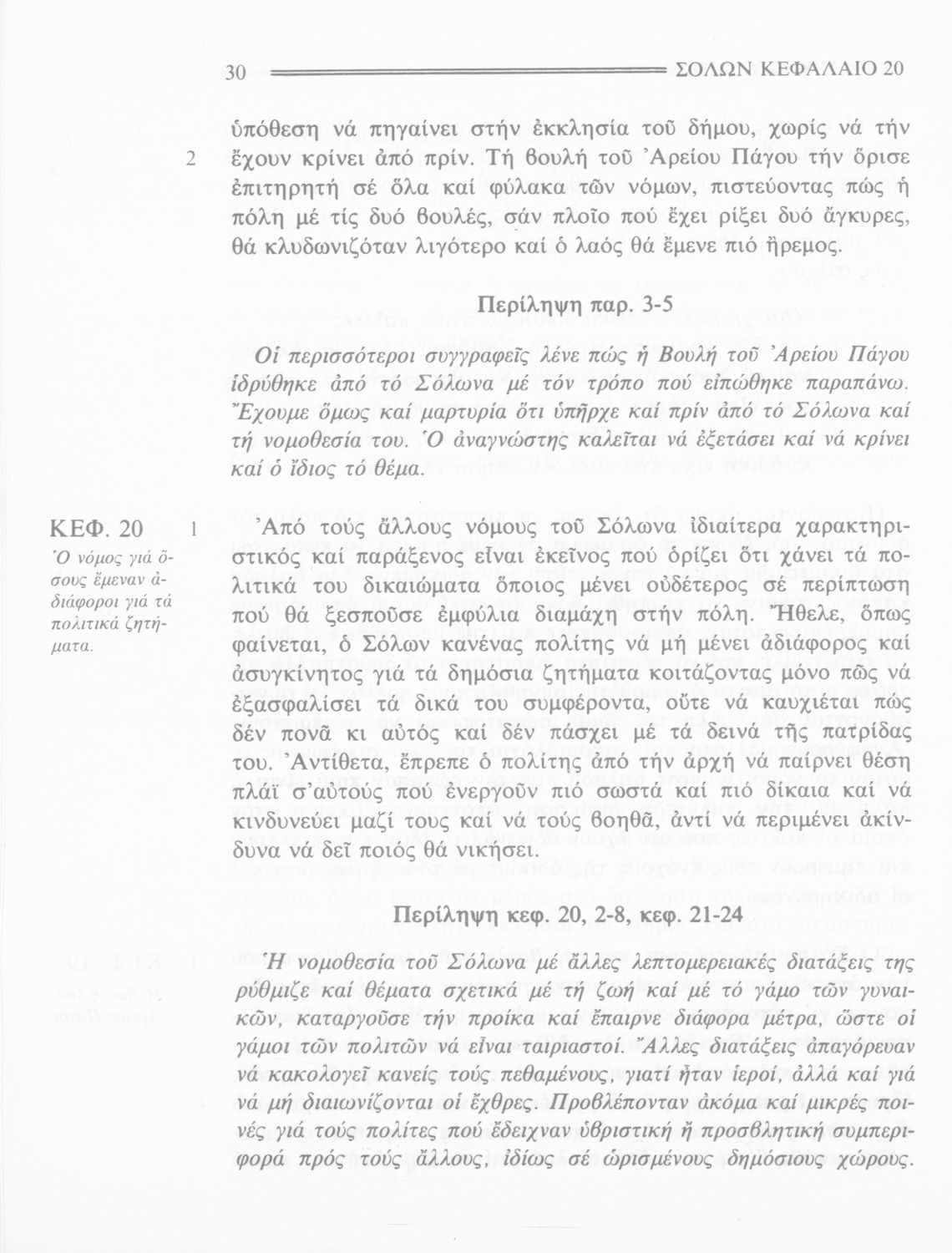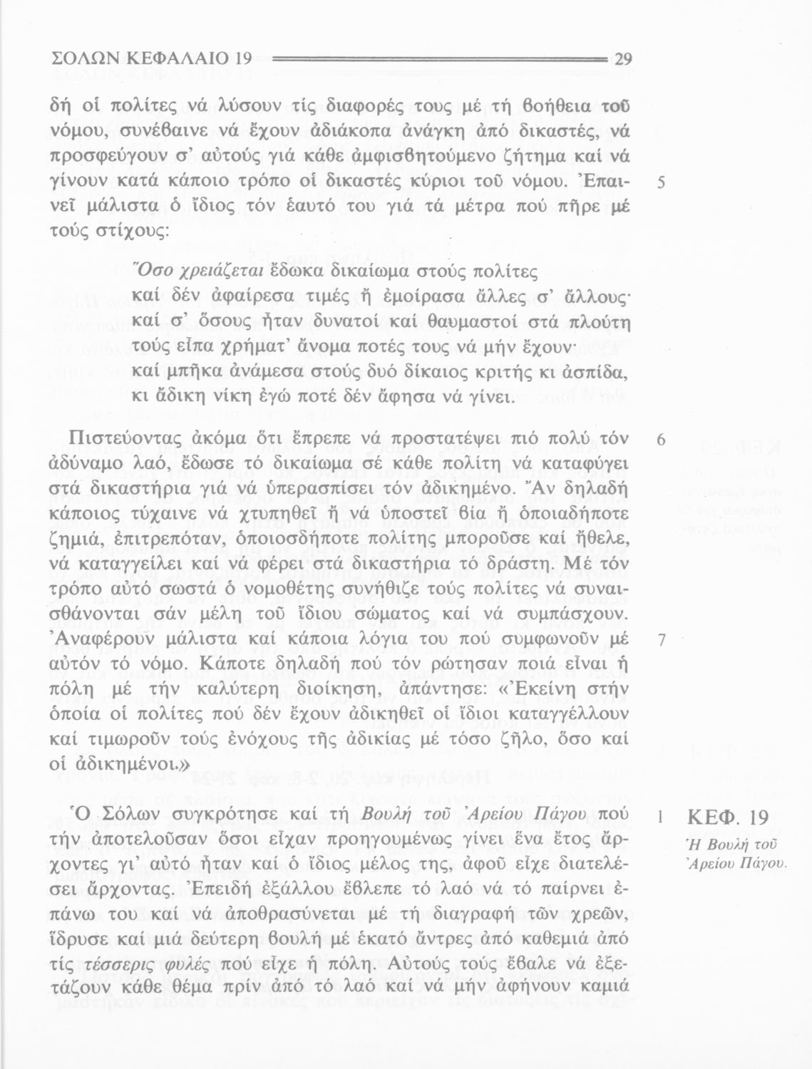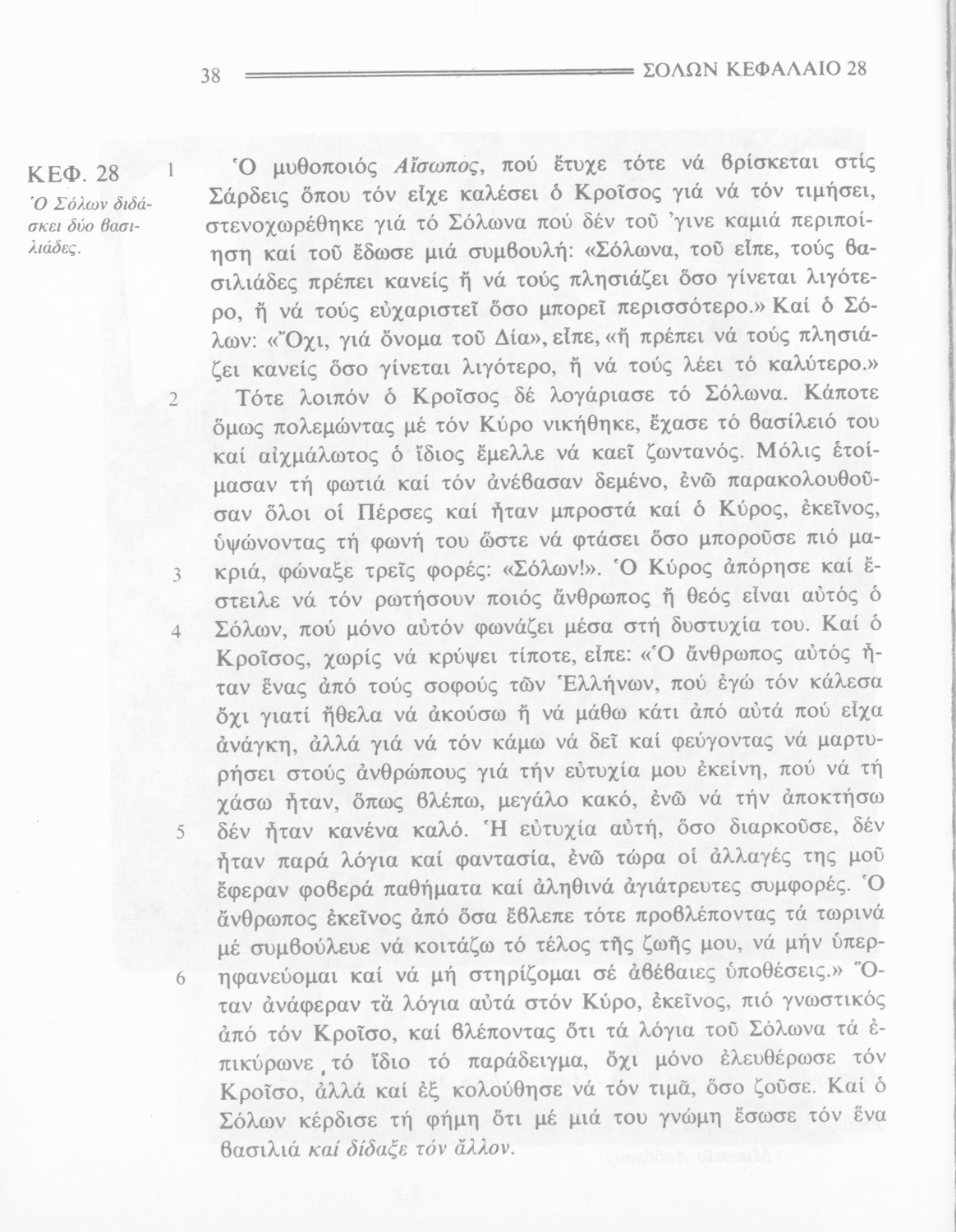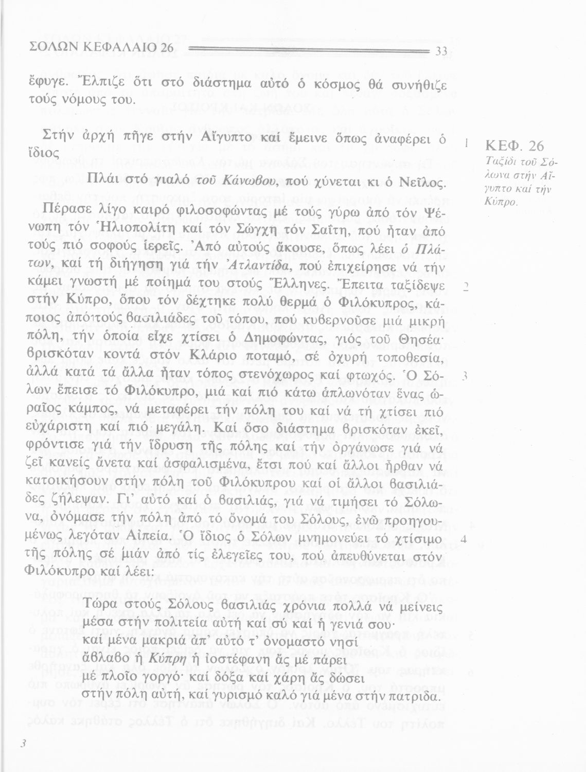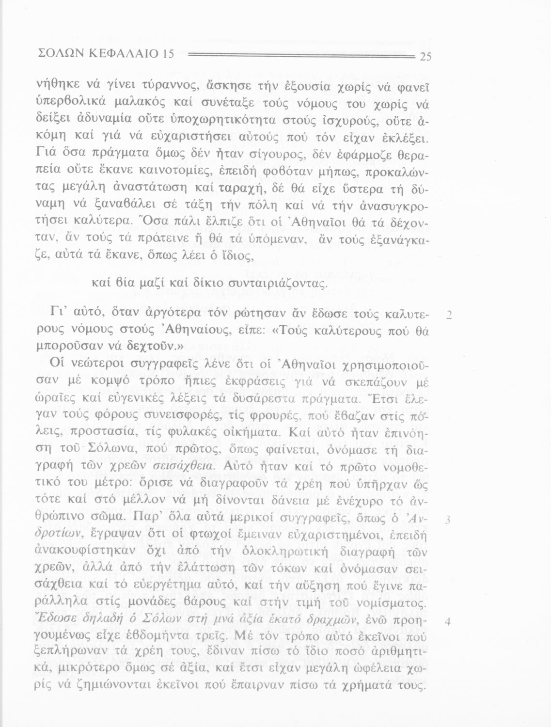 Σχολικό εγχειρίδιο Αρχαίων Ελληνικών. Αρχικά ένα εισαγωγικό σημείωμα αναφέρεται στη ζωή και το έργο του Πλουτάρχου. Ακολουθούν από το έργο του "Παράλληλοι Βίοι", σε μετάφραση, οι βιογραφίες του Σόλωνα, του Θεμιστοκλή και του Περικλή. Η κάθε βιογραφία συνοδεύεται από σημειώσεις και διανθίζεται με σχέδια, χάρτες και εικόνες.