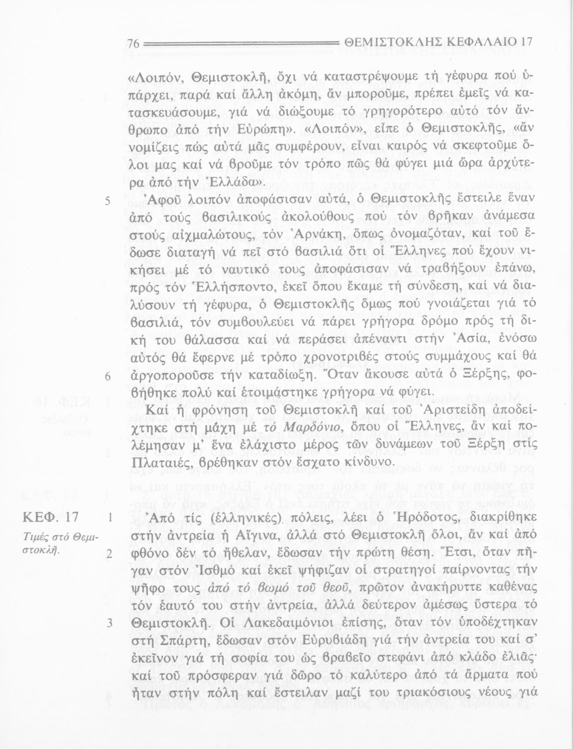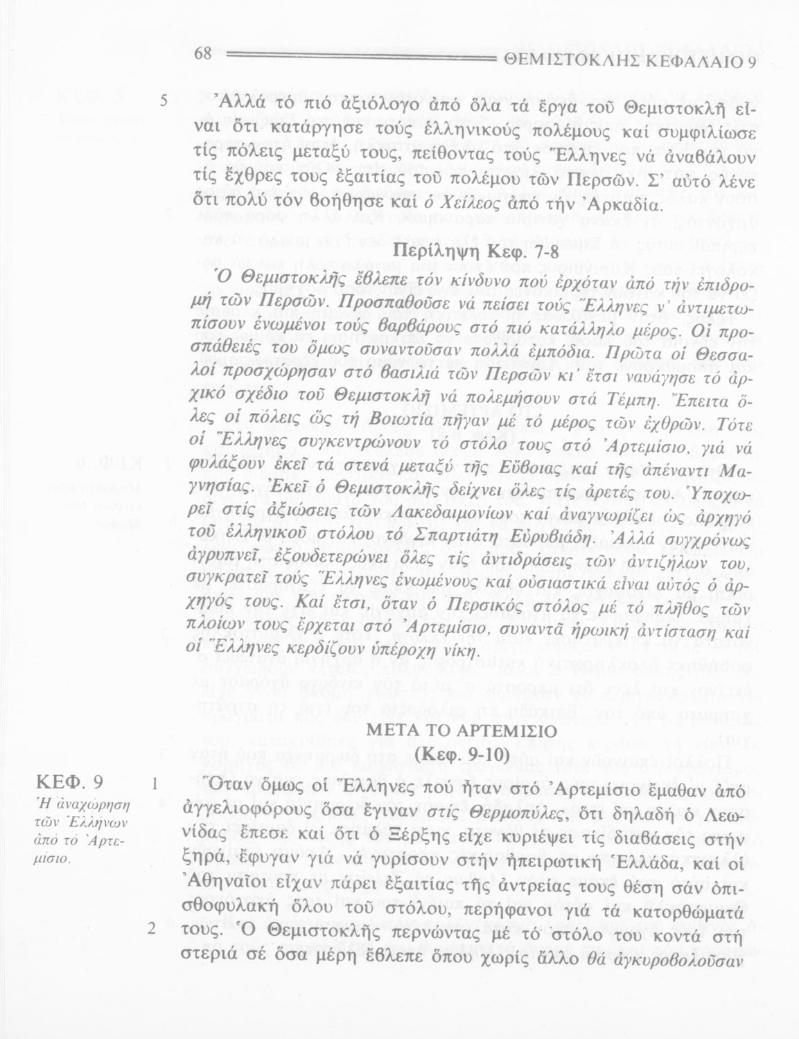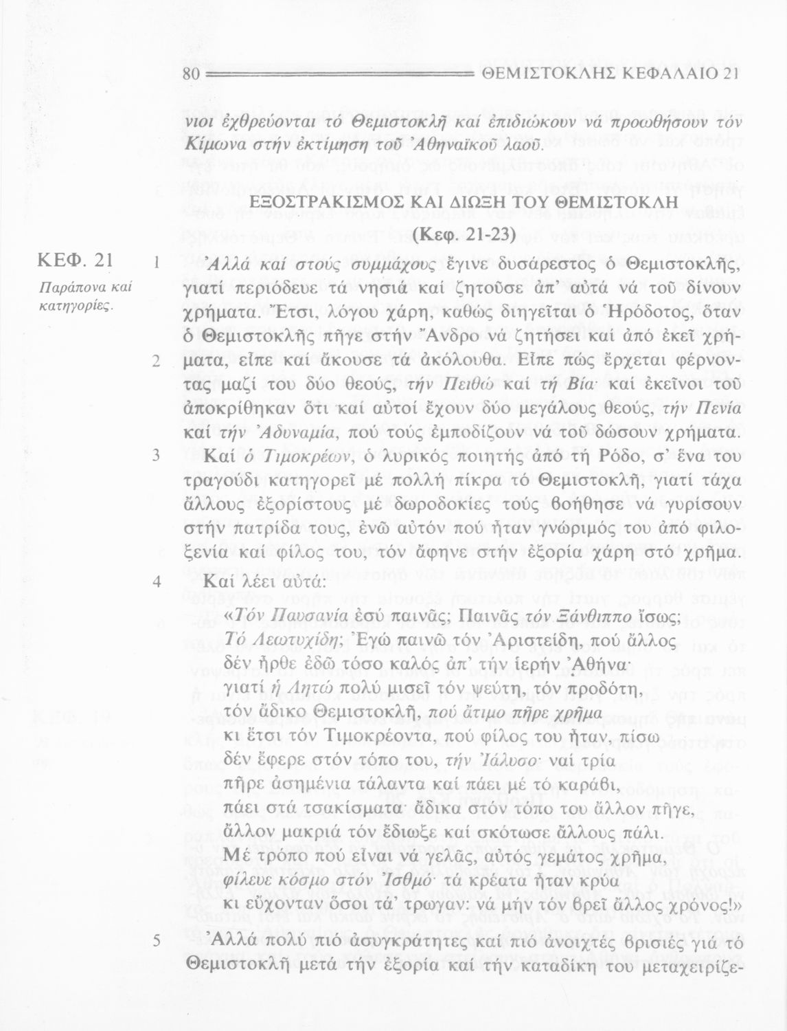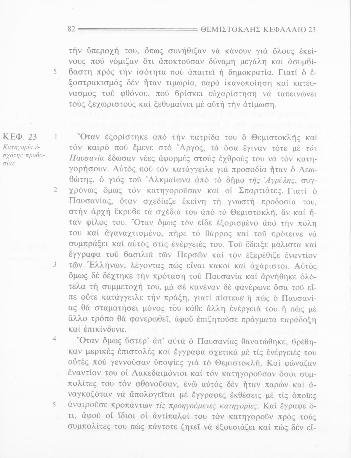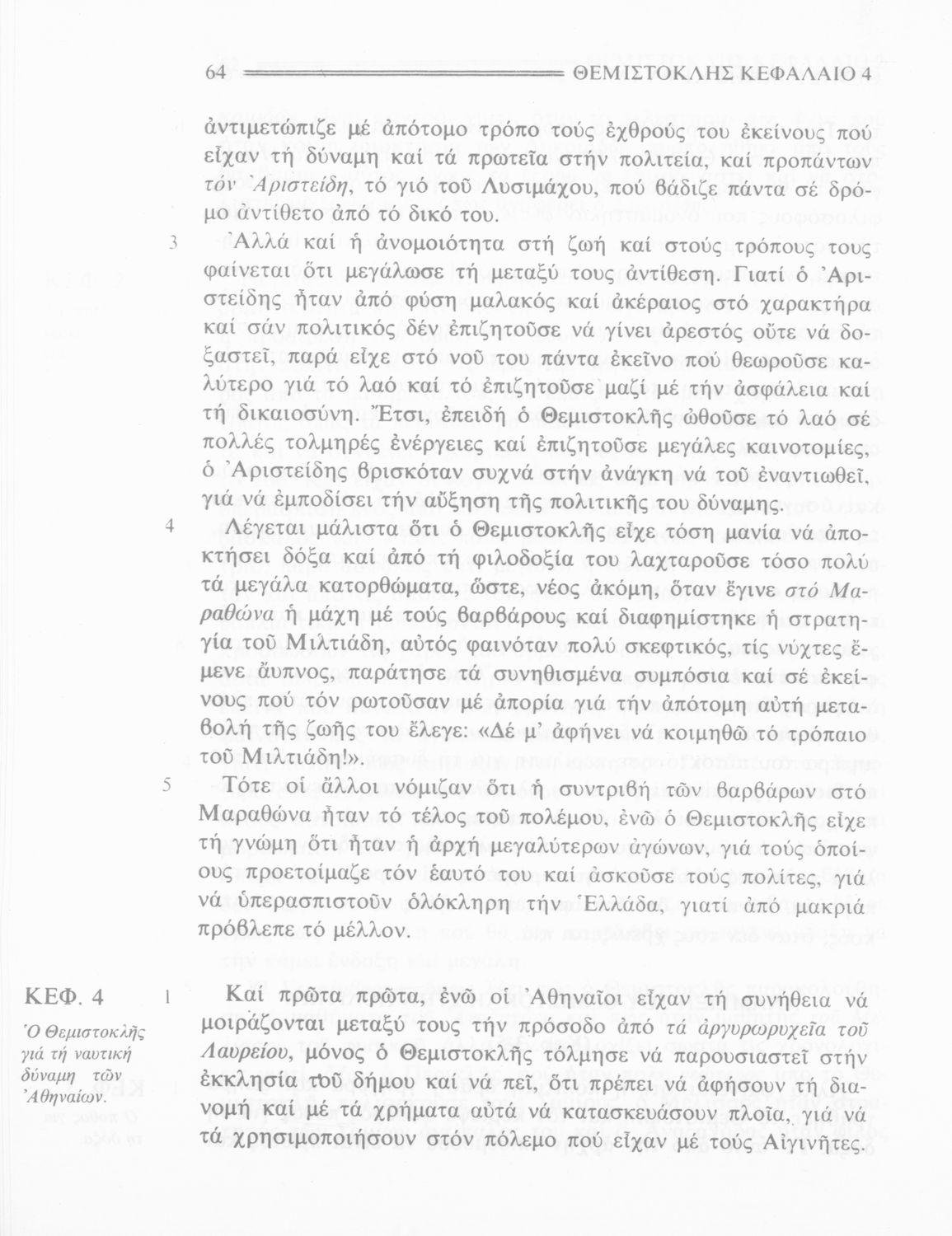 Σχολικό εγχειρίδιο Αρχαίων Ελληνικών Β΄ Γυμνασίου που περιέχει μετάφραση του έργο του Πλούταρχου Θεμιστοκλής και Περικλής, εισαγωγή και ερμηνευτικά σχόλια.