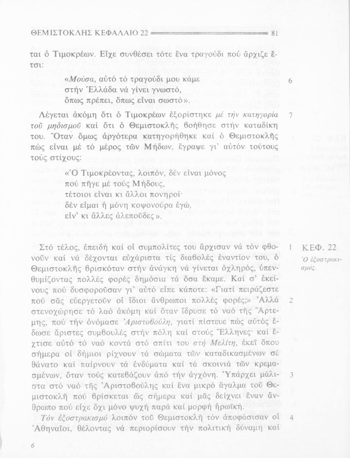 Σχολικό εγχειρίδιο Αρχαίων Ελληνικών Α΄ Γυμνασίου που περιλαμβάνει το έργο του Πλούταρχου Θεμιστοκλής, εισαγωγή στη ζωή και το έργο του, ερμηνευτικά και πραγματολογικά σχόλια, και αλφαβητικό πίνακα των ...
