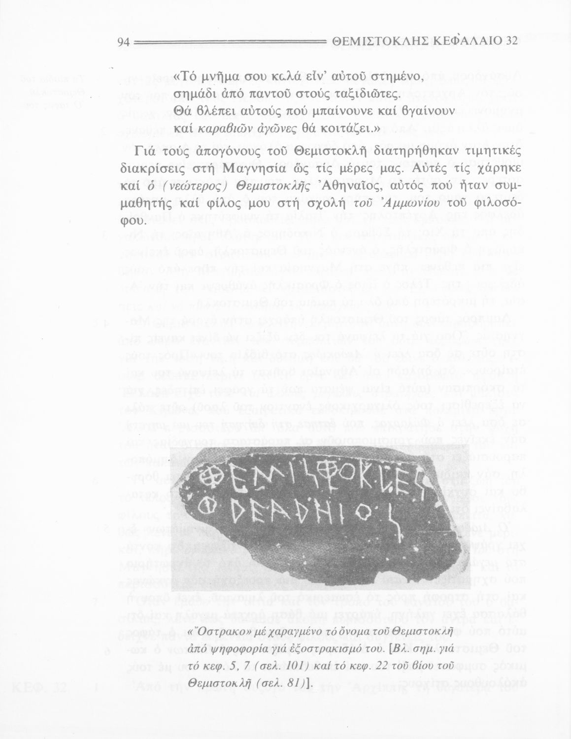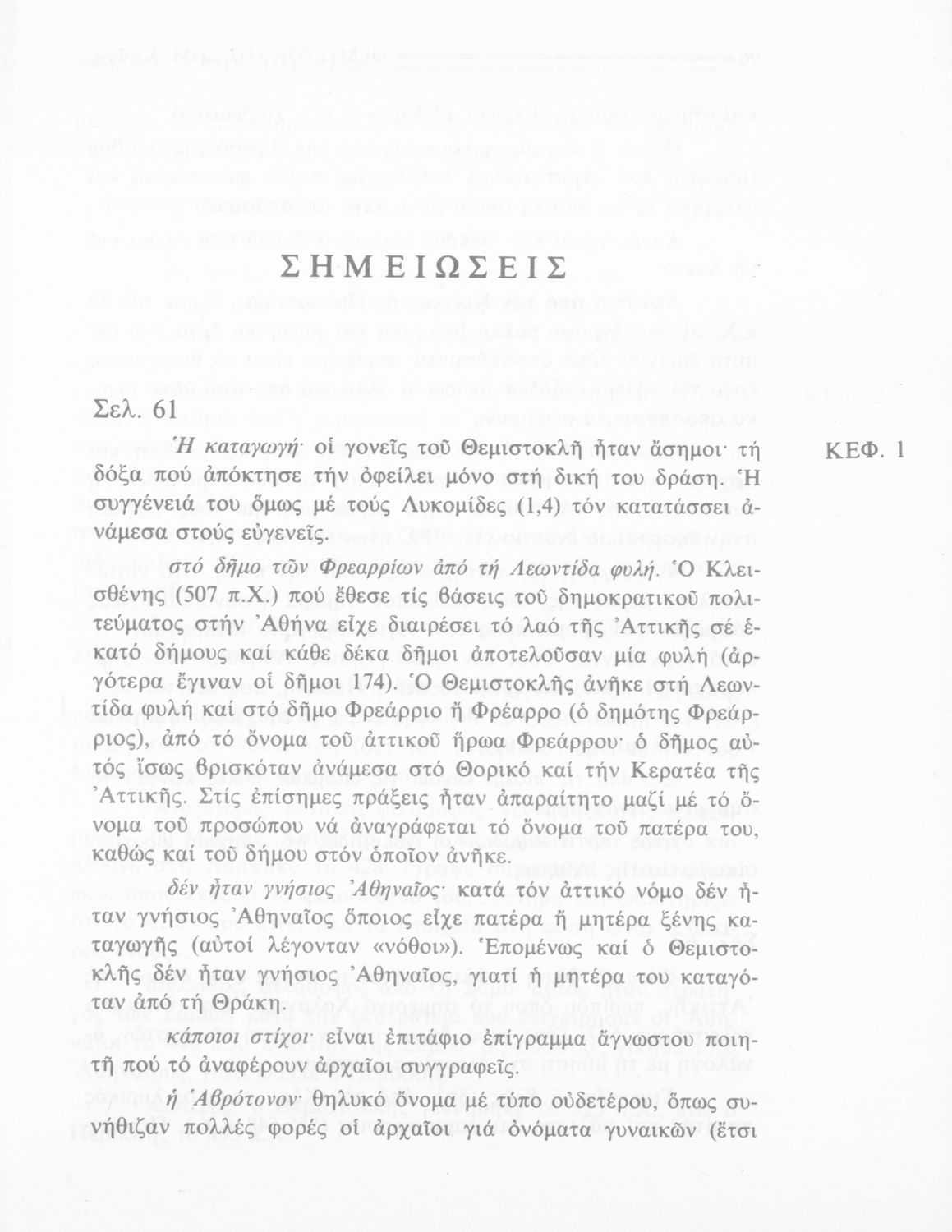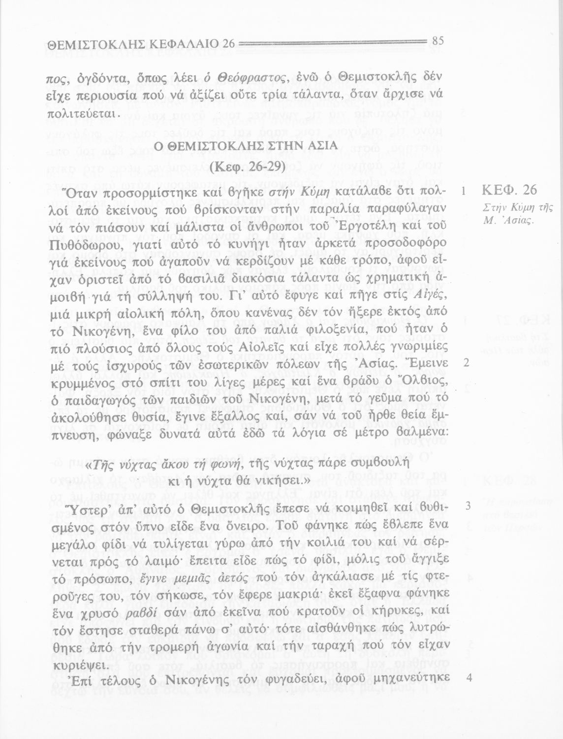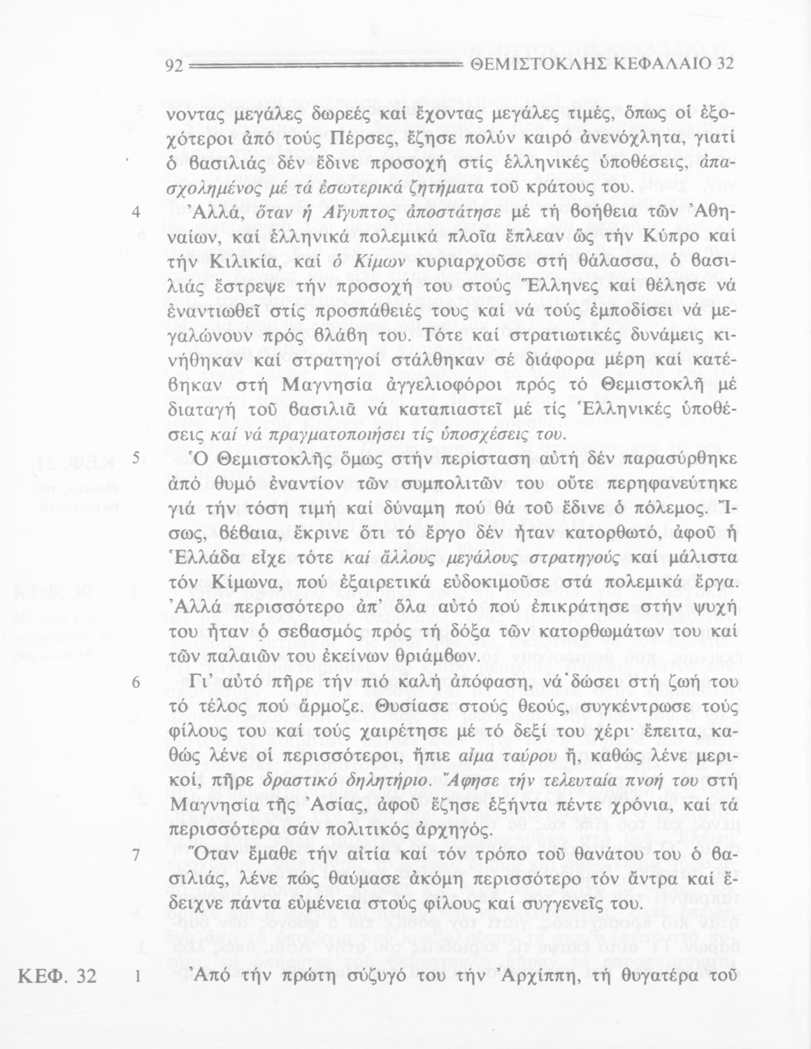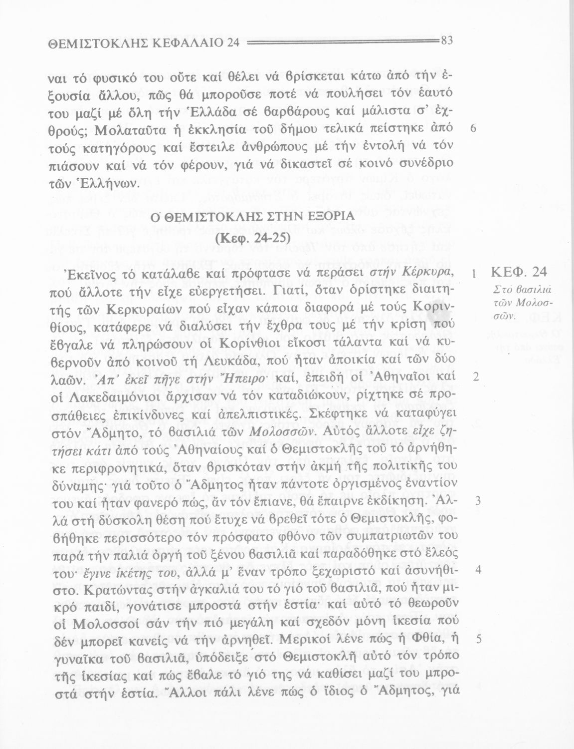 Σχολικό εγχειρίδιο Αρχαίων Ελληνικών Β΄ Γυμνασίου που περιέχει μετάφραση του έργο του Πλούταρχου Θεμιστοκλής και Περικλής, εισαγωγή και ερμηνευτικά σχόλια.