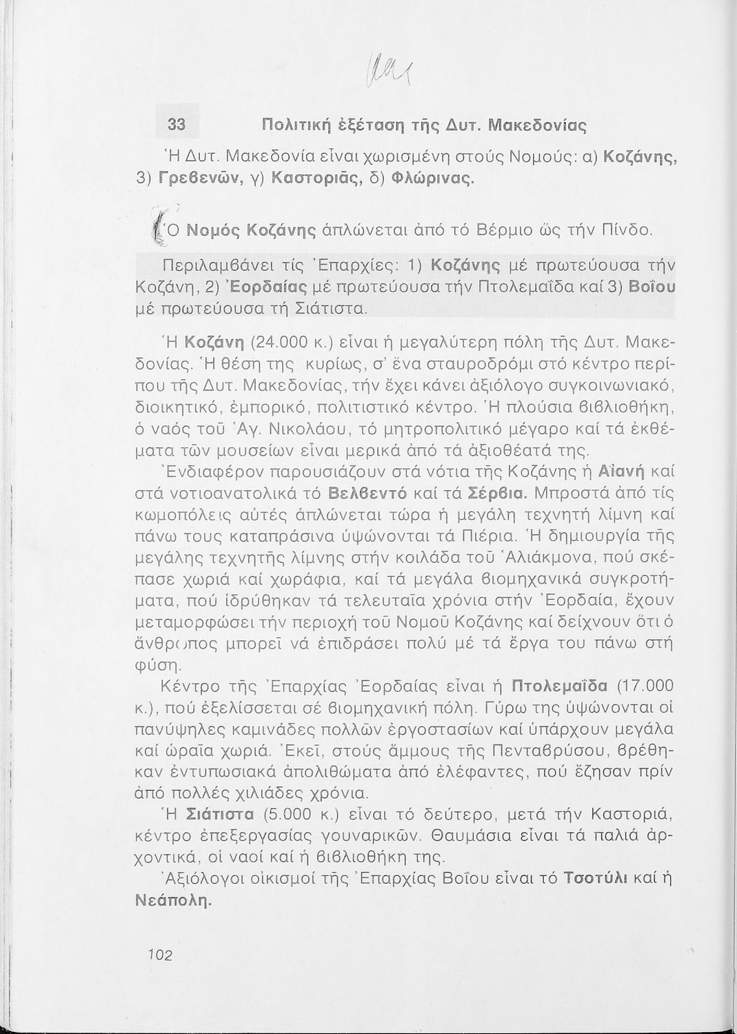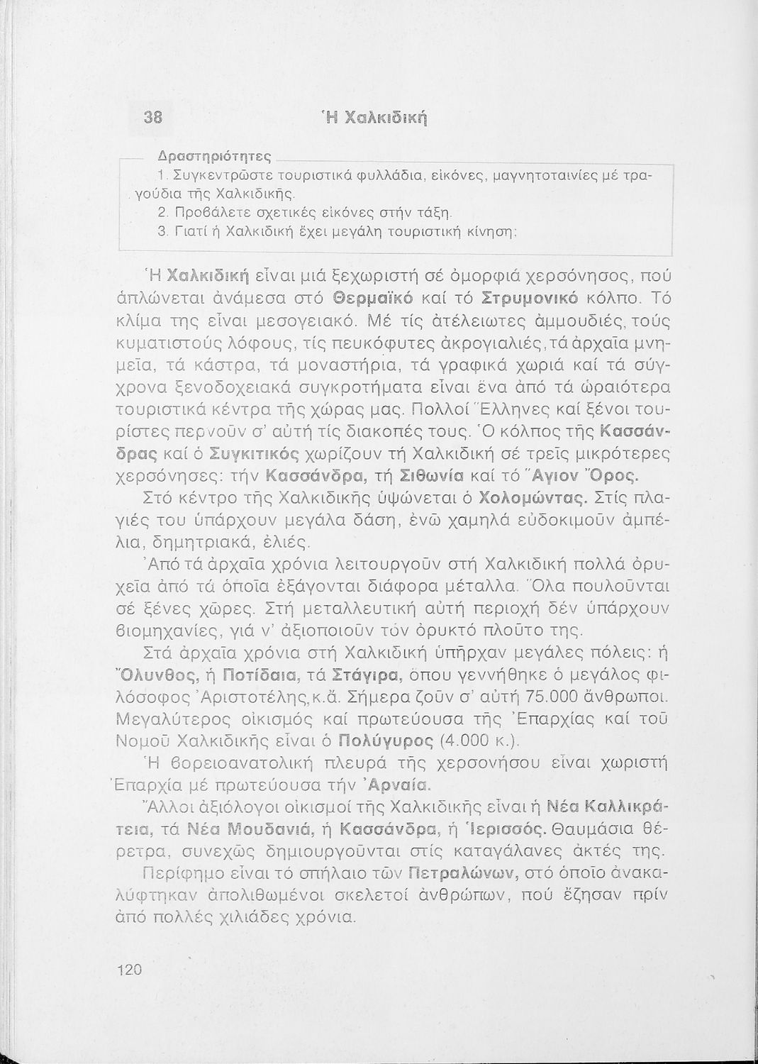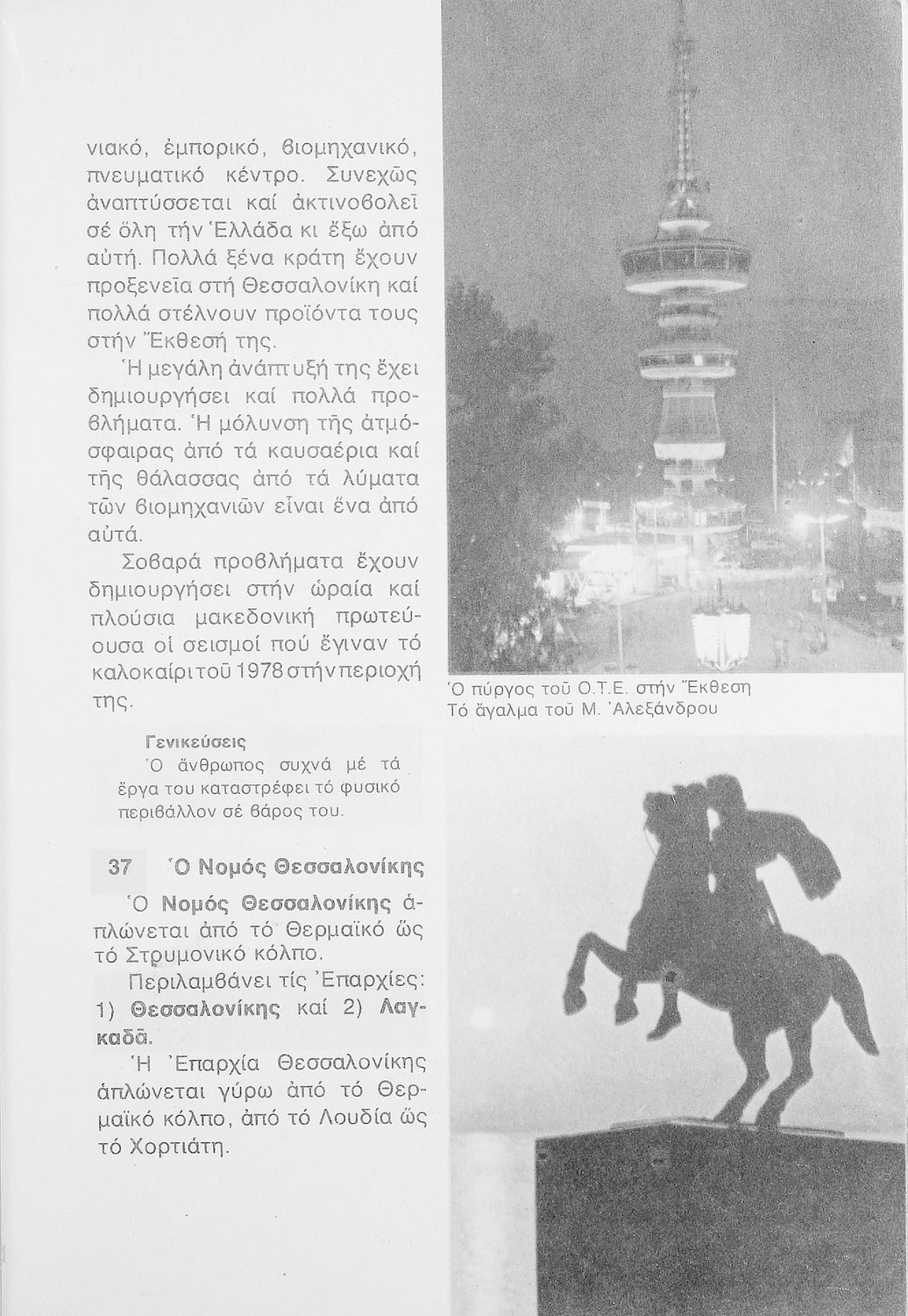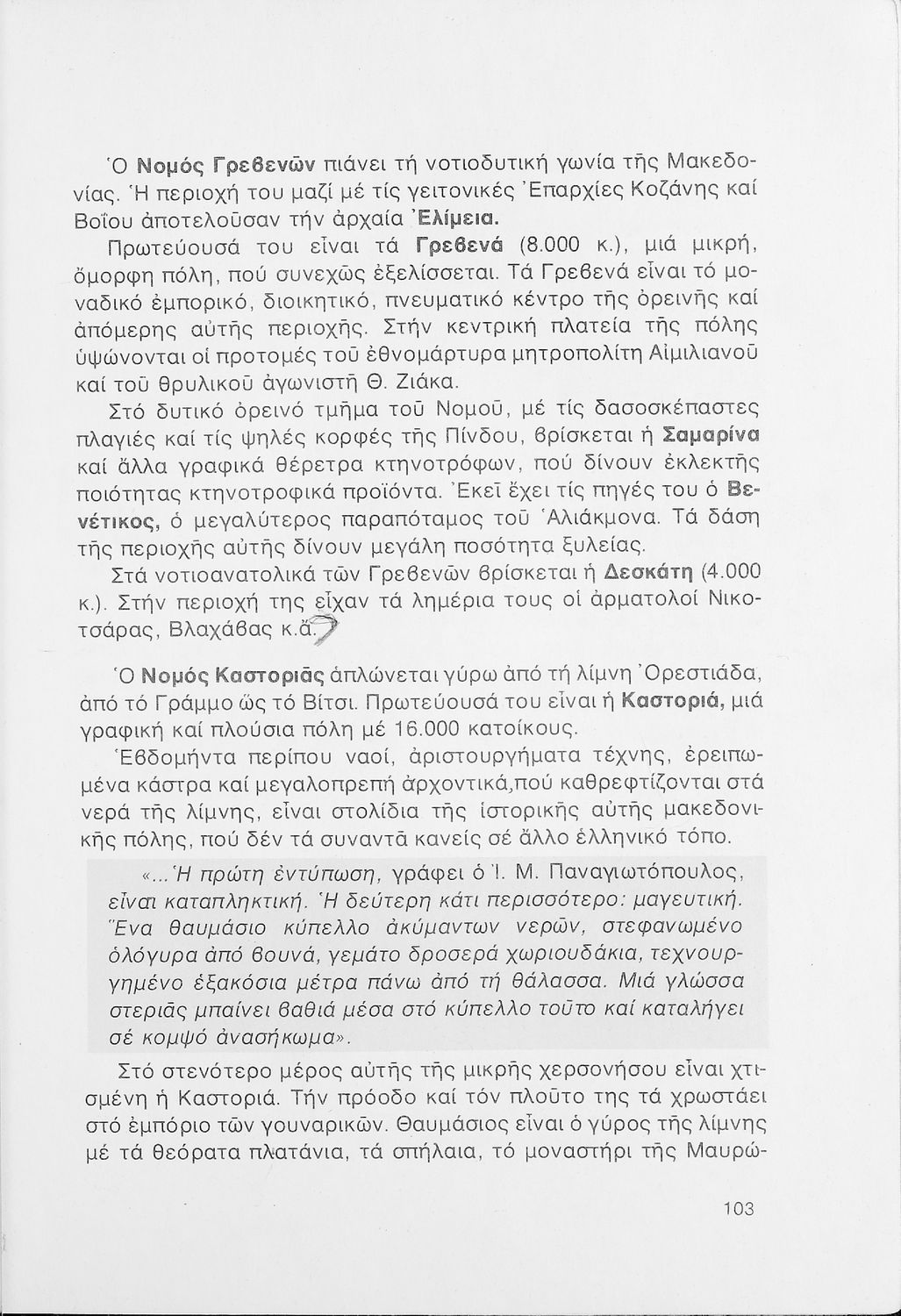 Σχολικό εγχειρίδιο Γεωγραφίας για τη Γ΄, Δ΄ Δημοτικού. Μελετά την Ελλάδα ανά γεωγραφικό νομό με πληροφορίες από το χάρτη της περιοχής και στοιχεία της ιστορίας και της οικονομικής ζωής.