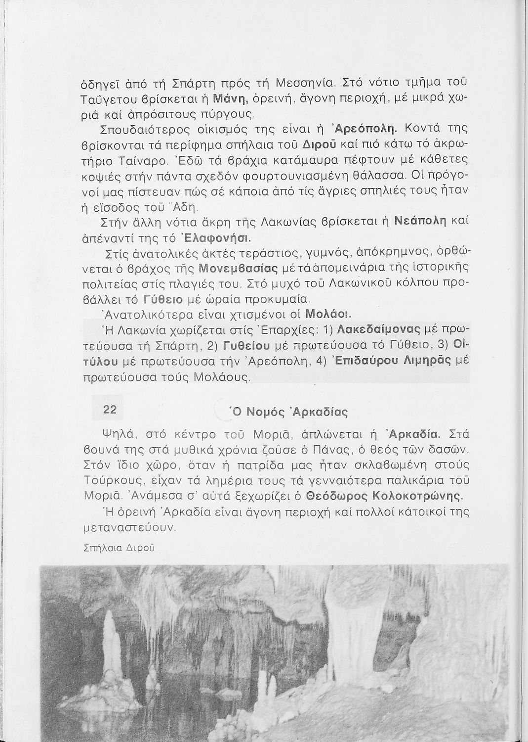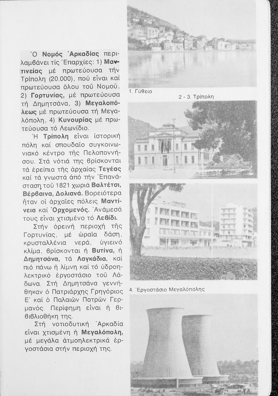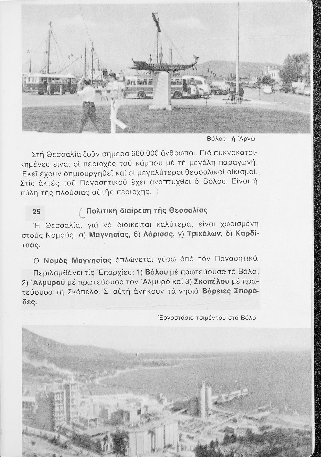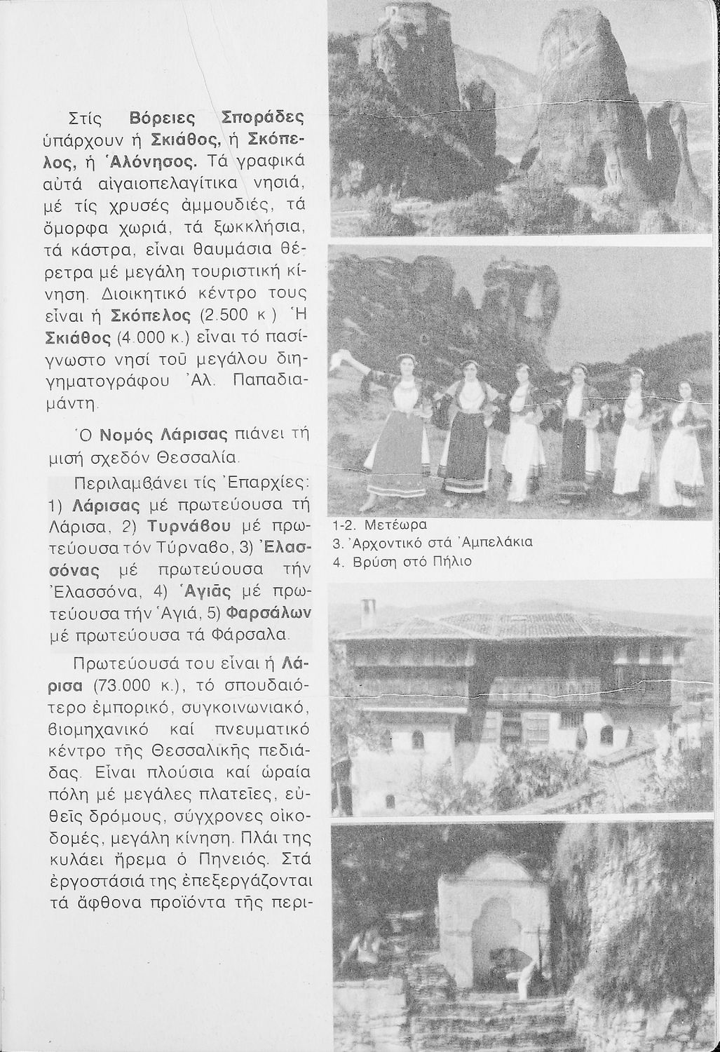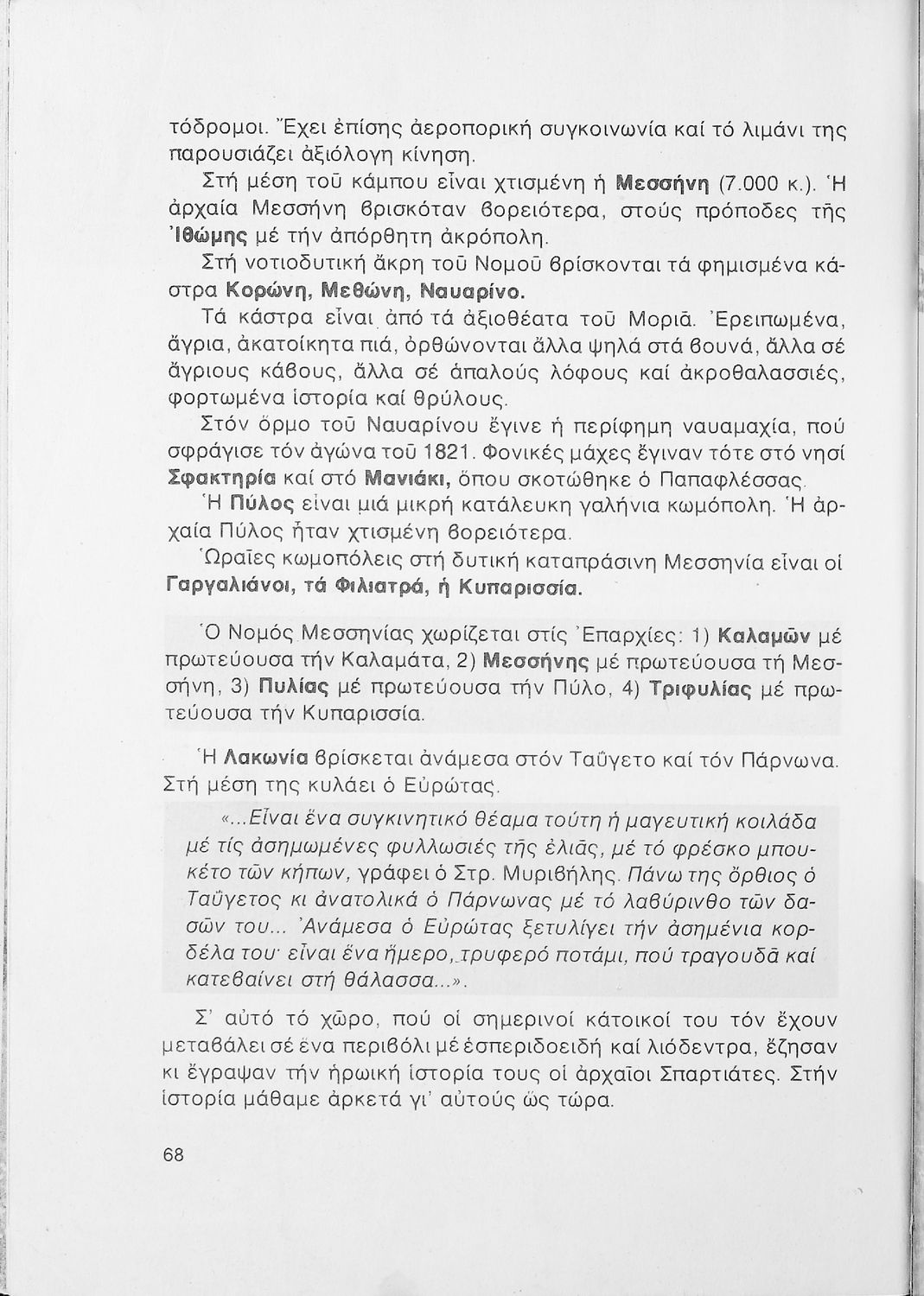 Σχολικό εγχειρίδιο Γεωγραφίας για τη Γ΄, Δ΄ Δημοτικού. Μελετά την Ελλάδα ανά γεωγραφικό νομό με πληροφορίες από το χάρτη της περιοχής και στοιχεία της ιστορίας και της οικονομικής ζωής.