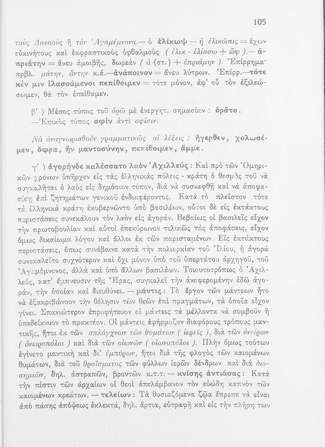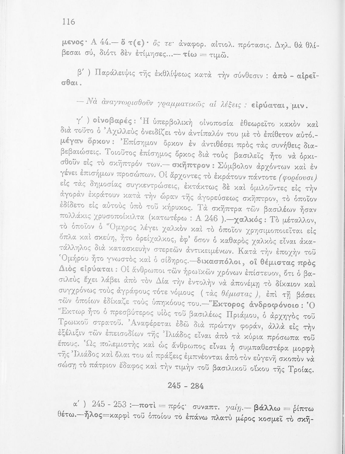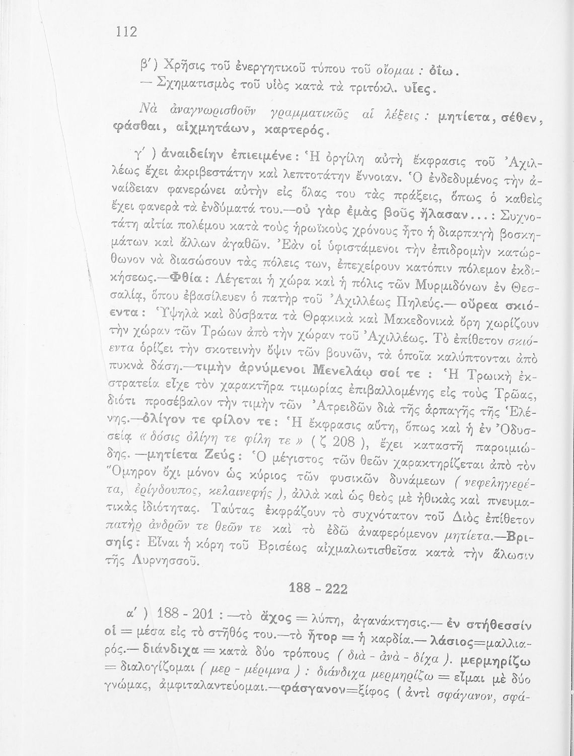Μαθητικό βοήθημα του Ελληνικού Σχολείου, των Παρθεναγωγείων και του Γυμνασίου για το μάθημα των Αρχαίων Ελληνικών. Περιέχει τις ραψωδίες Ο, Π, Ρ, Σ, Τ, Χ, ψ, Ω από το πρωτότυπο με σχόλια και ερμηνευτικές ...