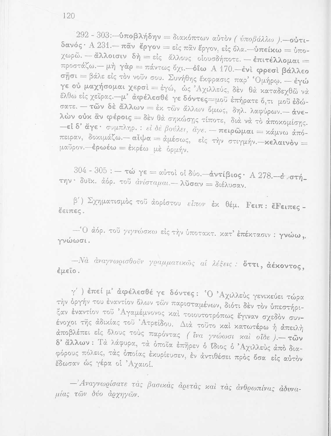 Σχολικό εγχειρίδιο της Δευτεροβάθμιας Εκπαίδευσης για το μάθημα των Αρχαίων Ελληνικών. Πρόκειται για το κείμενο της Ιλιάδας μεταφρασμένο, με ερμηνευτικές και πραγματολογικές παρατηρήσεις. Στο τέλος περιλαμβάνει λεξιλόγιο.