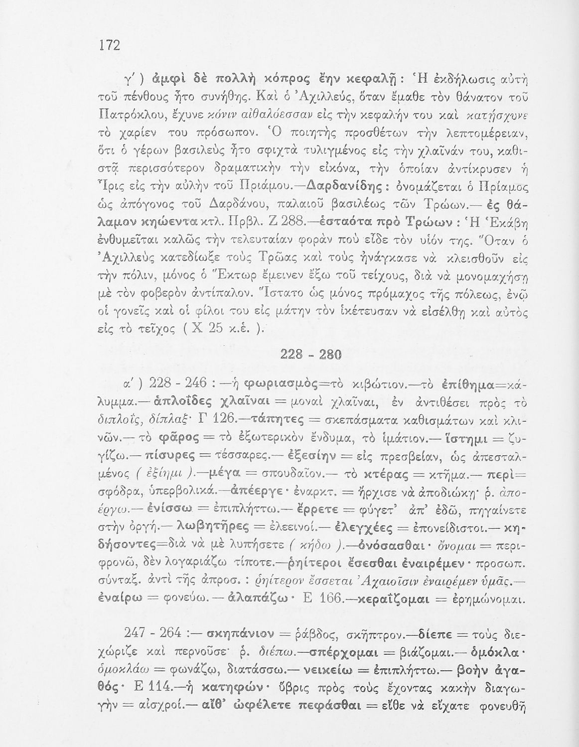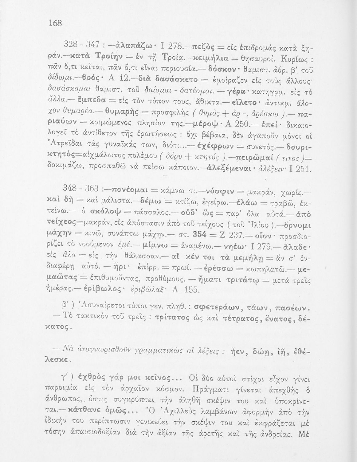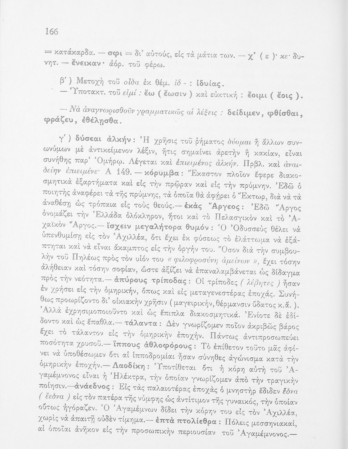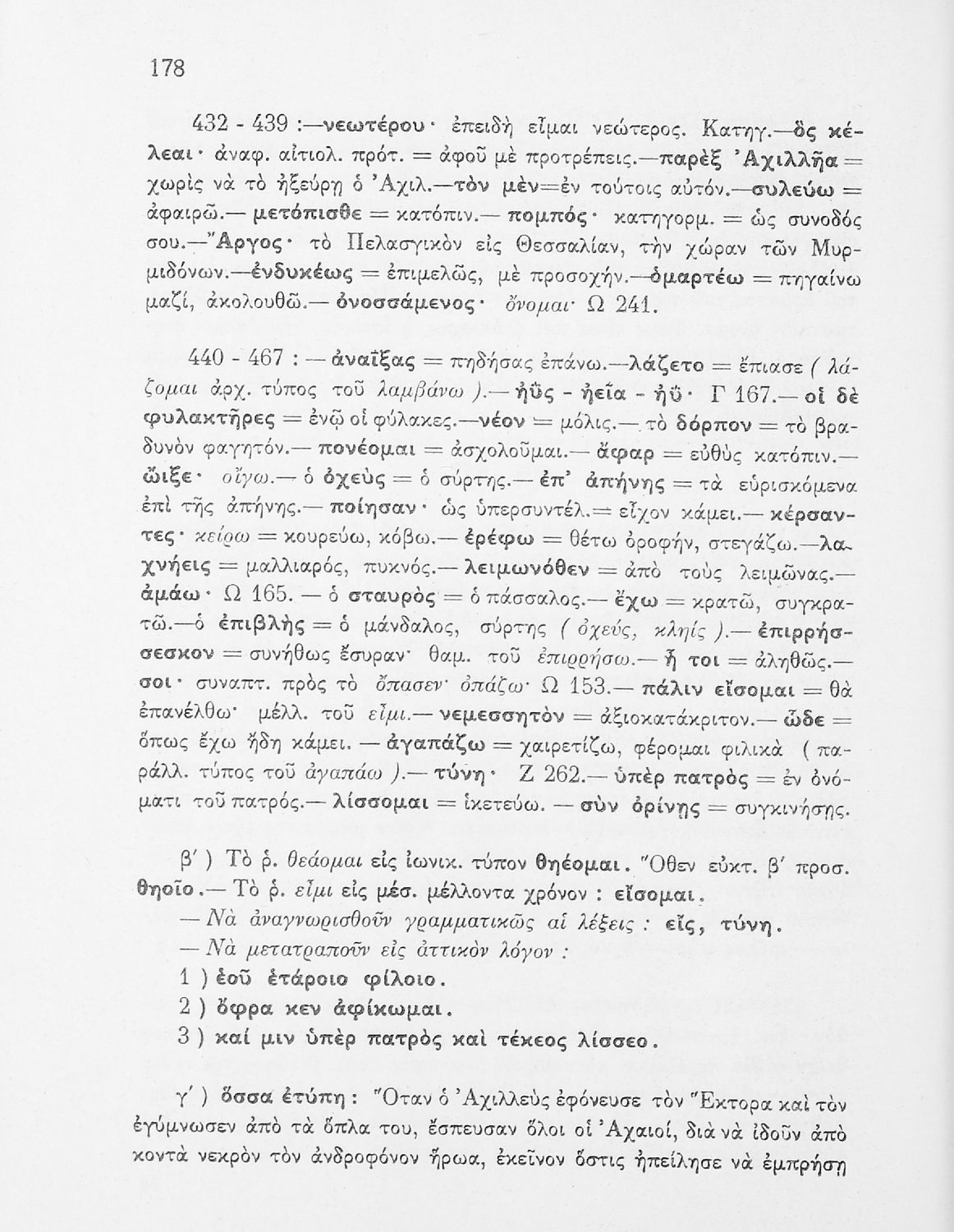 Μαθητικό βοήθημα του Ελληνικού Σχολείου, των Παρθεναγωγείων και του Γυμνασίου για το μάθημα των Αρχαίων Ελληνικών. Περιέχει τις ραψωδίες Ο, Π, Ρ, Σ, Τ, Χ, ψ, Ω από το πρωτότυπο με σχόλια και ερμηνευτικές ...