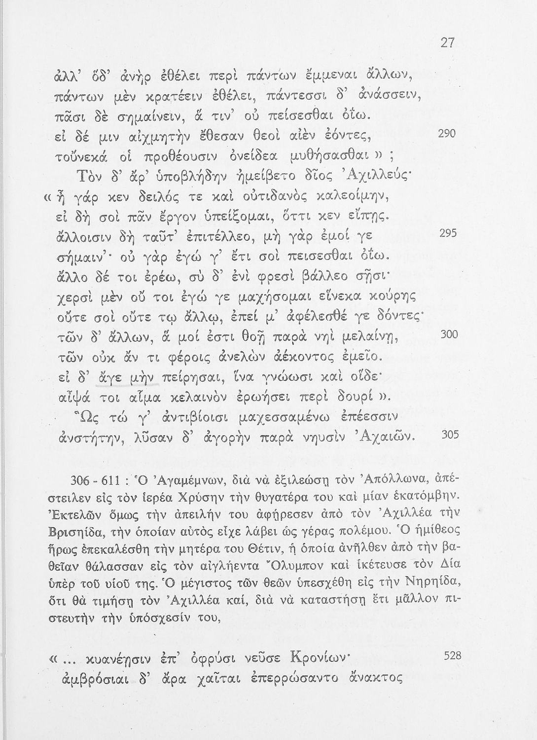 Σχολικό εγχειρίδιο της Δευτεροβάθμιας Εκπαίδευσης για το μάθημα των Αρχαίων Ελληνικών. Πρόκειται για το κείμενο της Ιλιάδας μεταφρασμένο, με ερμηνευτικές και πραγματολογικές παρατηρήσεις. Στο τέλος περιλαμβάνει λεξιλόγιο.