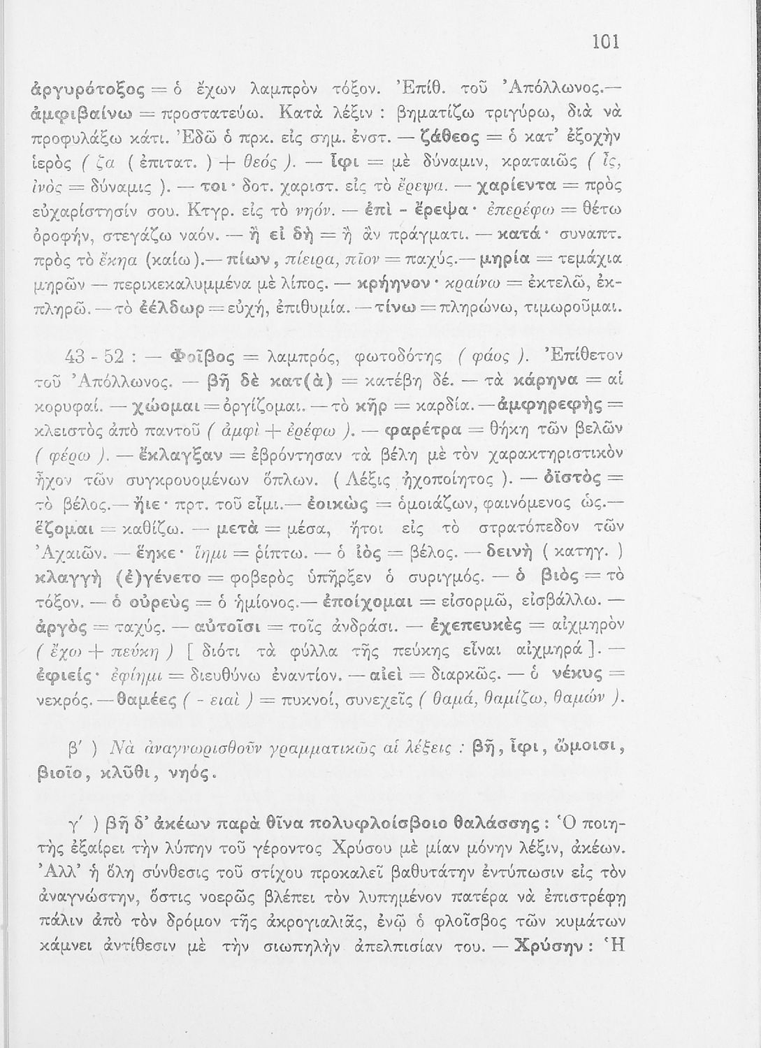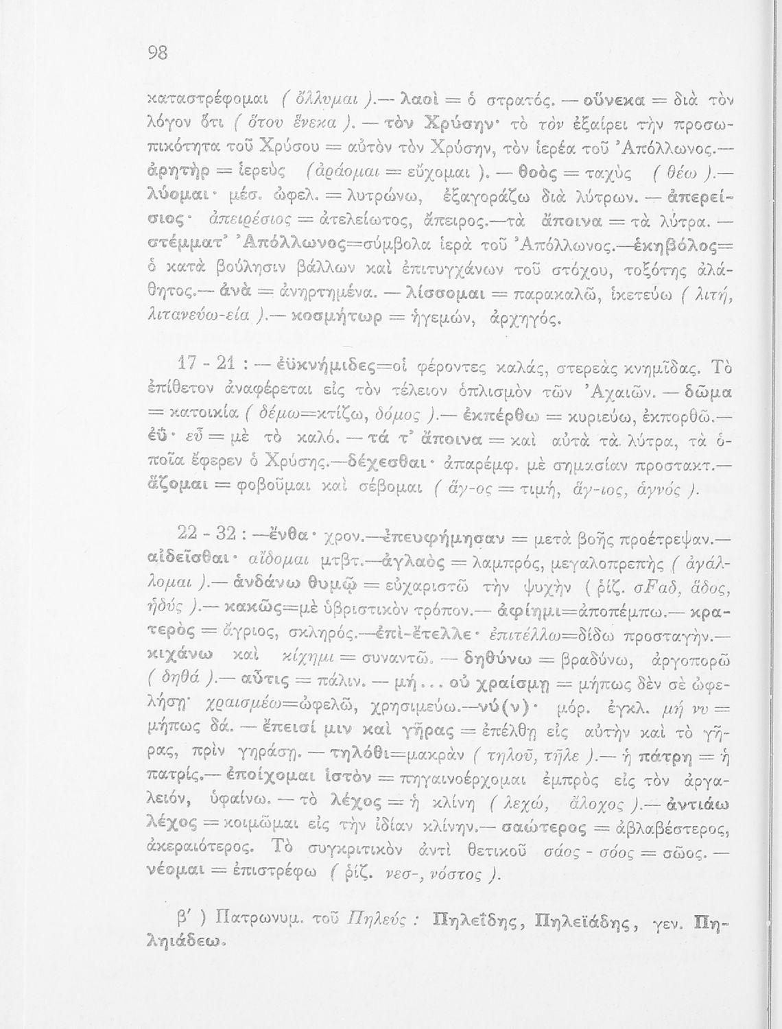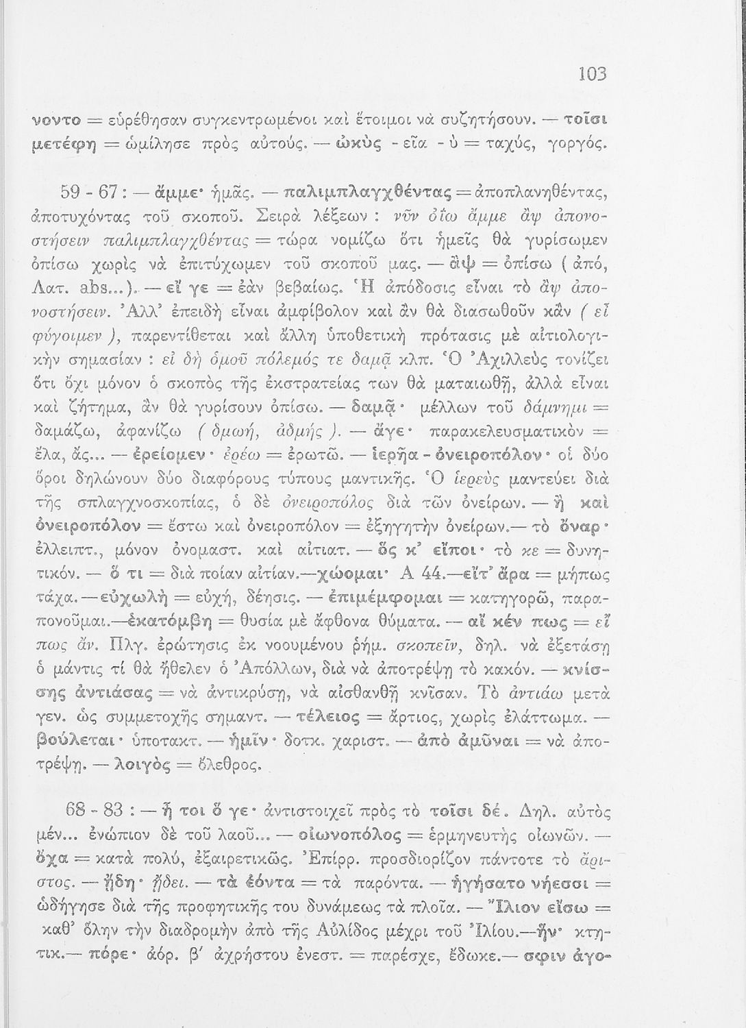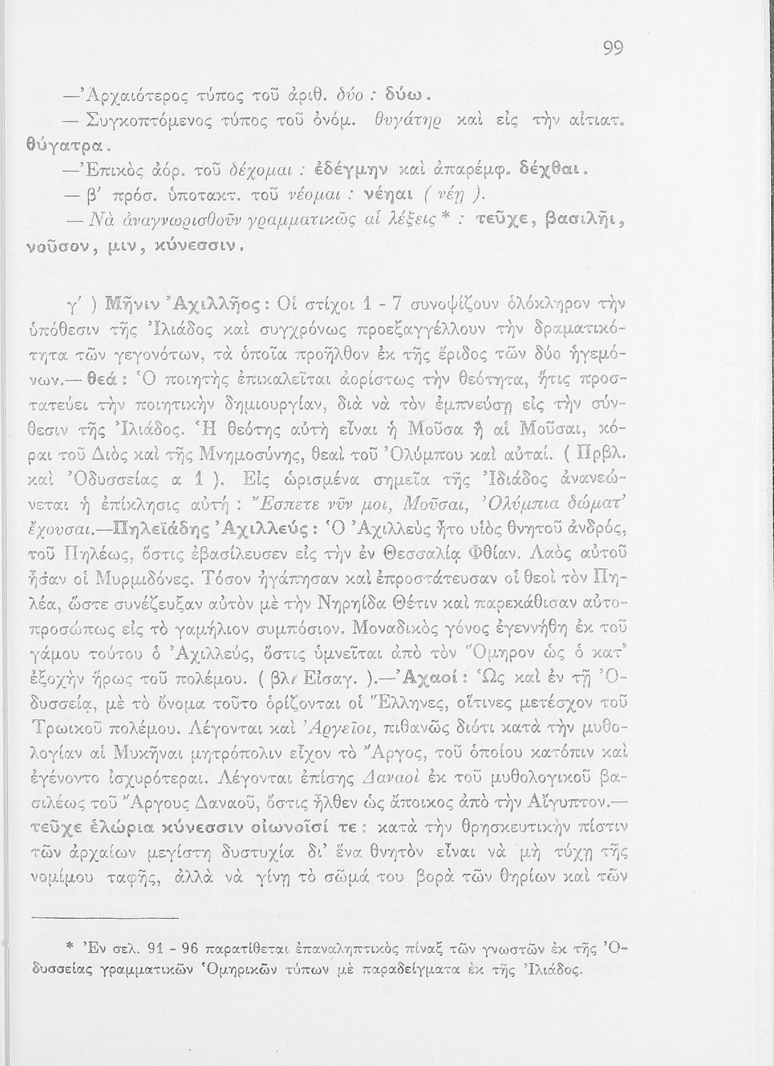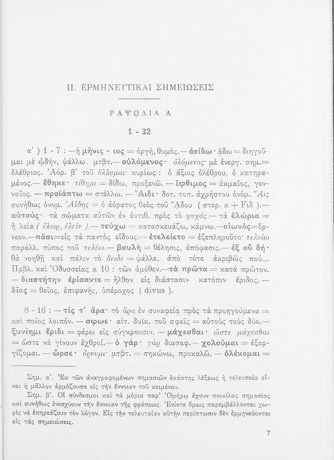 Μαθητικό βοήθημα του Ελληνικού Σχολείου, των Παρθεναγωγείων και του Γυμνασίου για το μάθημα των Αρχαίων Ελληνικών. Περιέχει τις ραψωδίες Ο, Π, Ρ, Σ, Τ, Χ, ψ, Ω από το πρωτότυπο με σχόλια και ερμηνευτικές ...