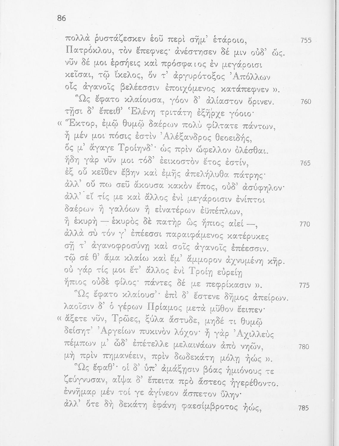 Σχολικό εγχειρίδιο της Δευτεροβάθμιας Εκπαίδευσης για το μάθημα των Αρχαίων Ελληνικών. Πρόκειται για το κείμενο της Ιλιάδας μεταφρασμένο, με ερμηνευτικές και πραγματολογικές παρατηρήσεις. Στο τέλος περιλαμβάνει λεξιλόγιο.