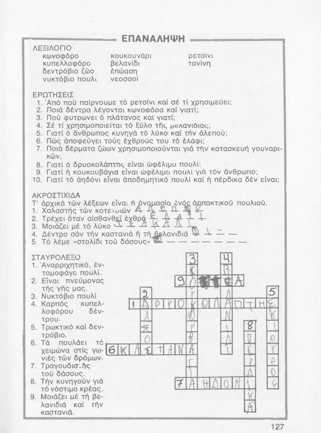 Φυτά και ζώα της πατρίδας μας, Δ΄ Τάξης Δημοτικού