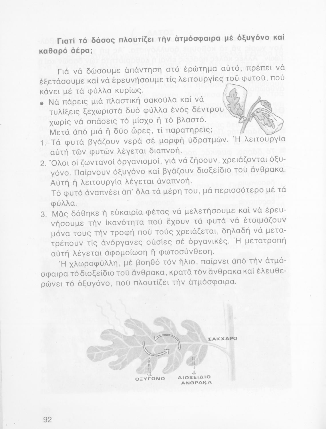 Σχολικό εγχειρίδιο Φυτολογίας Γ΄ Δημοτικού που εστιάζει στον τρόπο παρατήρησης του περιβάλλοντος και δίνει στοιχεία για φυτά και ζώα που υπάρχουν στο ελληνικό φυσικό περιβάλλον. Κάθε ενότητα έχει θέματα για συζήτηση και στοιχεία για την υγεία και την υγιεινή των μαθητών.