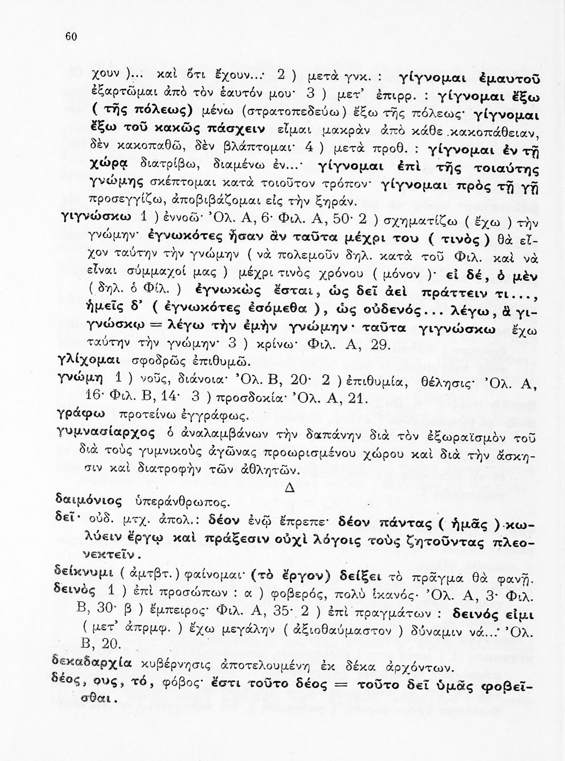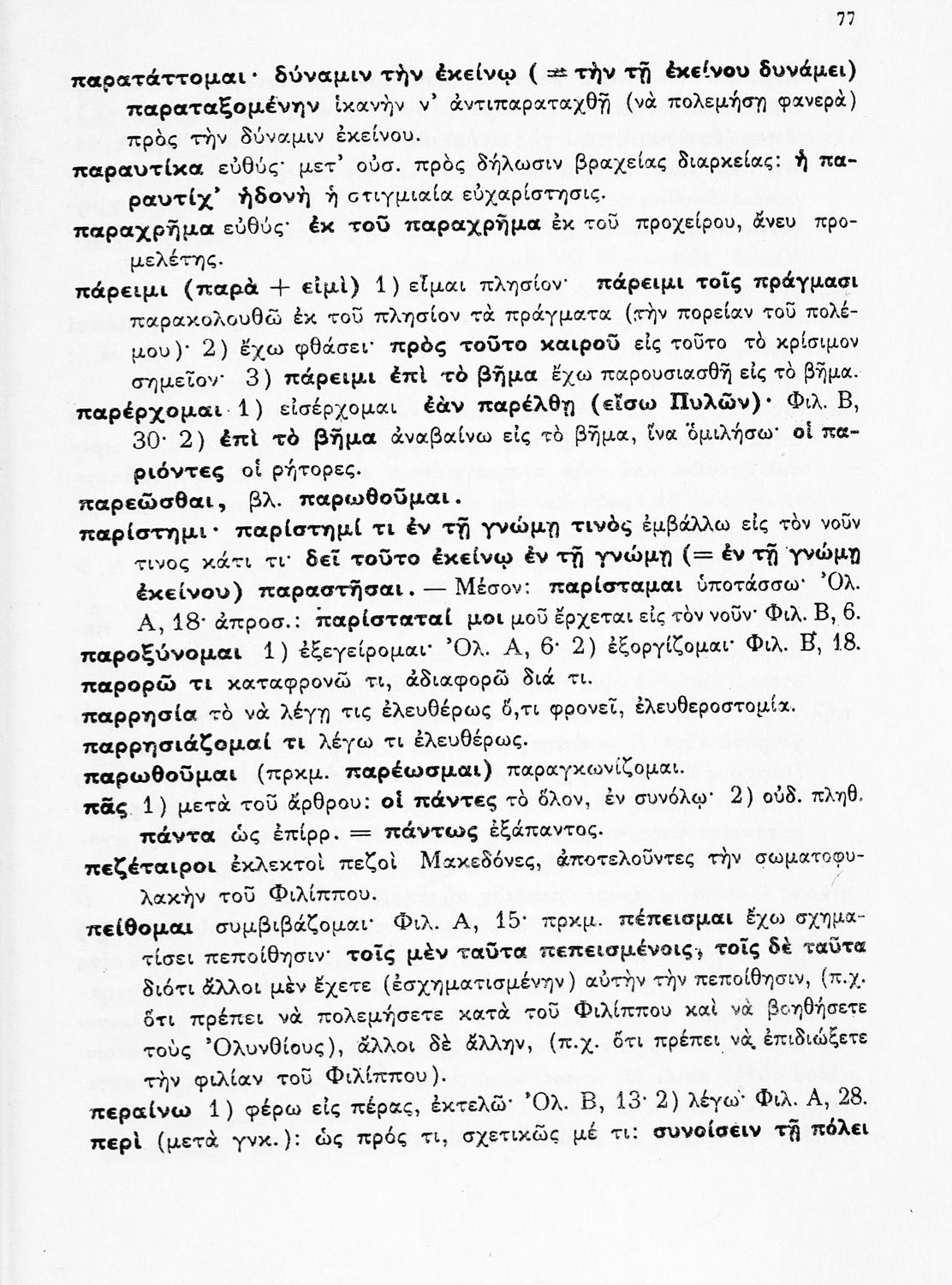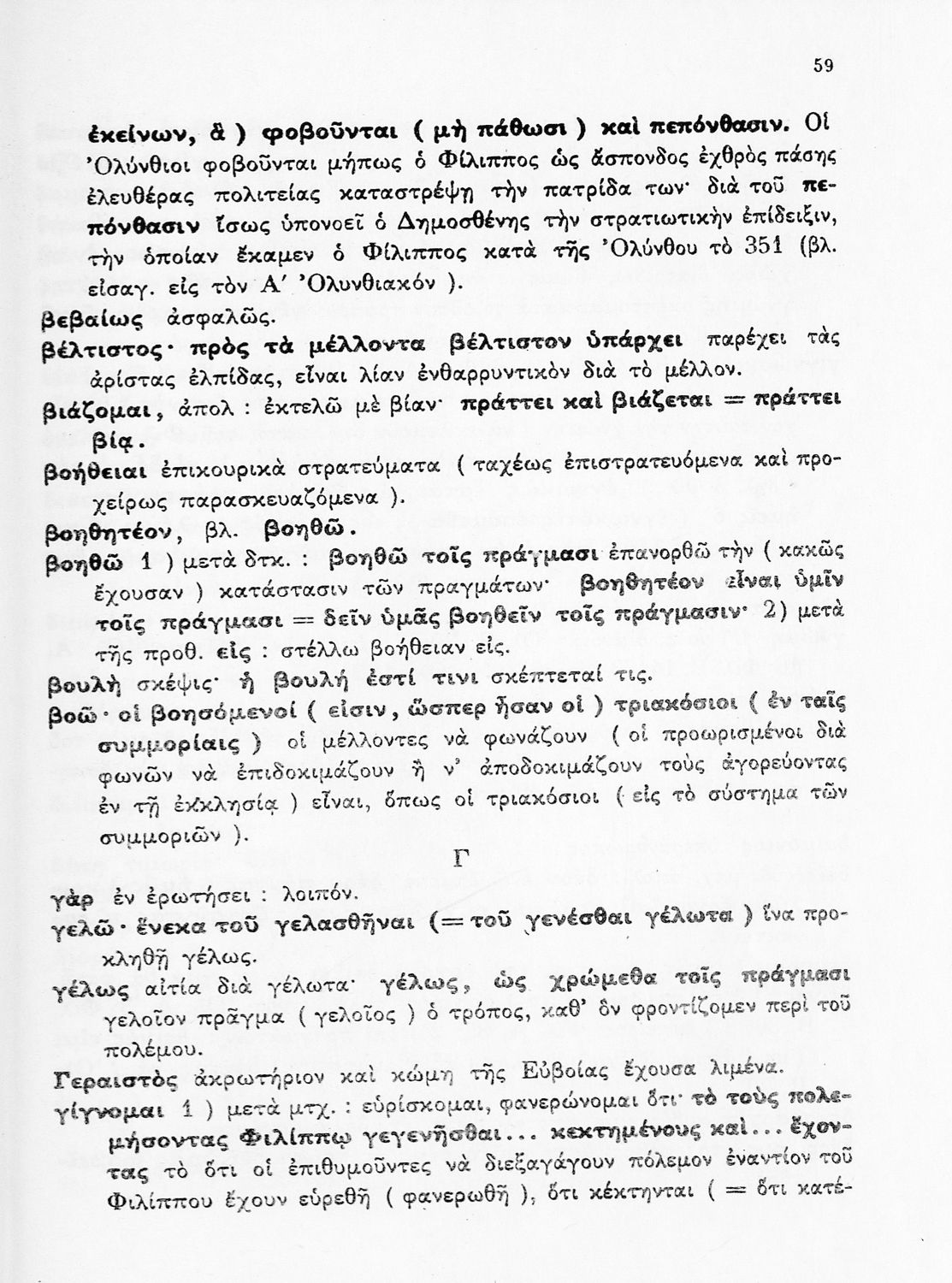 Σχολικό εγχειρίδιο Αρχαίων Ελληνικών Δ΄ Γυμνασίου που περιλαμβάνει εισαγωγή στη ζωή και στο έργο του Δημοσθένη, τον Α΄ κατά Φιλίππου, και τους Α΄ και Β΄ Ολυνθιακούς και ερμηνευτικά και ετυμολογικά σχόλια.