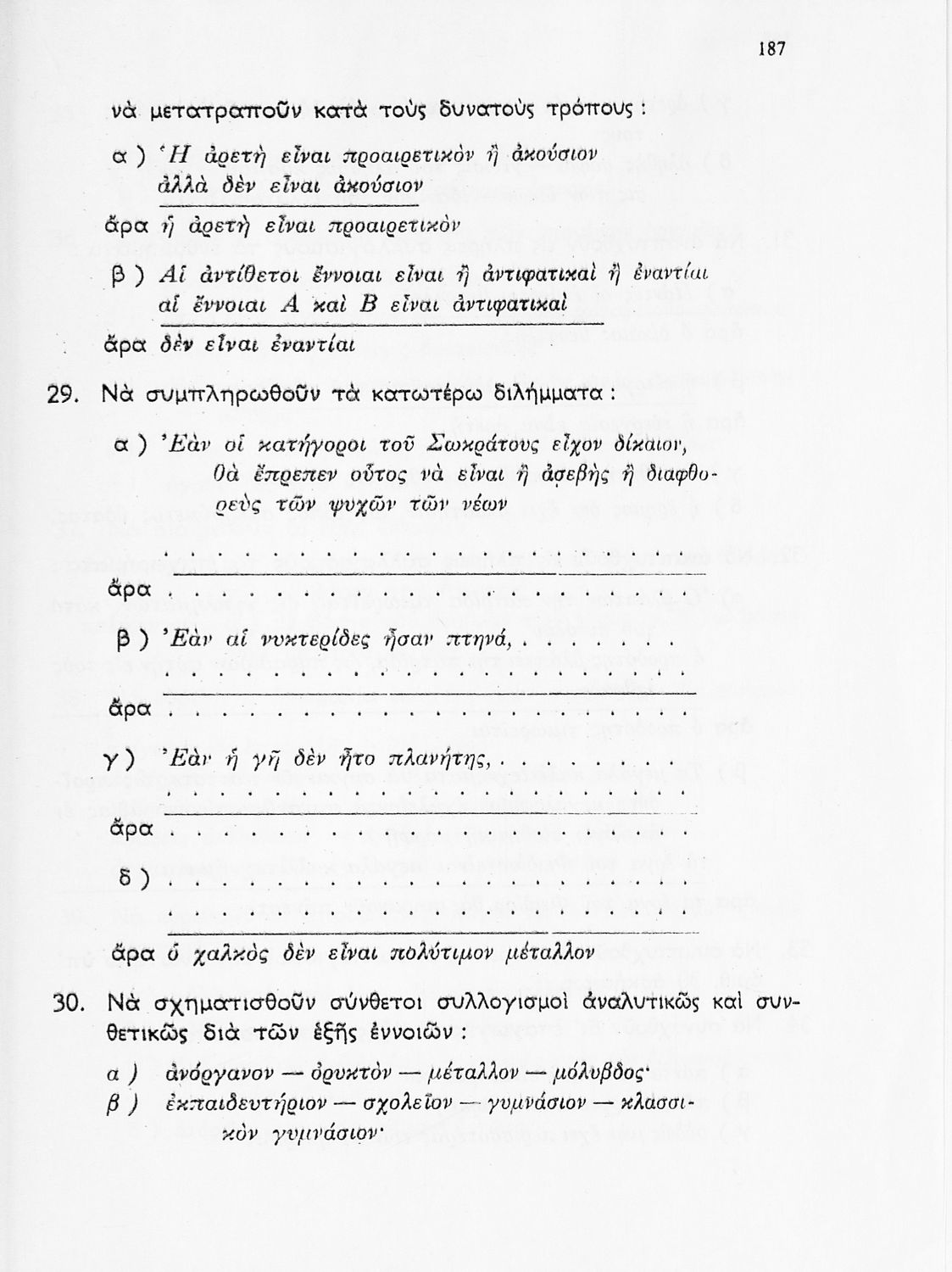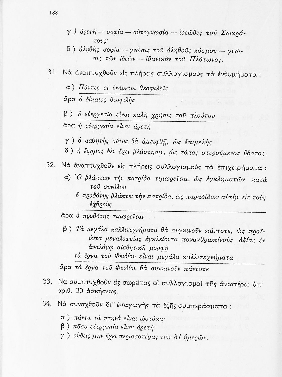 Σχολικό εγχειρίδιο Λογικής ΣΤ΄ Γυμνασίου που είναι δομημένο θεματικά και περιλαμβάνει ζητήματα τυπικής λογικής, μεθοδολογίας και γνωσιολογίας. Περιέχει παράρτημα με ασκήσεις λογικής.