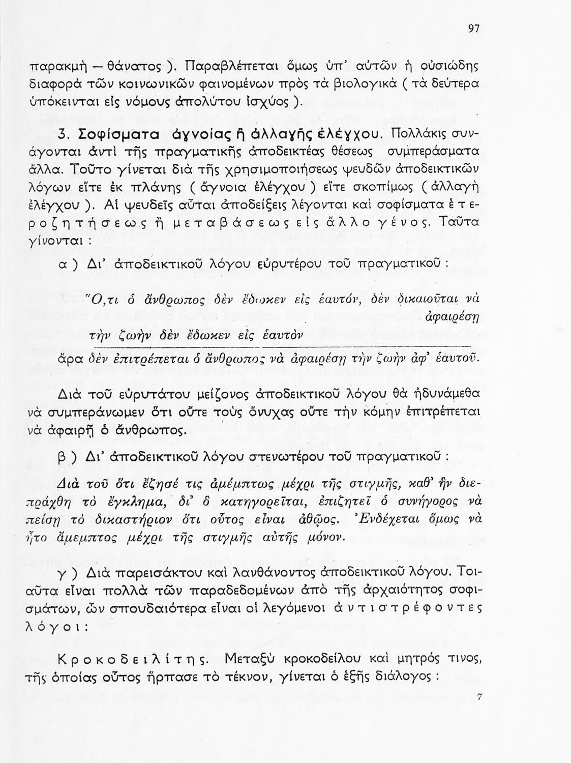 Σχολικό εγχειρίδιο Λογικής ΣΤ΄ Γυμνασίου που είναι δομημένο θεματικά και περιλαμβάνει ζητήματα τυπικής λογικής, μεθοδολογίας και γνωσιολογίας. Περιέχει παράρτημα με ασκήσεις λογικής.