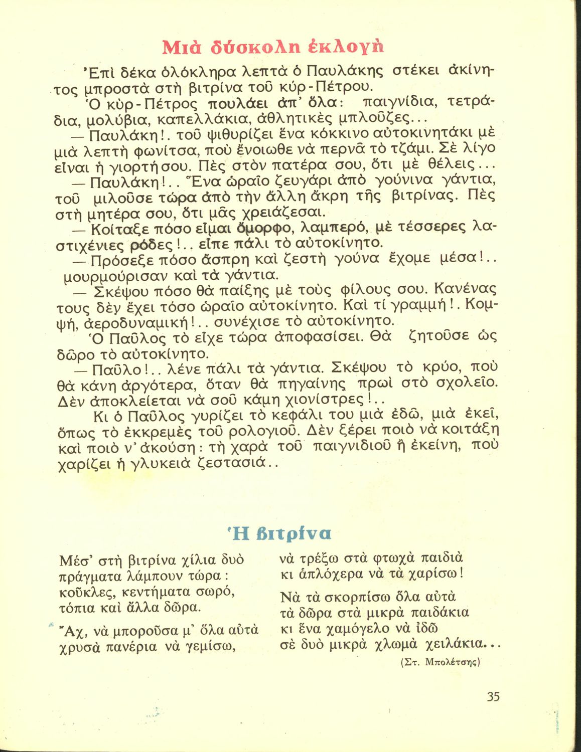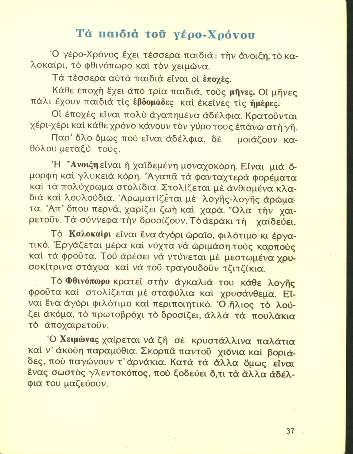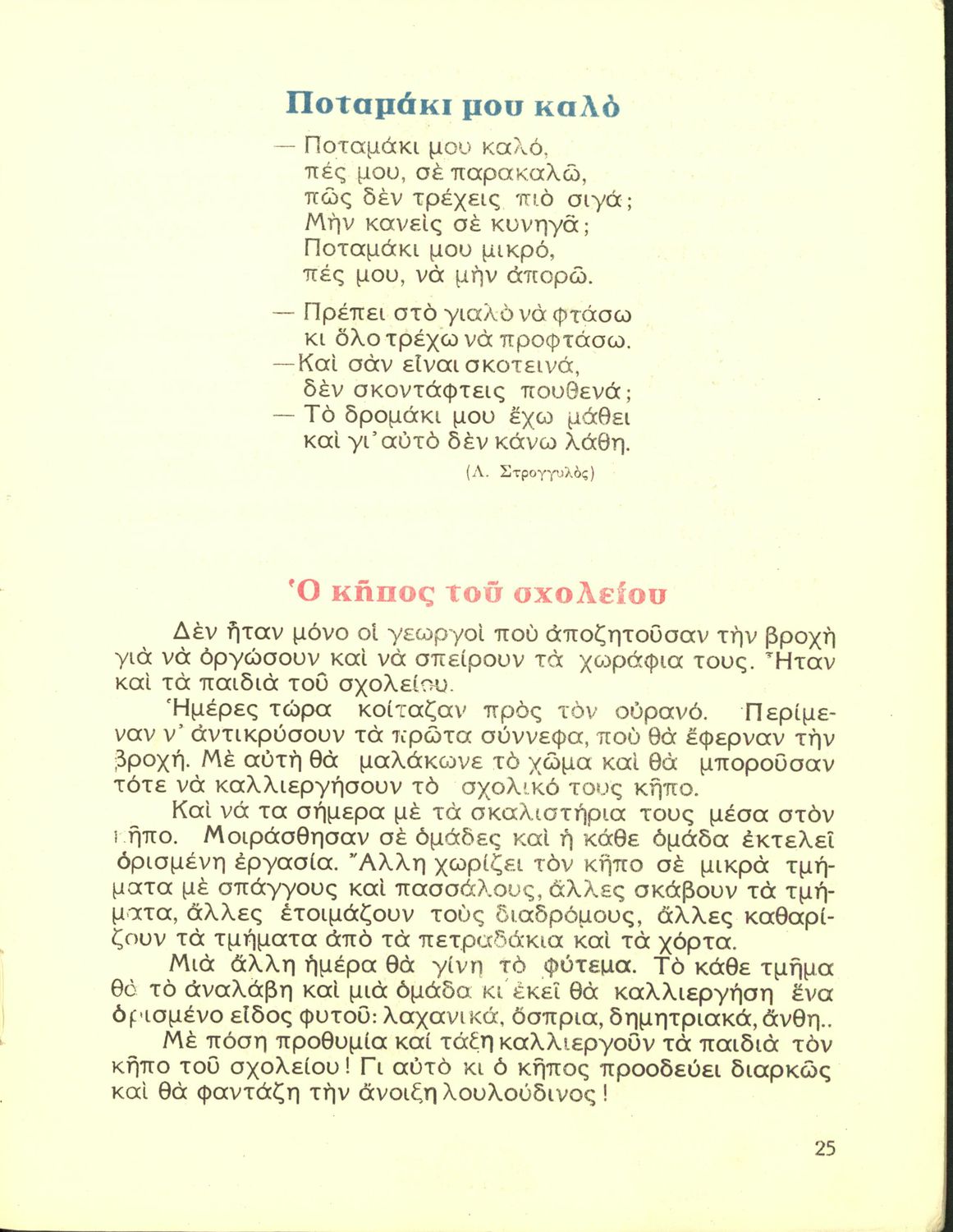 Μαθητικό βοήθημα Γλώσσας Γ΄ Δημοτικού που περιέχει πεζά και ποιήματα Ελλήνων λογοτεχνών ηθικοπλαστικού περιεχομένου με θέματα από την καθημερινή ζωή των παιδιών, την ελληνική φύση και τη θρησκευτική παράδοση.