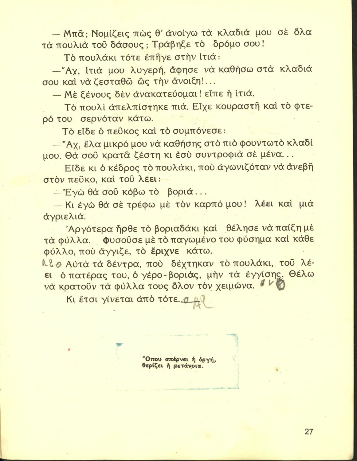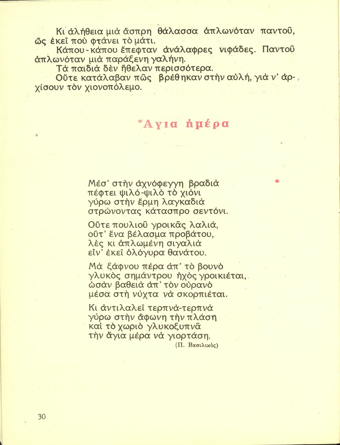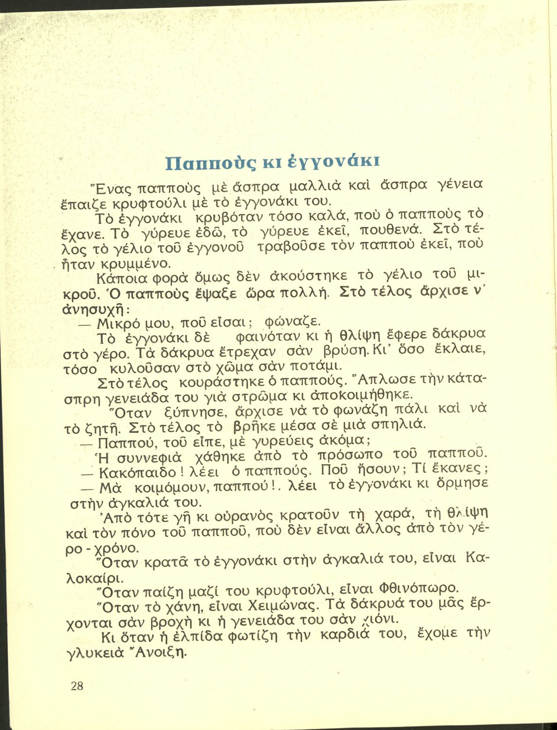 Μαθητικό βοήθημα Γλώσσας Γ΄ Δημοτικού που περιέχει πεζά και ποιήματα Ελλήνων λογοτεχνών ηθικοπλαστικού περιεχομένου με θέματα από την καθημερινή ζωή των παιδιών, την ελληνική φύση και τη θρησκευτική παράδοση.