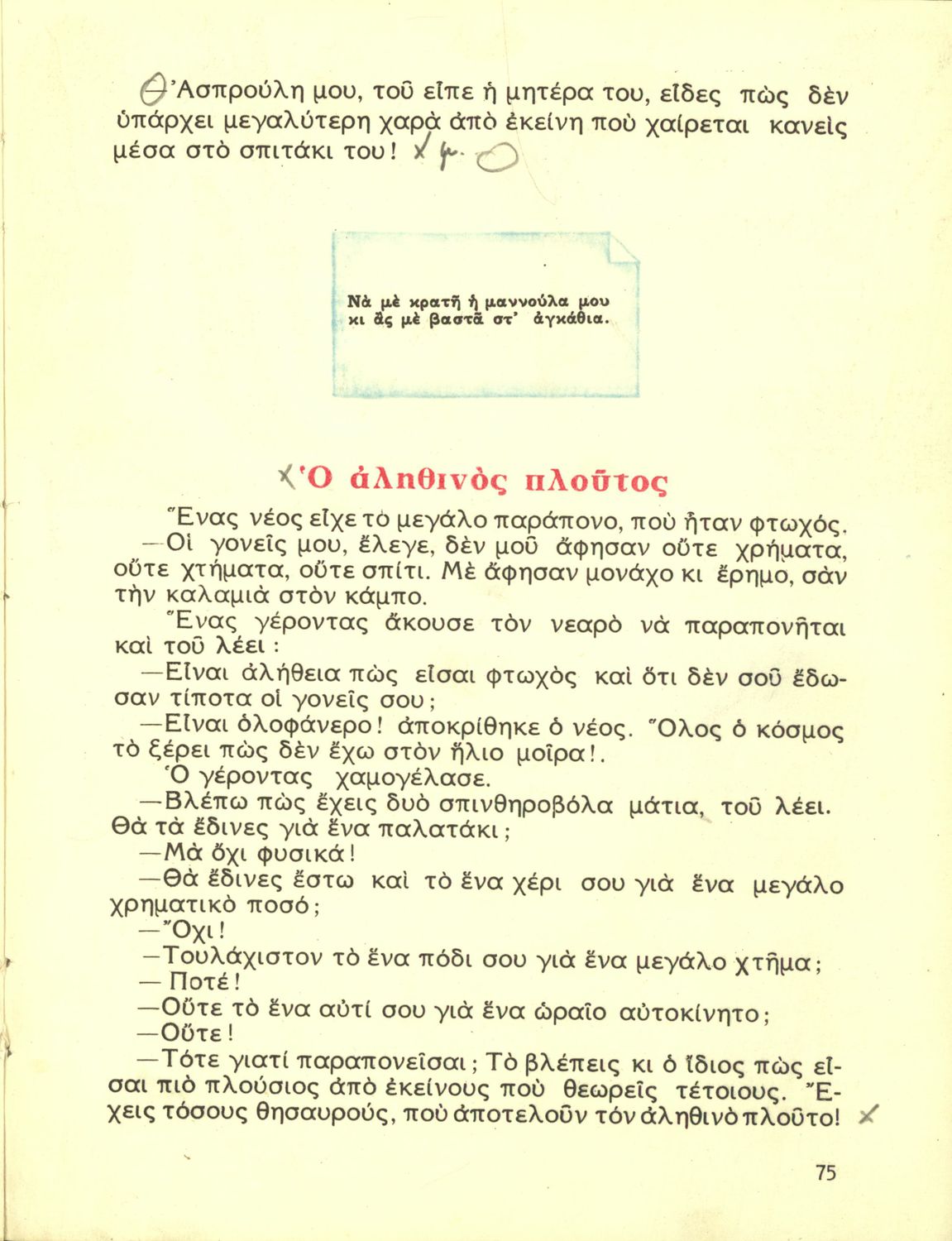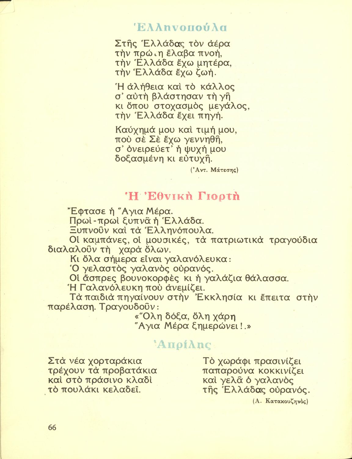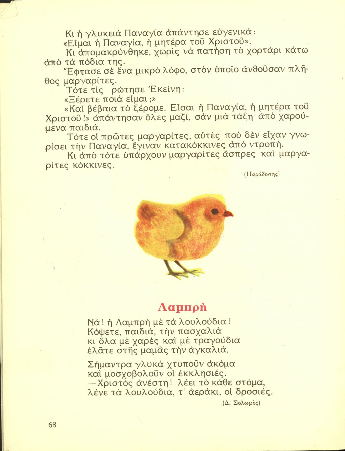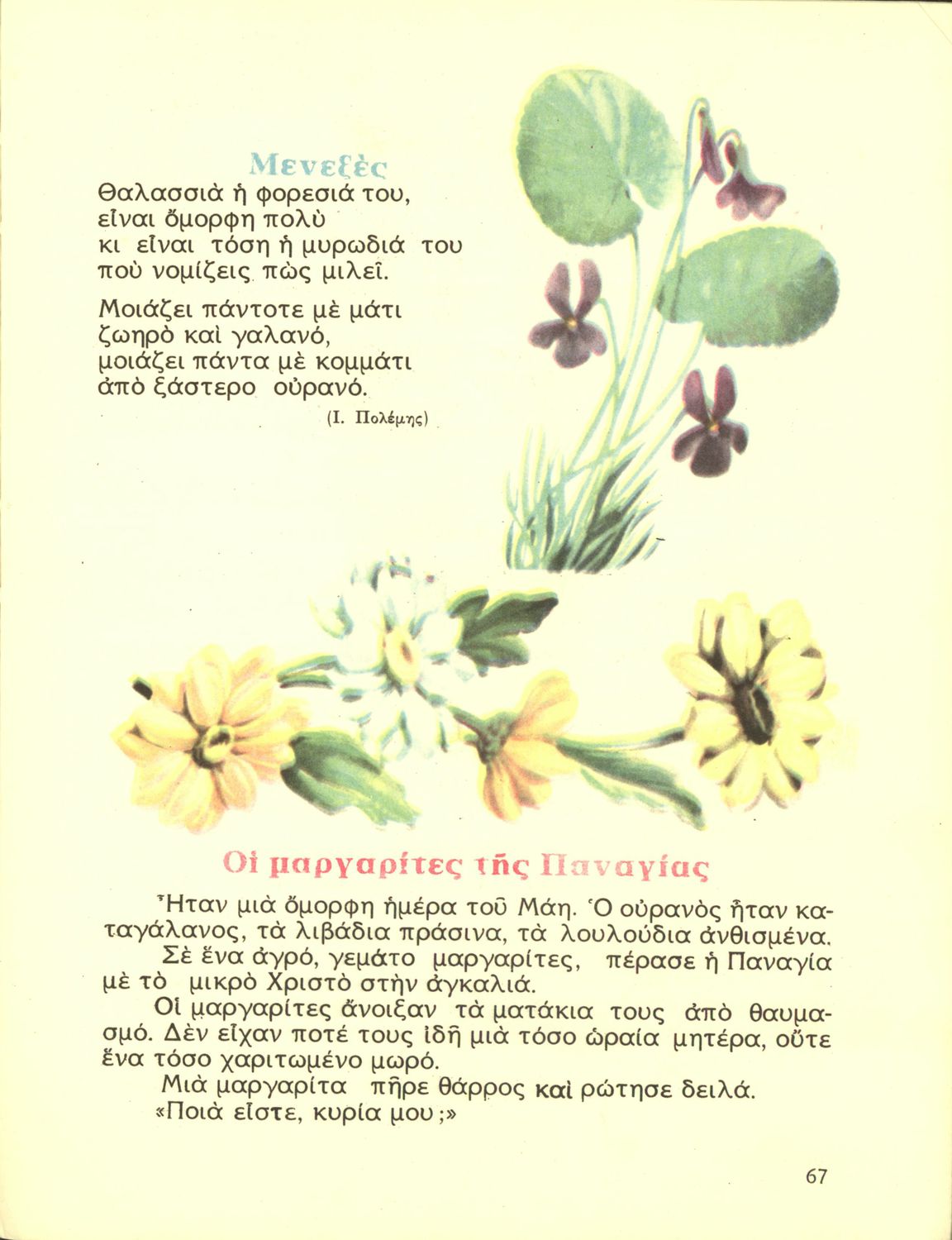 Μαθητικό βοήθημα Γλώσσας Γ΄ Δημοτικού που περιέχει πεζά και ποιήματα Ελλήνων λογοτεχνών ηθικοπλαστικού περιεχομένου με θέματα από την καθημερινή ζωή των παιδιών, την ελληνική φύση και τη θρησκευτική παράδοση.