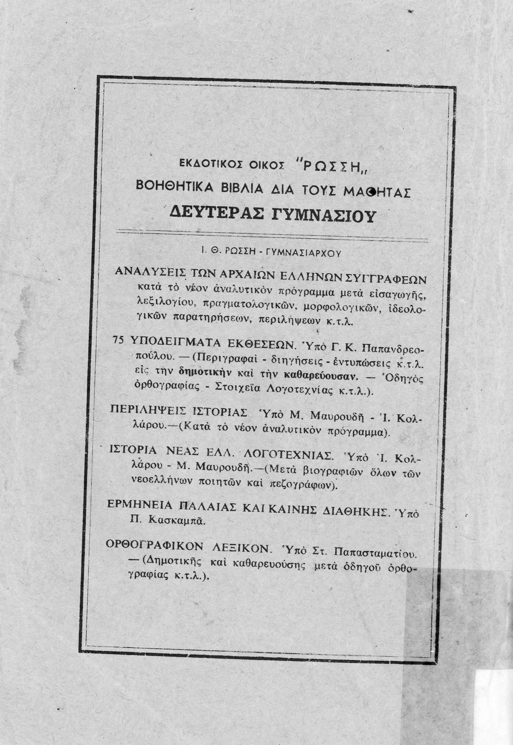 Εκδότης: Εκδοτικός Οίκος: Νικ. & Σοφ. Ι. Ρώσσης