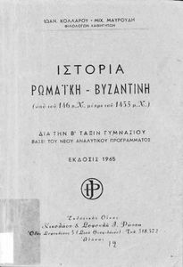 Ιστορία Ρωμαϊκή-Βυζαντινή (από του 146π. Χ μέχρι του 1453 μ.Χ). Δια την Β΄ Τάξιν Γυμνασίου βάσει του αναλυτικού προγράμματος