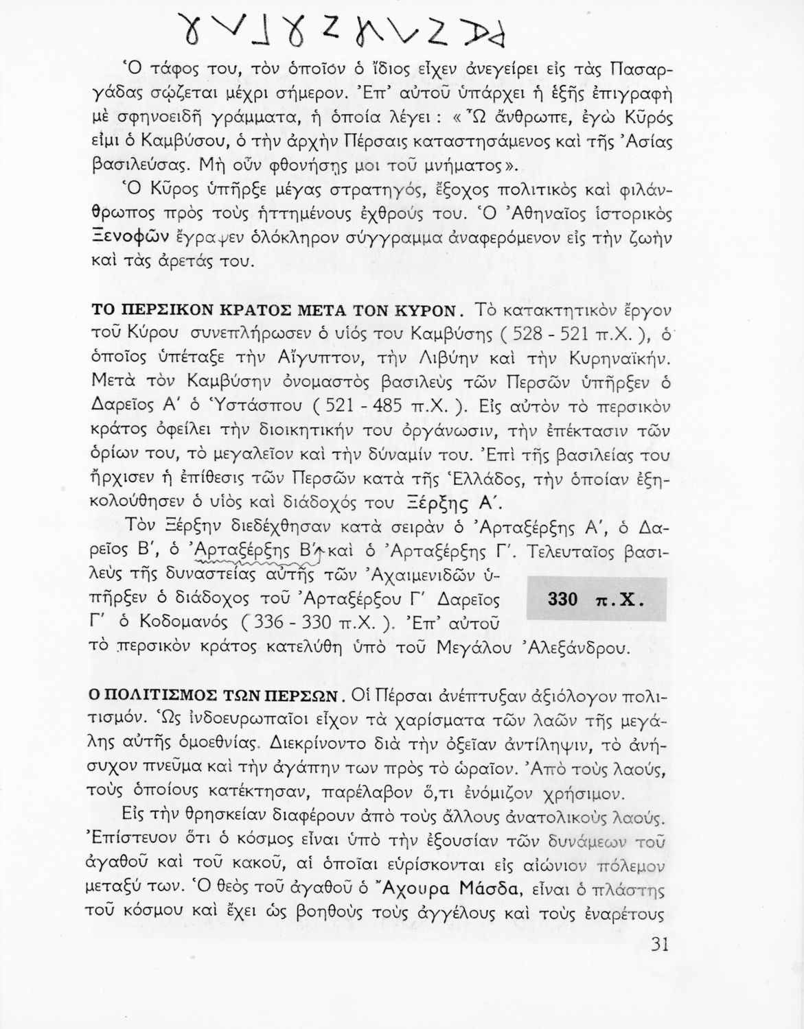 Ιστορία των ανατολικών λαών και της αρχαίας Ελλάδος από των αρχαιοτάτων χρόνων μέχρι του θανάτου του Μ. Αλεξάνδρου Α΄ τάξεως Γυμνασίου