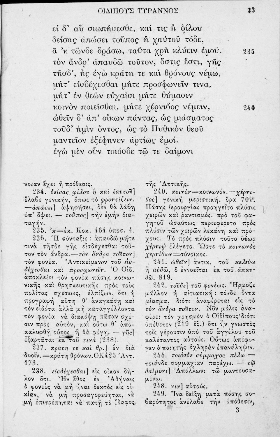 Κωδικός αναγνώρισης: 01-17853 Τίτλος: Οιδίπους Τύραννος Σοφοκλέους Τραγωδίαι σχολιασμέναι και ηρμηνευμέναι Συγγραφέας: Σοφοκλής, Α. Ξ. Καραπαναγιώτης (σχόλια) Μέγεθος και υπόστρωμα: Μαθητικό βοήθημα, σκληρό εξώφυλλο, 175 σελίδες. |