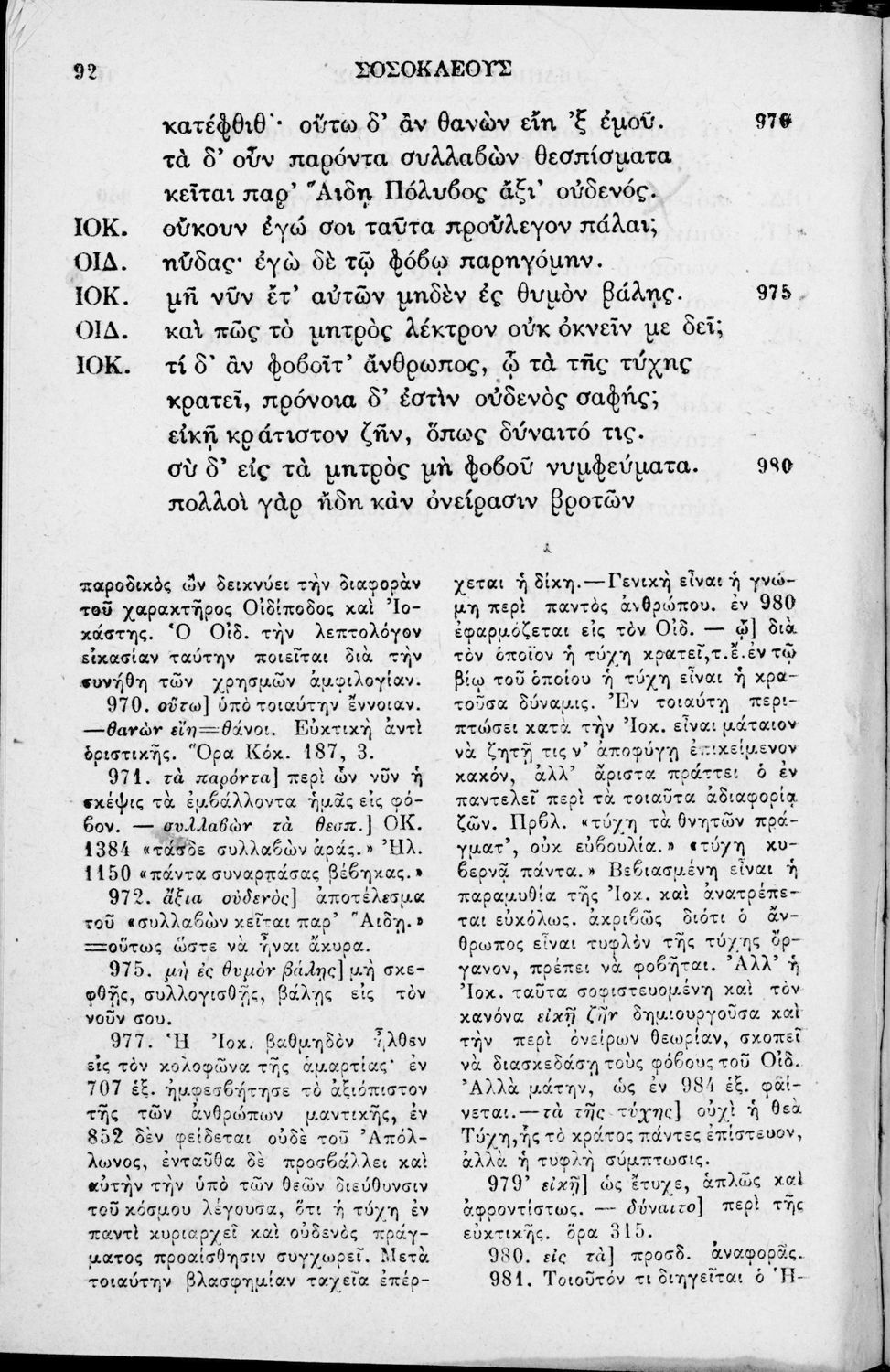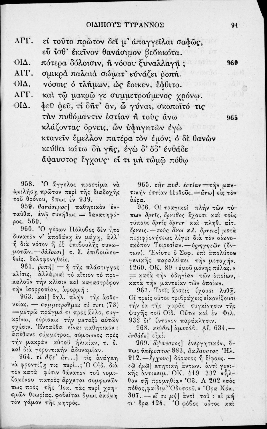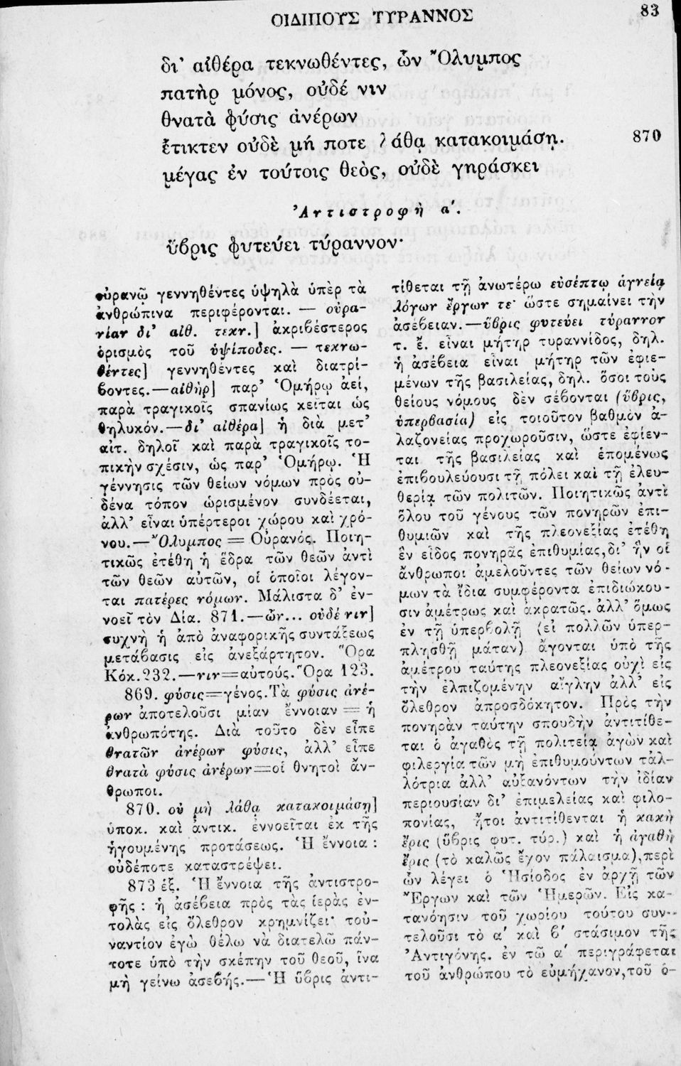Κωδικός αναγνώρισης: 01-17853 Τίτλος: Οιδίπους Τύραννος Σοφοκλέους Τραγωδίαι σχολιασμέναι και ηρμηνευμέναι Συγγραφέας: Σοφοκλής, Α. Ξ. Καραπαναγιώτης (σχόλια) Μέγεθος και υπόστρωμα: Μαθητικό βοήθημα, σκληρό εξώφυλλο, 175 σελίδες. |