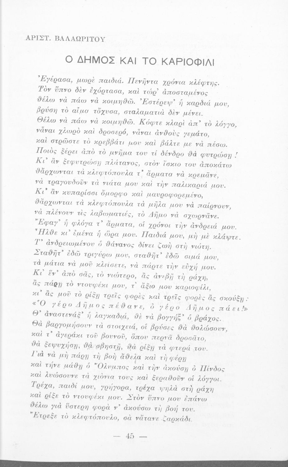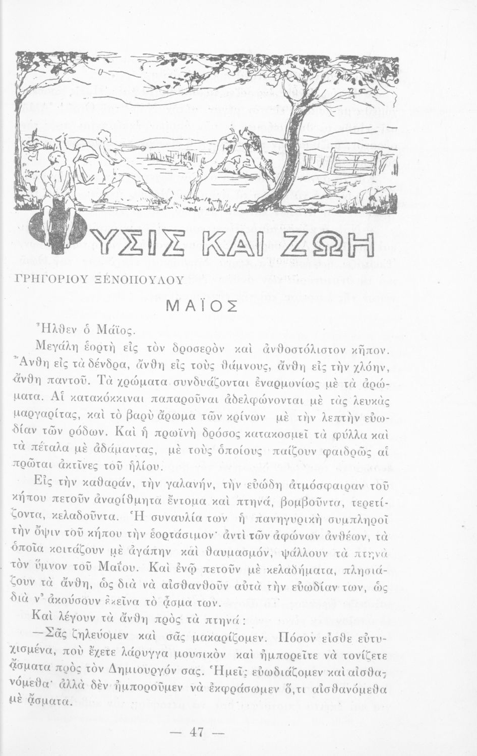 Σχολικό εγχειρίδιο Νέων Ελληνικών Α΄ Γυμνασίου που περιέχει πεζά και ποιήματα Ελλήνων συγγραφέων εμπνευσμένα από την κοινωνική ζωή, την σύγχρονη ελληνική ιστορία, και την ελληνική φύση. Περιέχει παράρτημα με βιογραφίες των συγγραφέων και λεξιλόγιο.