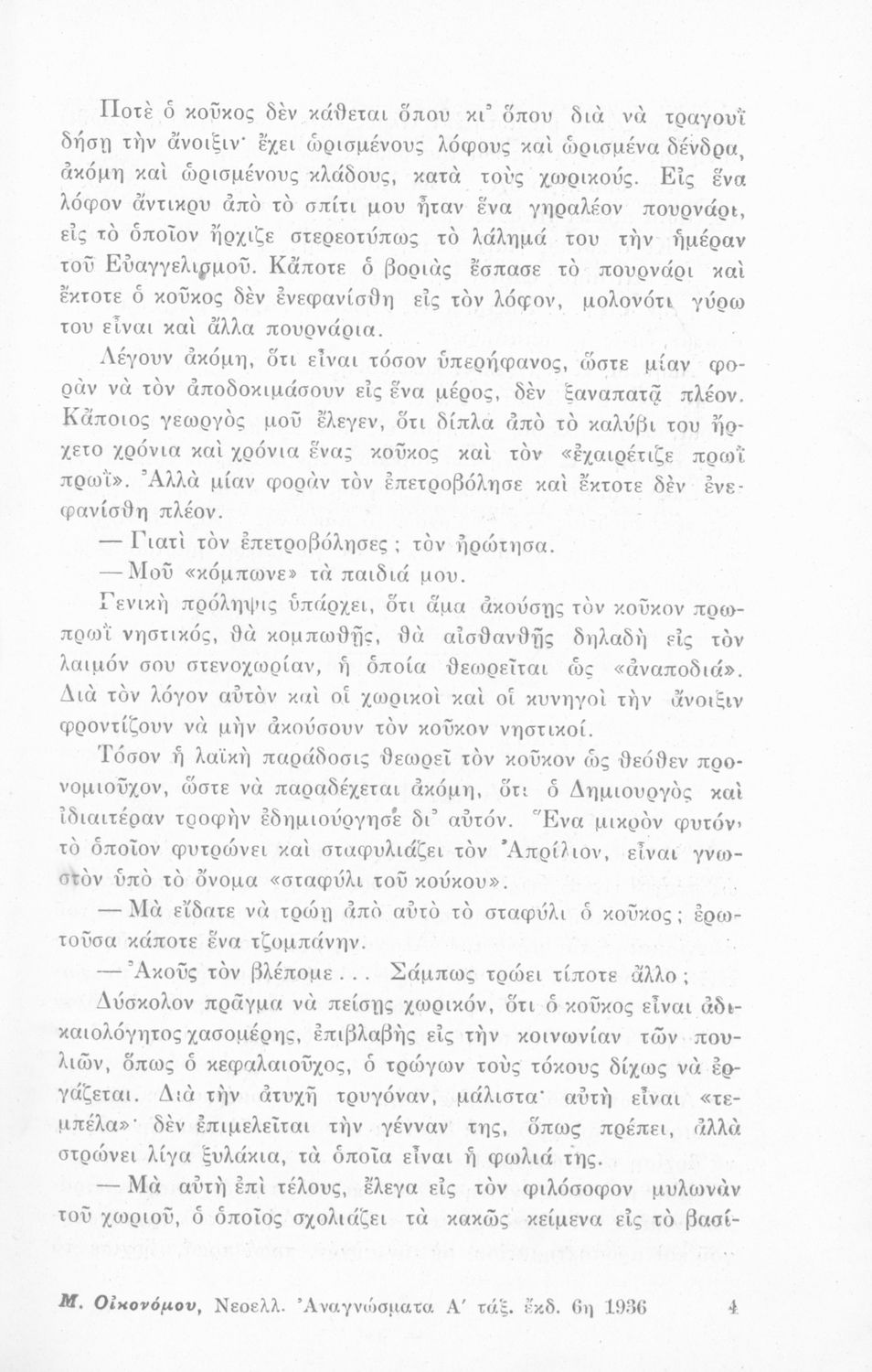 LDR 01349 2200217 4500 035 ## _a01-17854 040 ## _aΙνστιτούτο Εκπαιδευτικής Πολιτικής 041 ## _ael 100 ## _aΜιχαήλ Χ. Οικονόμου 110 ## _a17854 245 0# _aΝεοελληνικά αναγνώσματα διά την Α΄ τάξιν των Εξαταξίων Γυμνασίων 250 ## _a6η Έκδοση 260 ## _aΑθήνα _bΙωάννης Δ. Κολλάρος και ΣΙΑ, Βιβλιοπωλείο της "Εστίας" _c1936 300 ## _a174 _bΕικόνες (ασπρόμαυρες) _c20 520 ## _aΣχολικό εγχειρίδιο Νέων Ελληνικών Α΄ Γυμνασίου που περιέχει πεζά και ποιήματα Ελλήνων συγγραφέων εμπνευσμένα από την κοινωνική ζωή, την σύγχρονη ελληνική ιστορία, και την ελληνική φύση. Περιέχει παράρτημα με βιογραφίες των συγγραφέων και λεξιλόγιο. 521 ## _aΑ' Γυμνασίου 522 ## _aΕλλάδα 546 ## _aΔημοτική 563 ## _aΣκληρό Εξώφυλλο 583 ## _a34941/27-7-1931 _c1931 650 #4 _aΒηλαράς _aΠαλαμάς _aΠαπαντωνίου _aΠολέμης