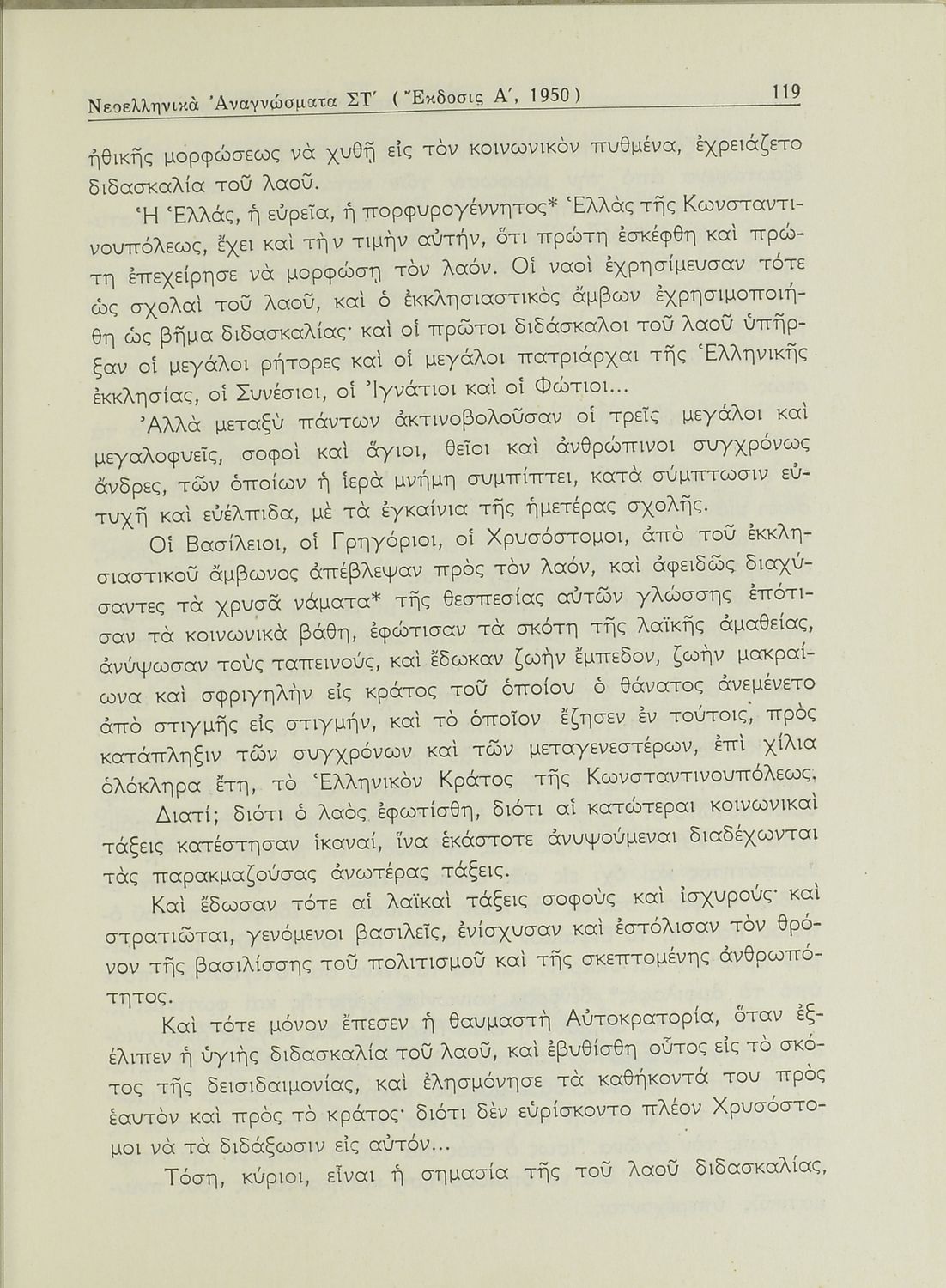 Σχολικό εγχειρίδιο Νέων Ελληνικών ΣΤ΄ Γυμνασίου που περιέχει πεζά και ποιήματα συγγραφέων της βυζαντινής και μεταβυζαντινής περιόδου πατριωτικού και θρησκευτικού περιεχομένου και δημοτικά τραγούδια. ...