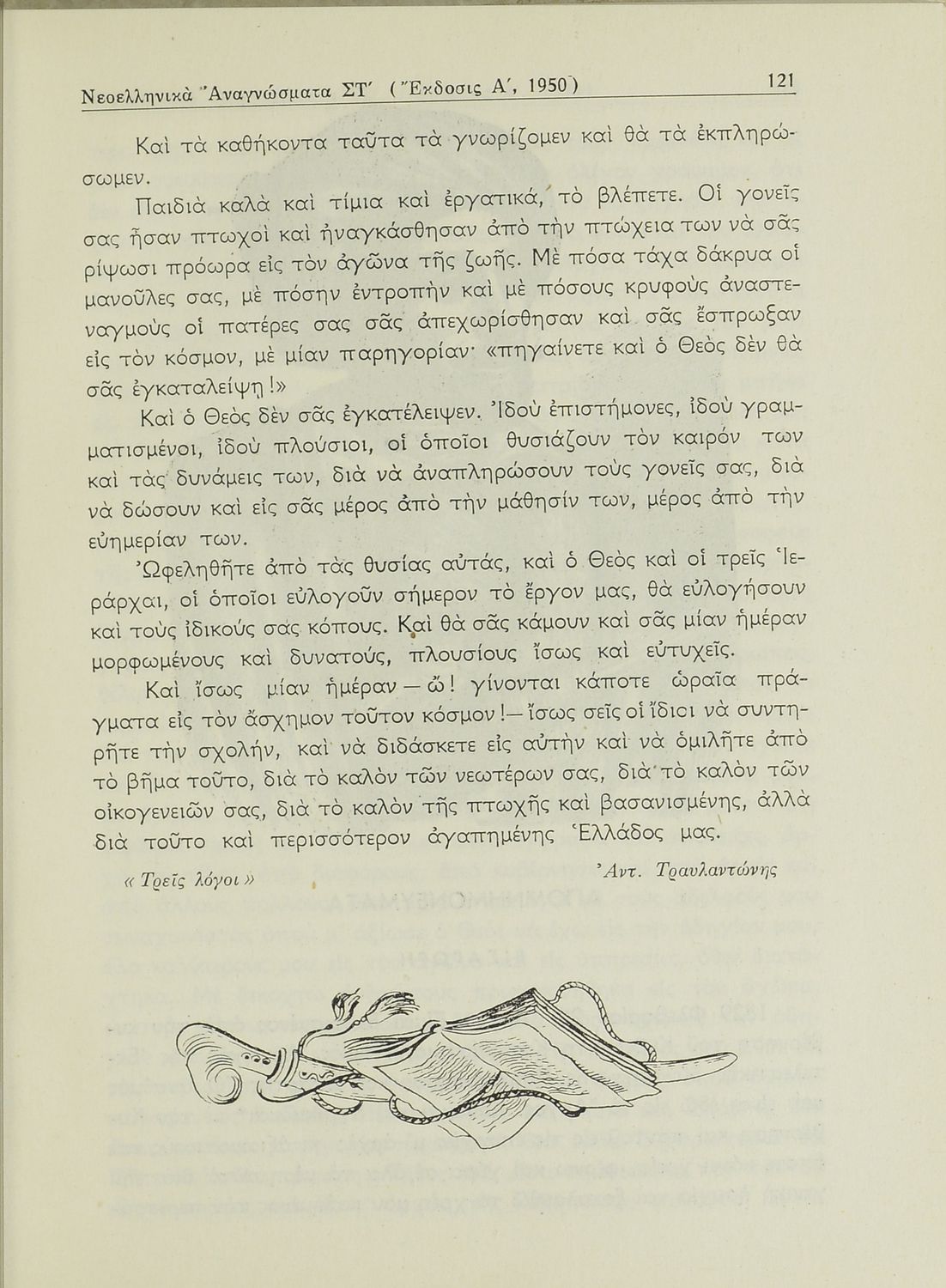 Σχολικό εγχειρίδιο Νέων Ελληνικών ΣΤ΄ Γυμνασίου και Λυκείου που περιλαμβάνει κείμενα Ελλήνων και ξένων συγγραφέων με θέματα από την σύγχρονη ελληνική ιστορία και την οικογενειακή και θρησκευτική ζωή, και ...